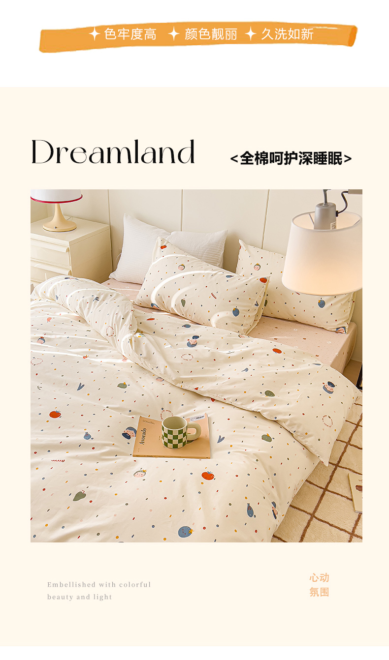 当前位置: 91家纺网 > 商品网购 > 床品套件 > 四件套 > 全棉普通四件套 > 感遇家纺 2024春夏新品全棉卡通印花四件套-第二批 小鱼女孩