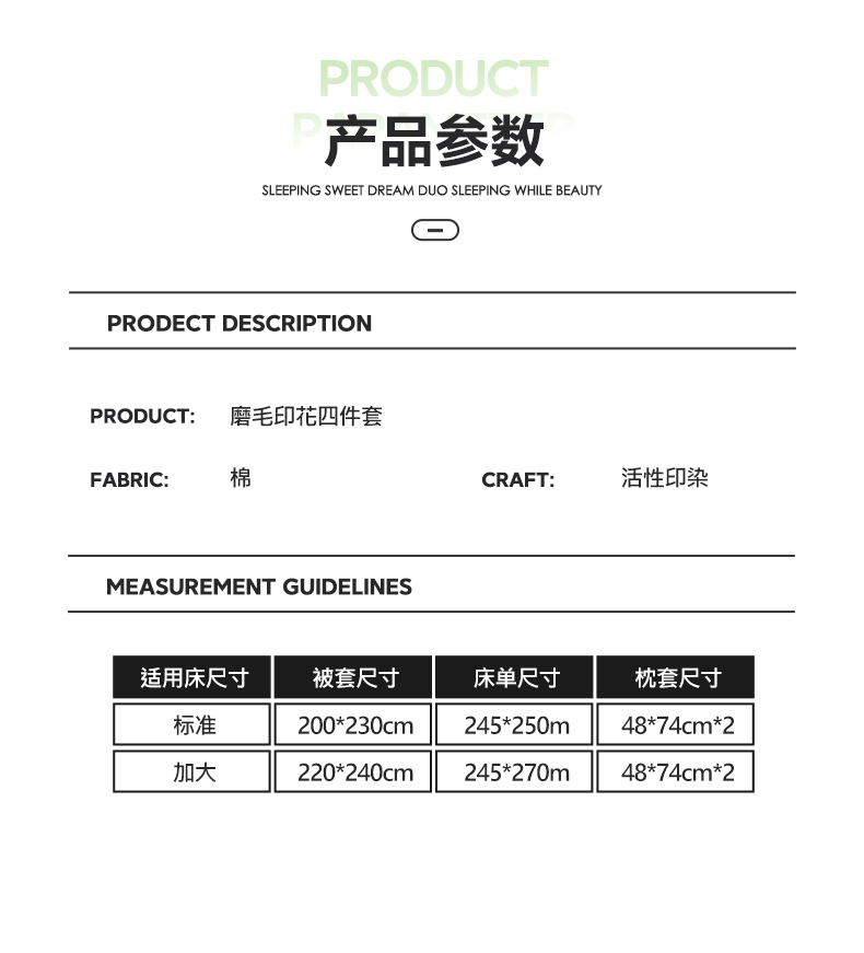 商品名称:宜家坊 2024新款ins小清新磨毛印花四件套 昼梦长
