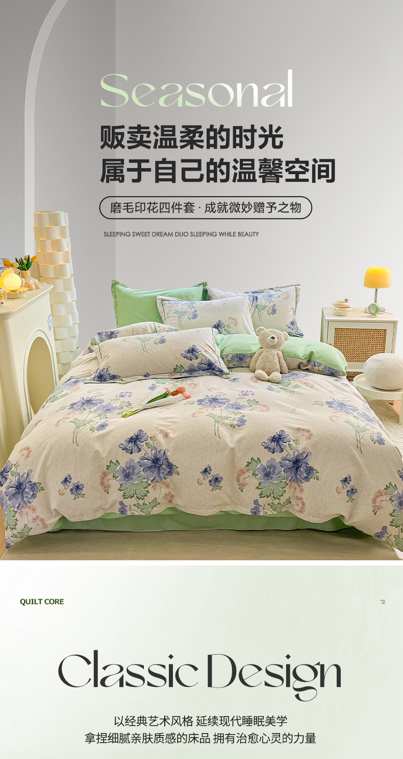 宜家坊 2024新款ins小清新磨毛印花四件套 昼梦长