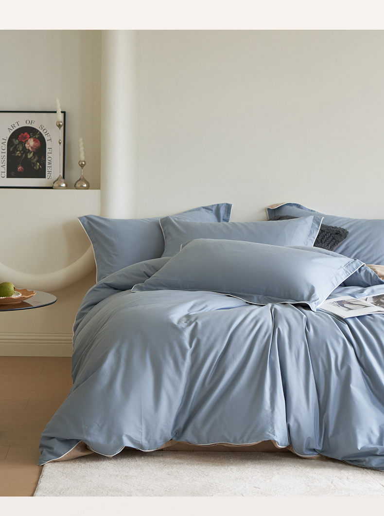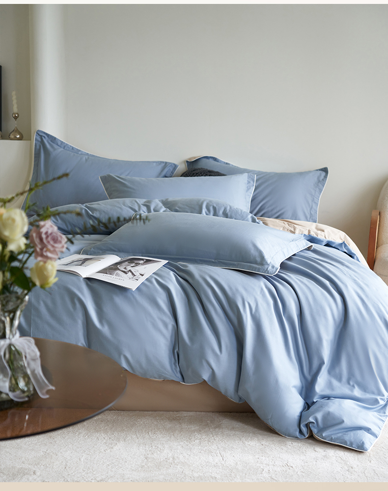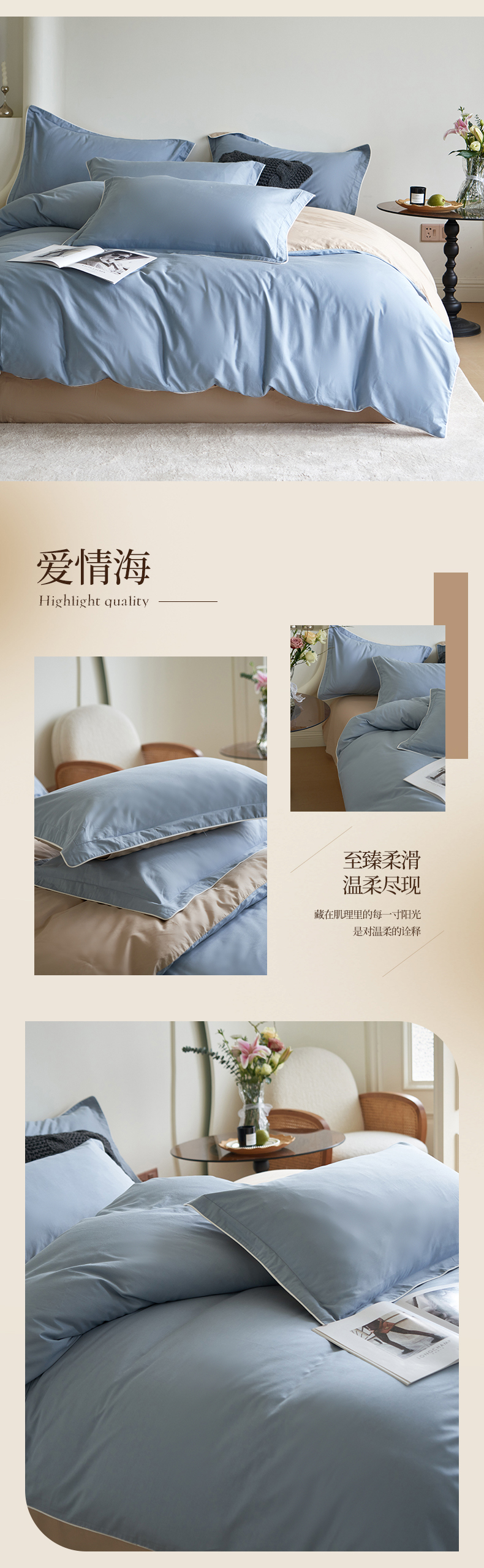盛馨 2024新款40长绒棉美拉德色系纯色双拼全棉四件套纯棉三件套床笠套件 爱情海
