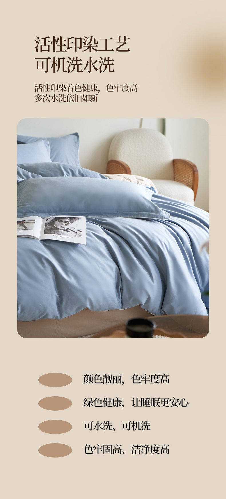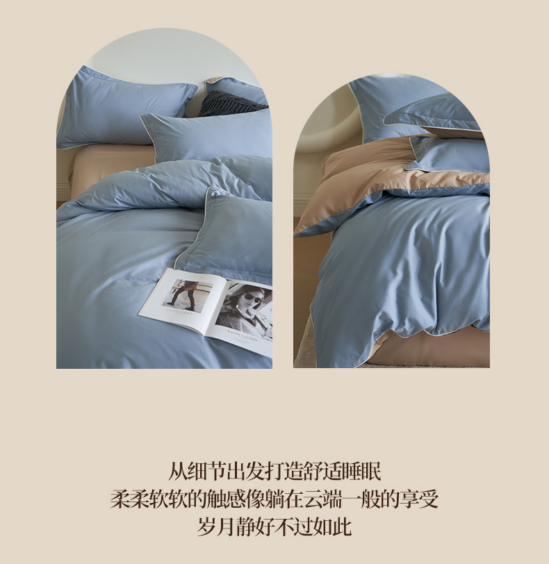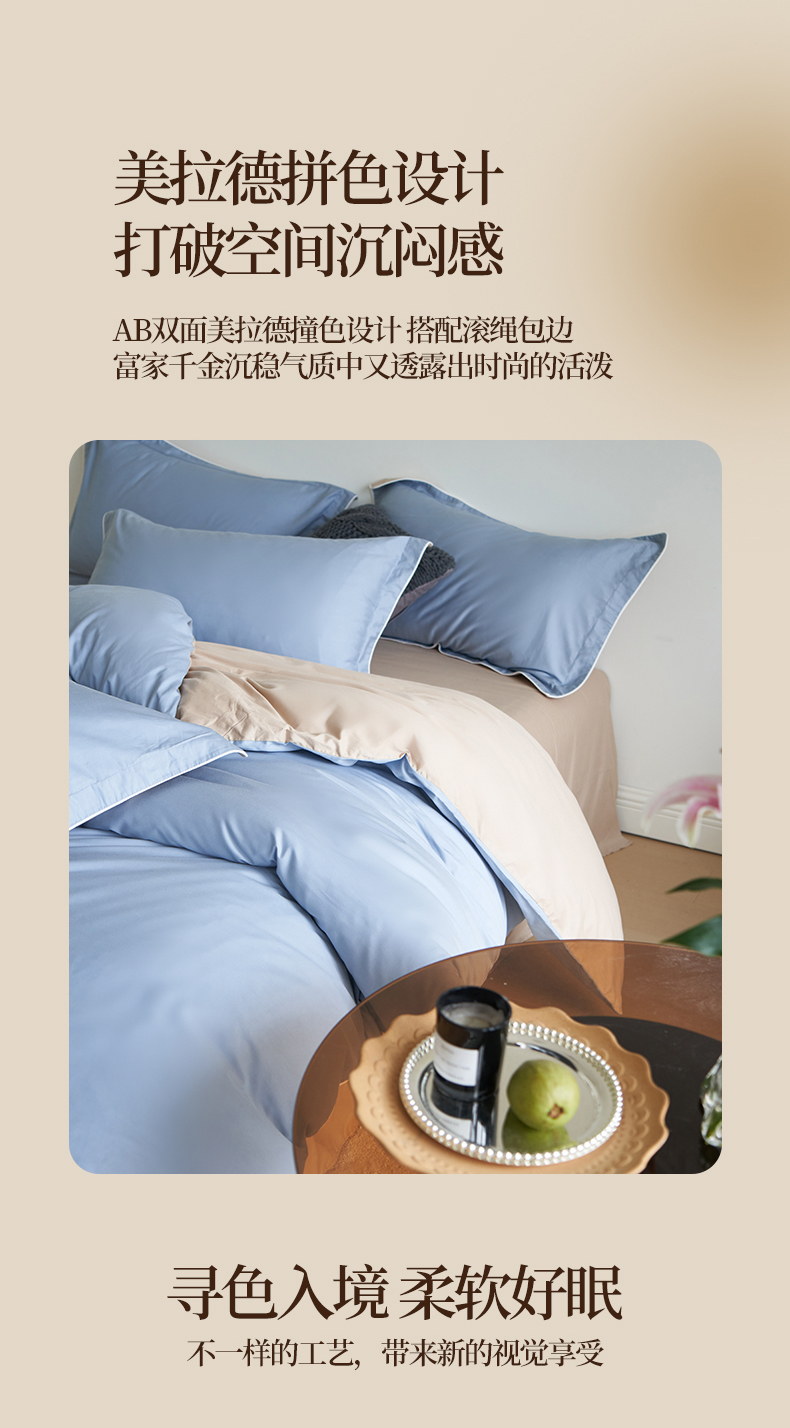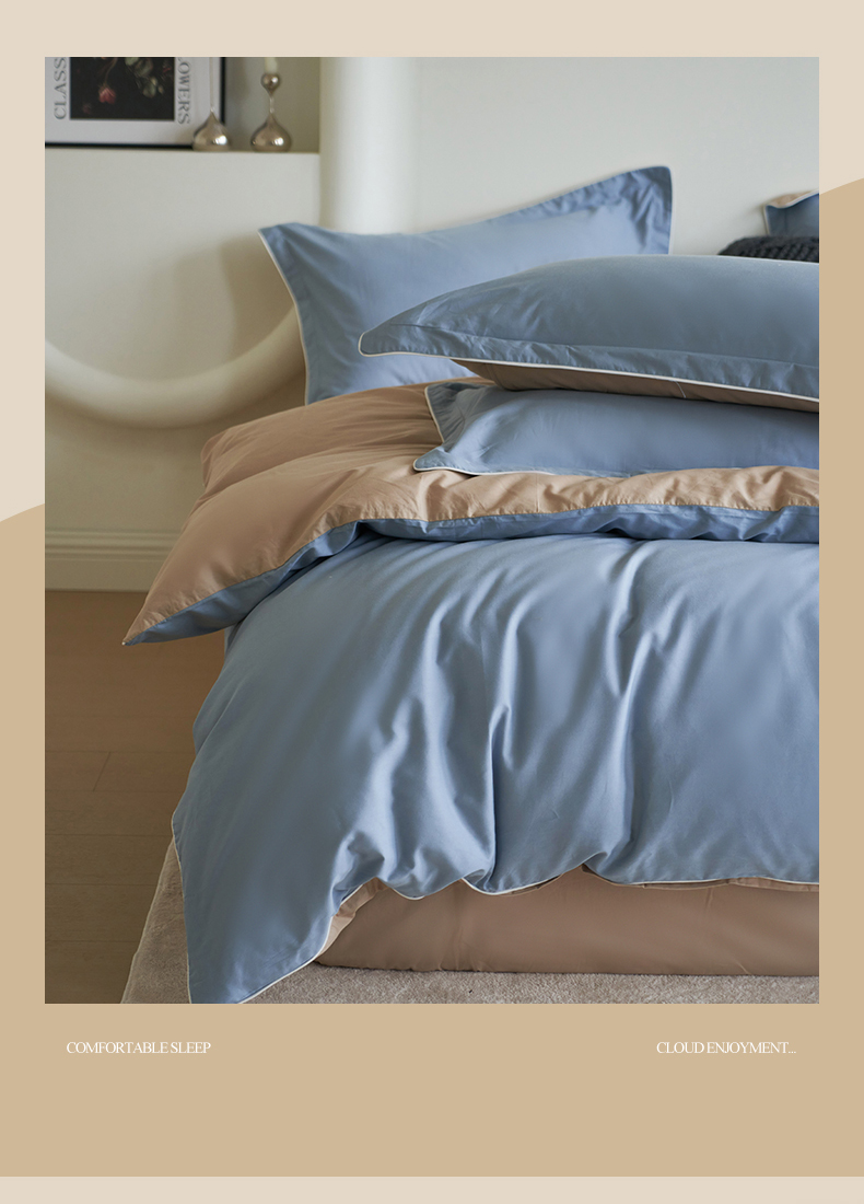 商品名称:盛馨 2024新款40长绒棉美拉德色系纯色双拼全棉四件套纯棉三件套床笠套件 爱情海