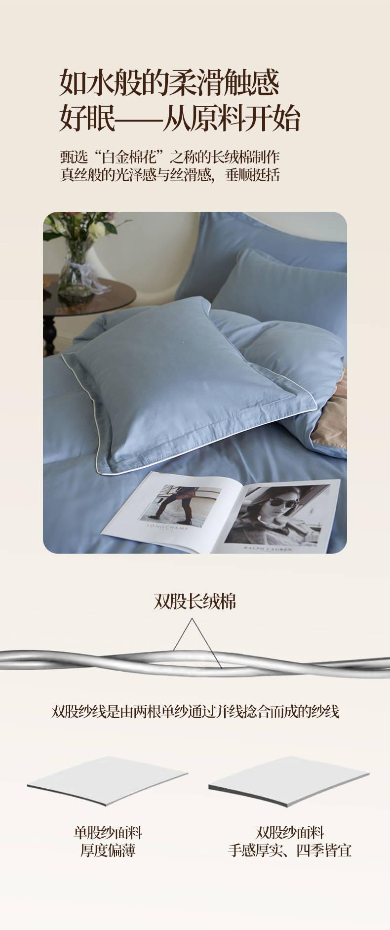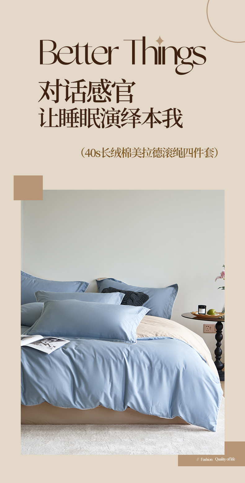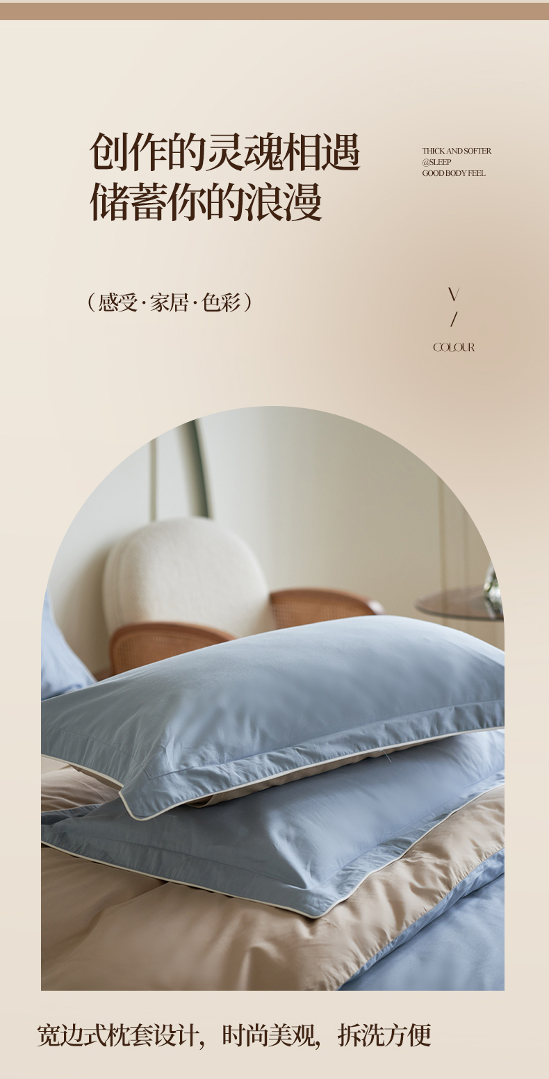 商品名称:盛馨 2024新款40长绒棉美拉德色系纯色双拼全棉四件套纯棉三件套床笠套件 爱情海