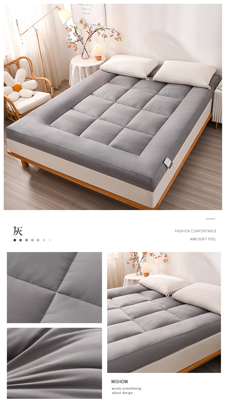 (总)招财狼 2025新款亲肤磨毛床垫,淡雅灰,珍珠白