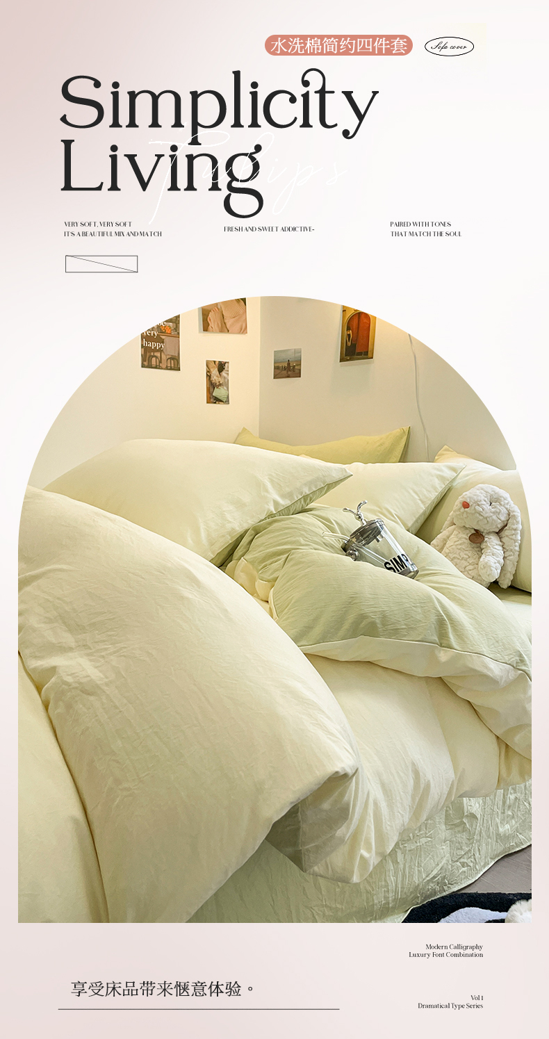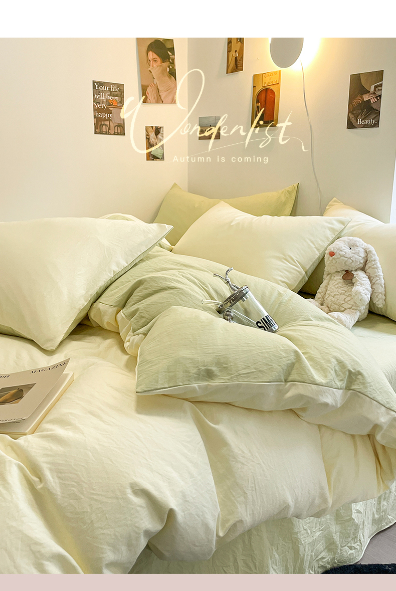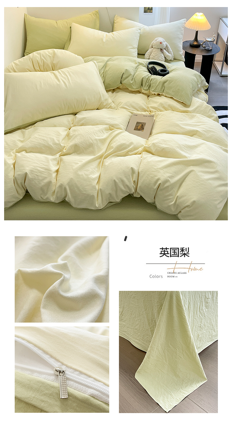 当前位置: 91家纺网 > 商品网购 > 床品套件 > 四件套 > 水洗棉四件套 > 贝拉梦家纺 2024新春夏款母婴级糯糯的双拼亲肤水洗棉四件套 英国梨