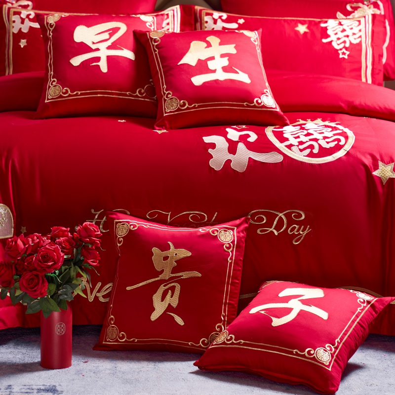 (总)千禧家纺 2024新款双面长绒棉磨毛加厚保暖绣花婚庆套件,大喜大吉,鸿运贺禧,欢乐喜事,欢喜,美满爱情,喜上眉梢,喜约,相伴一生,挚爱
