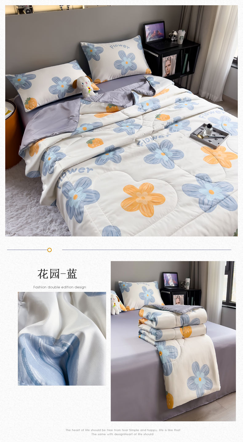 商品名称:缦纱 2024新款印花夏被 花园-蓝