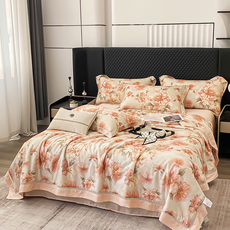 娇逸家居 2025新款50支莱赛尔镂空花边印花天丝夏被 落雪-玉