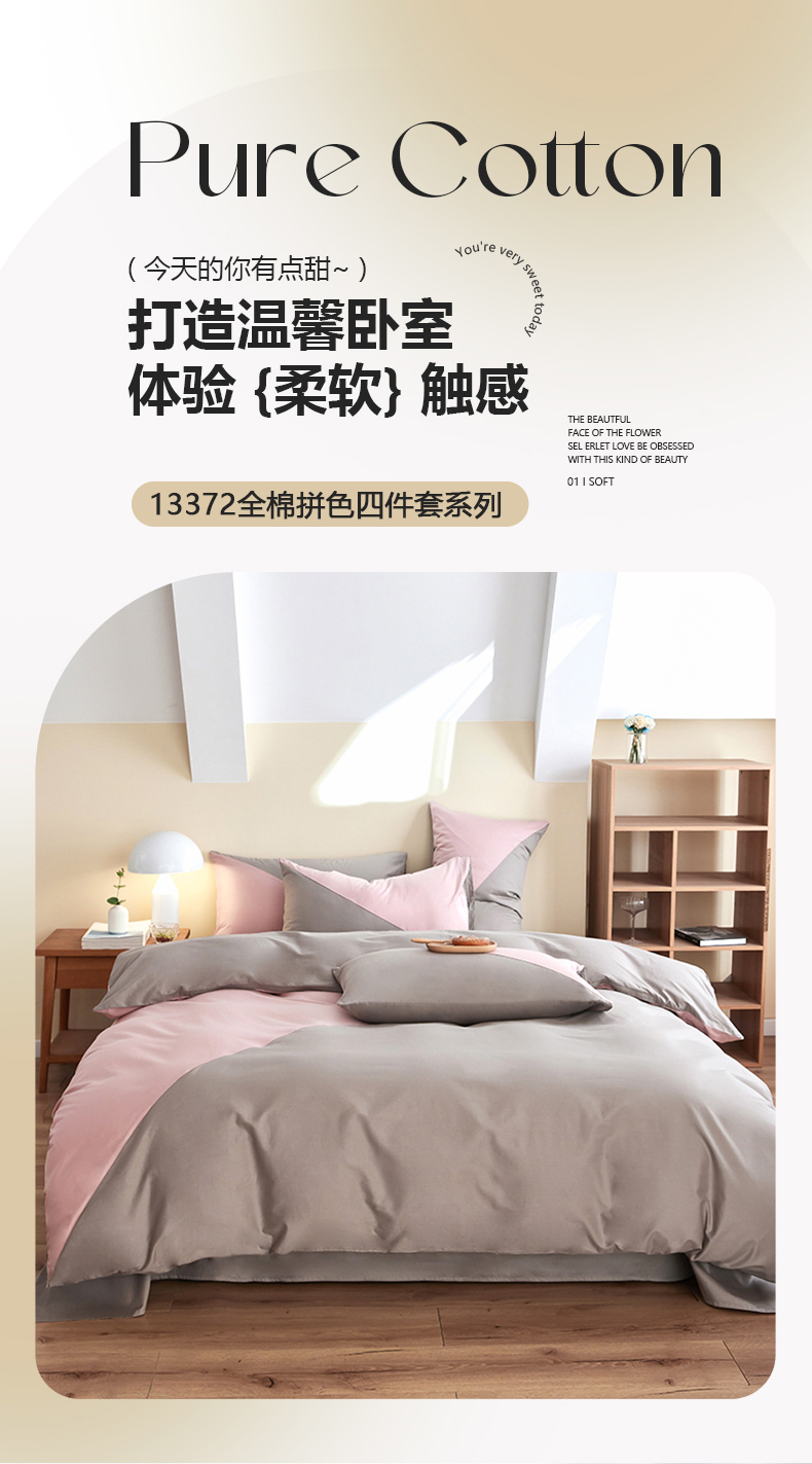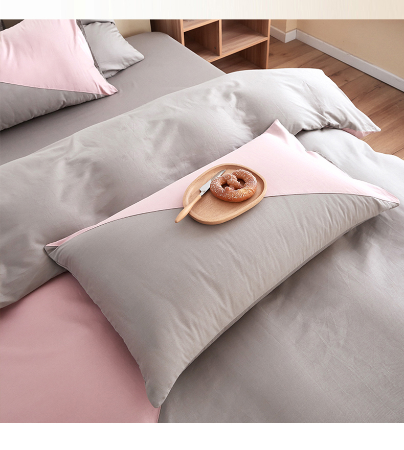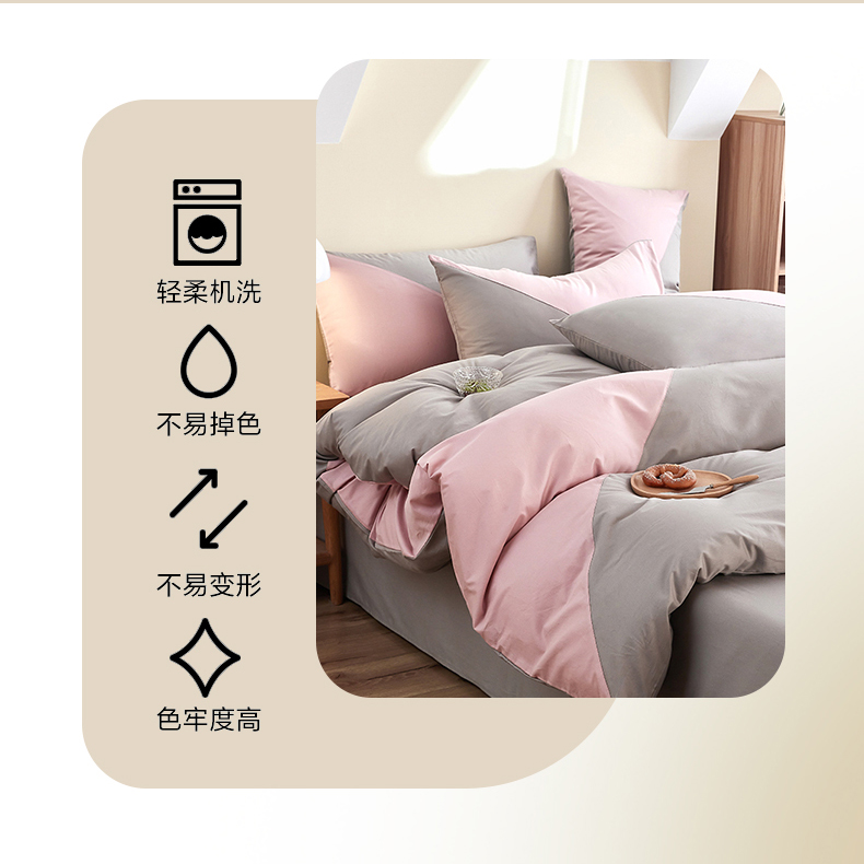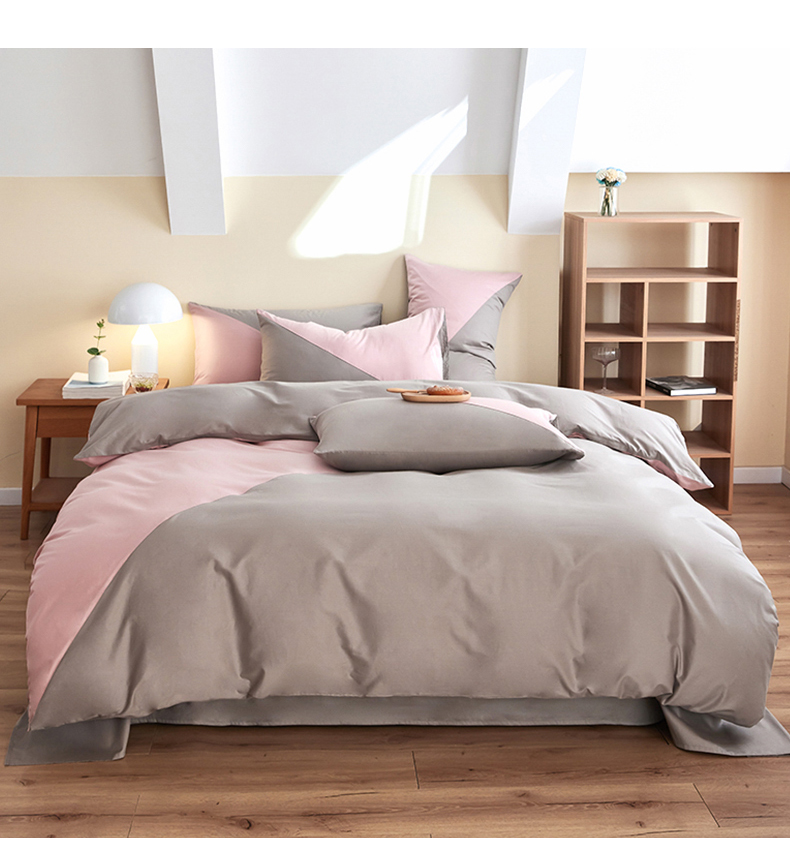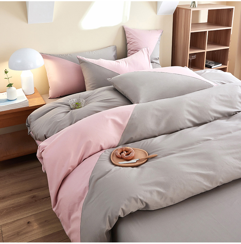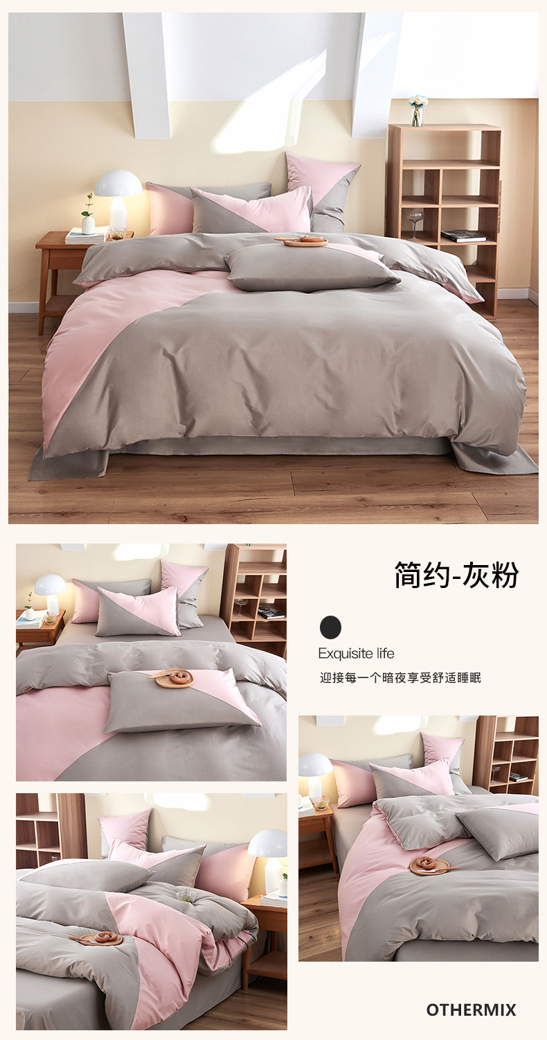 商品名称:慕希家纺 2024新款40S全棉喷气13372简约三角拼四件套 简约-浅粉灰