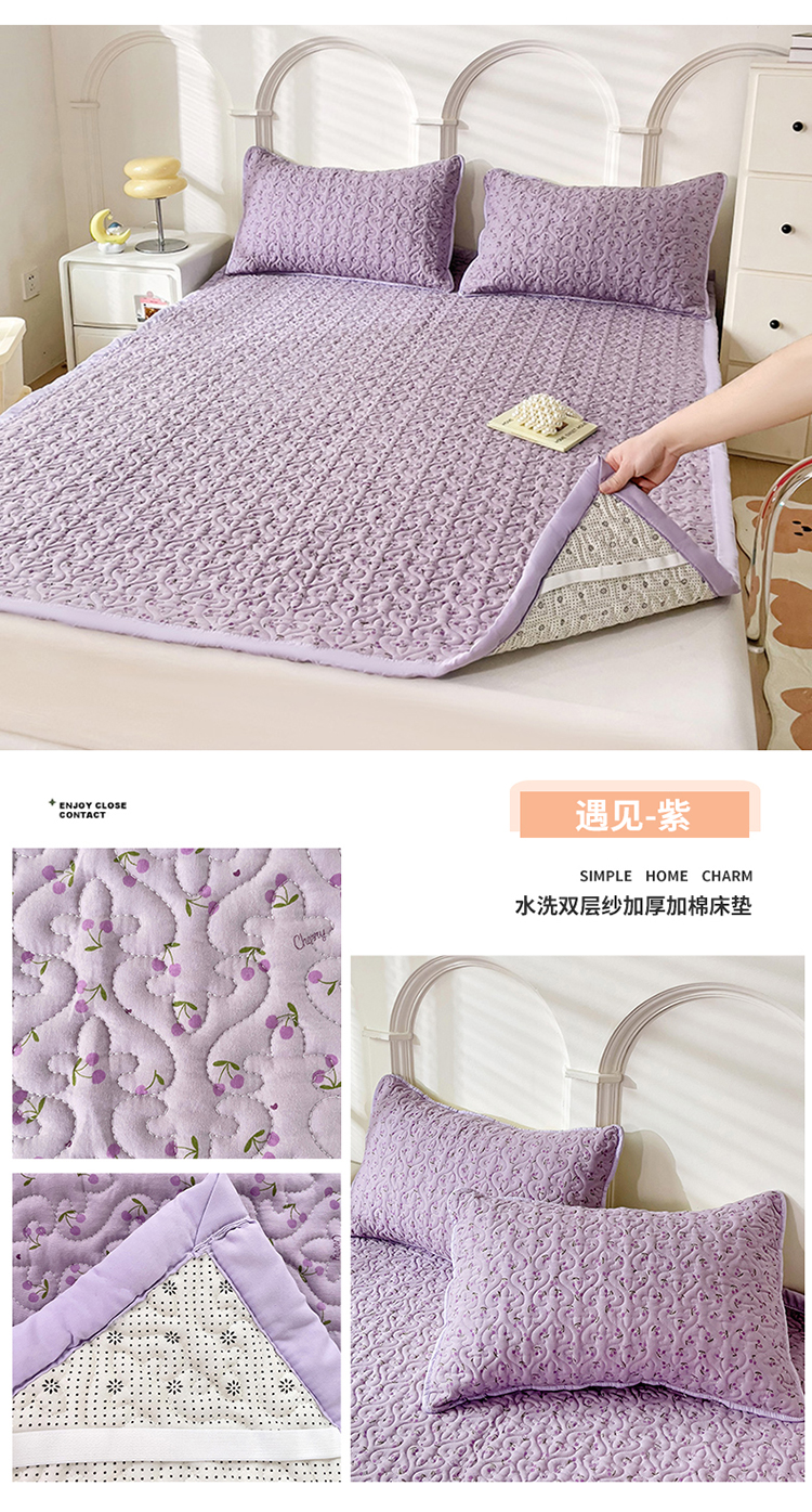 商品名称:纽缦家纺 水洗双层纱加厚加棉床垫 遇见-紫