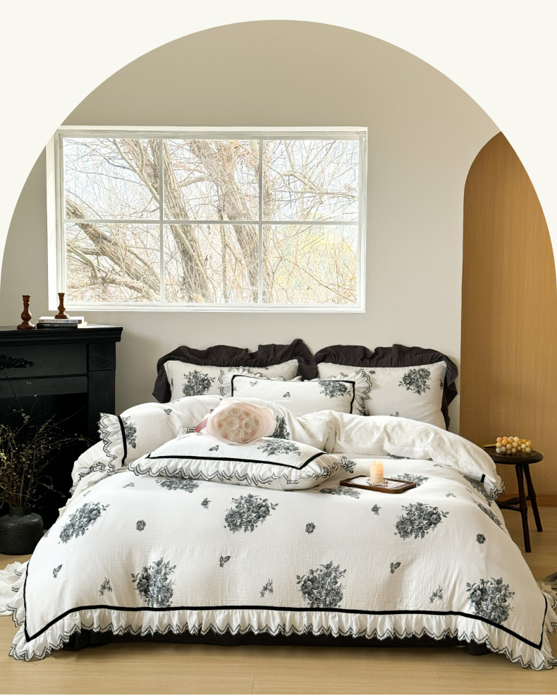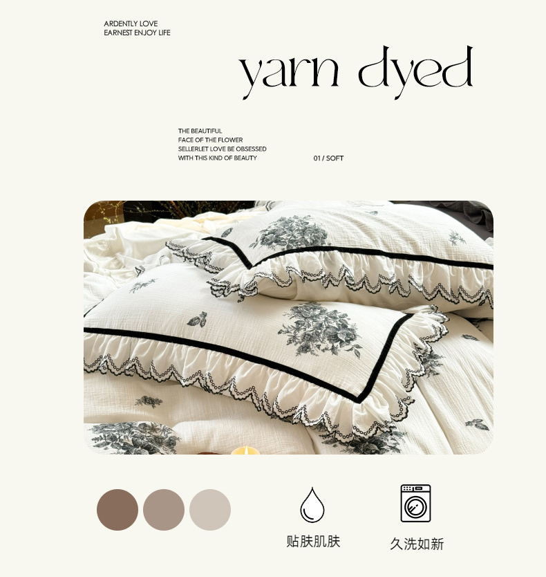 (总)玛奇朵 2025秋冬新品韩国色织A类三层皱皱纱系列四件套,山屿,时序,巷往