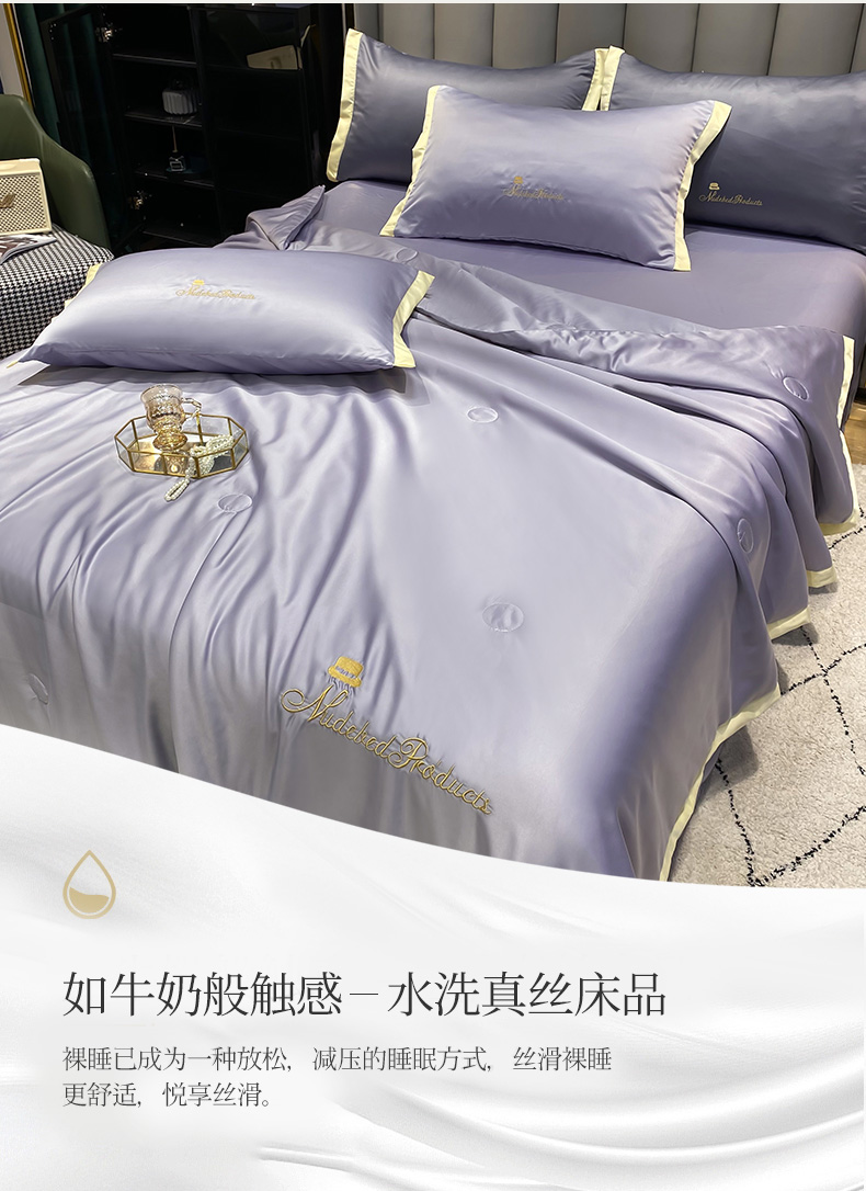 • 91家纺网 家纺一手货源 找家纺 经年 2025新款纯色水洗真丝夏被 凉夏-银灰