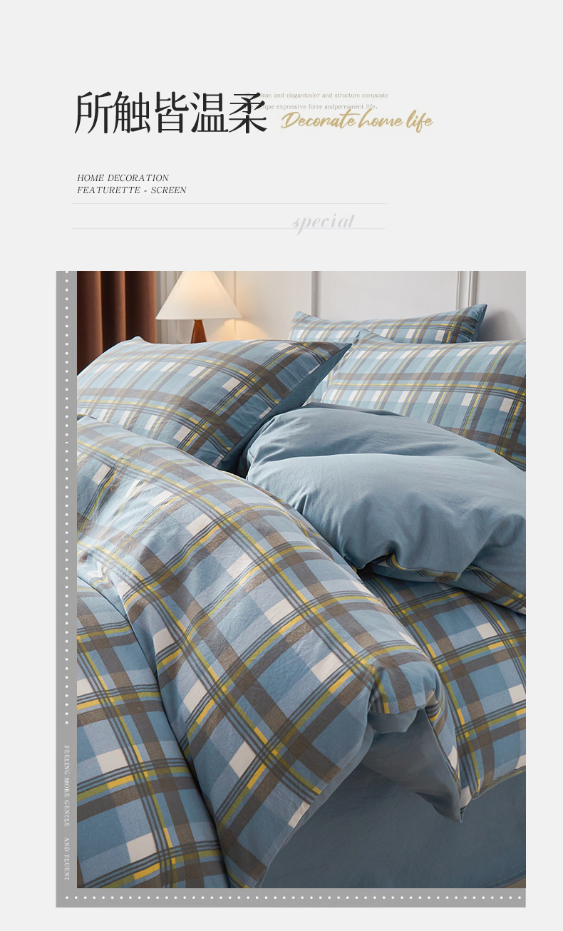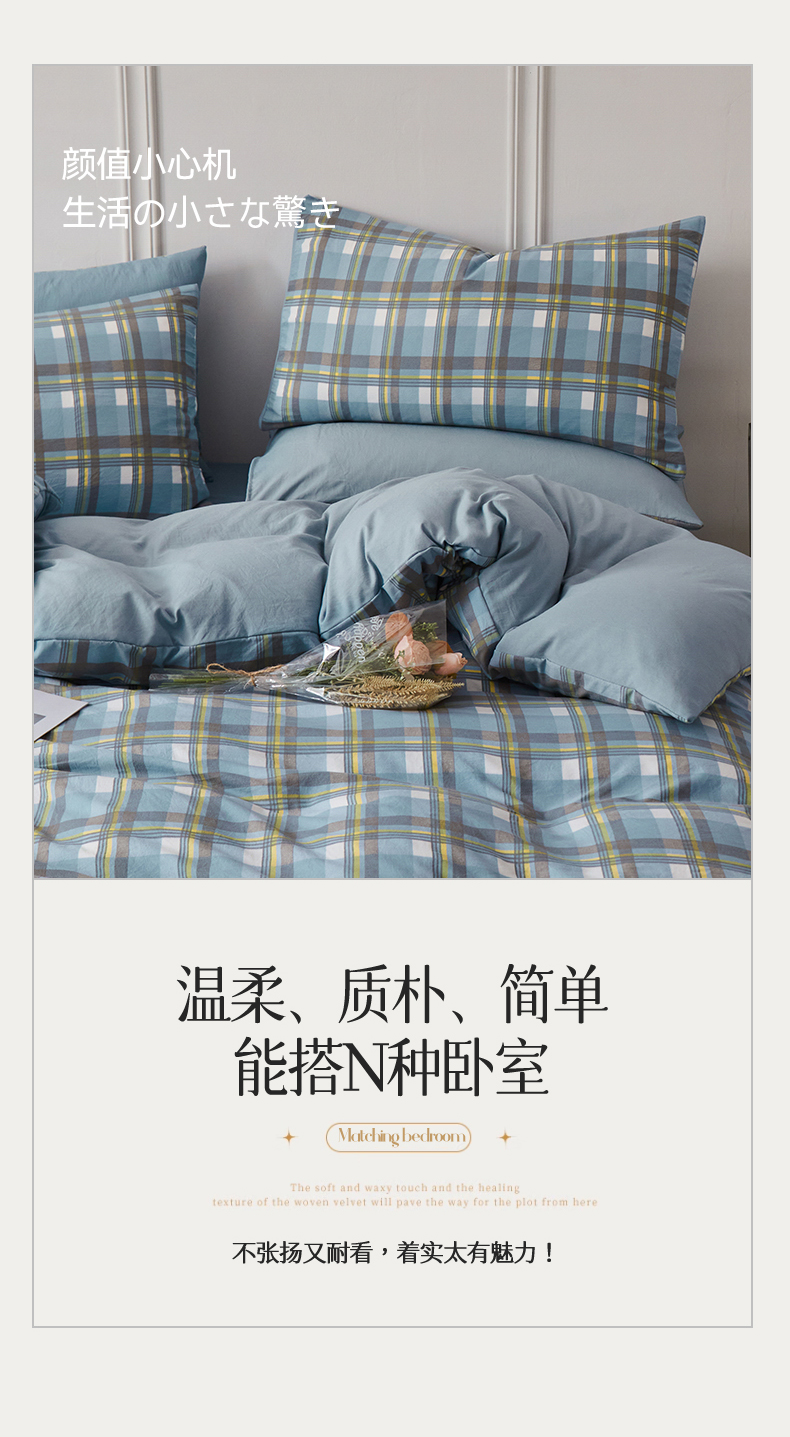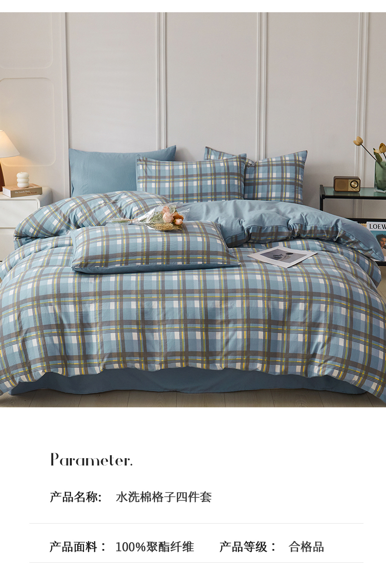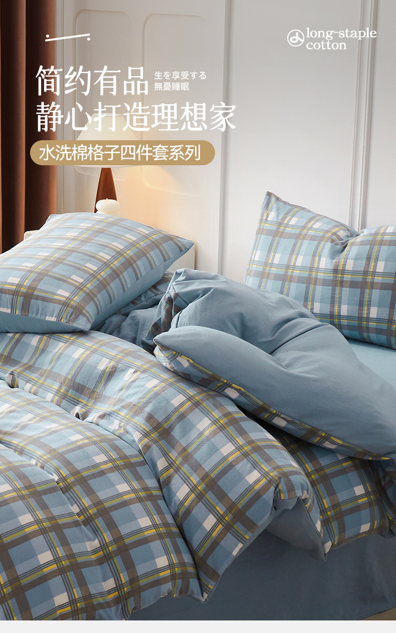 当前位置: 91家纺网 > 商品网购 > 床品套件 > 四件套 > 水洗棉四件套 > 盛秋家纺 2025新款水洗棉格子系列四件套 简约+海清