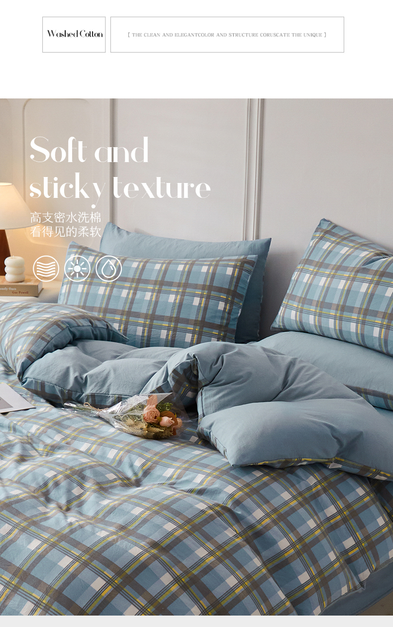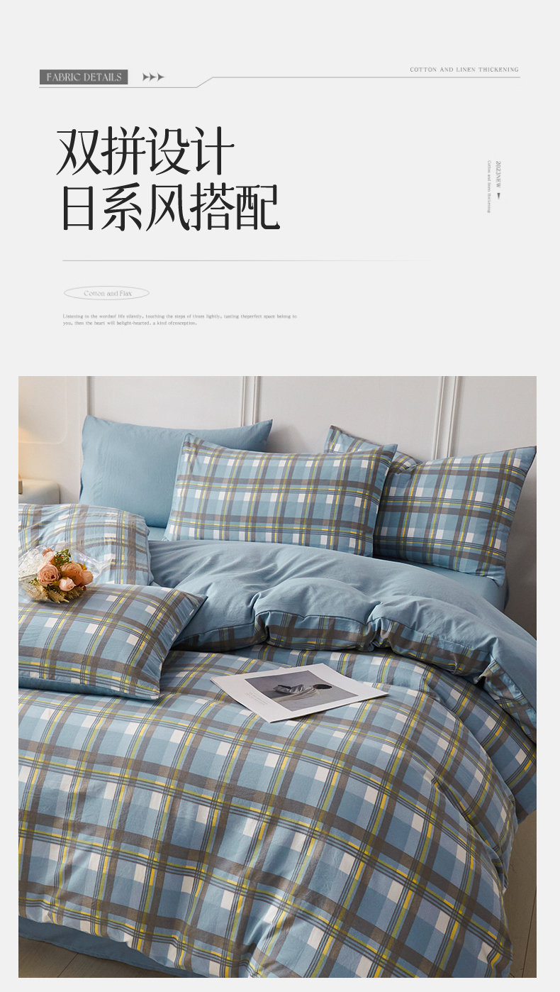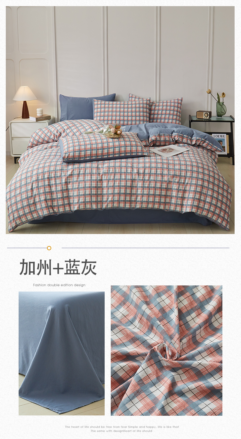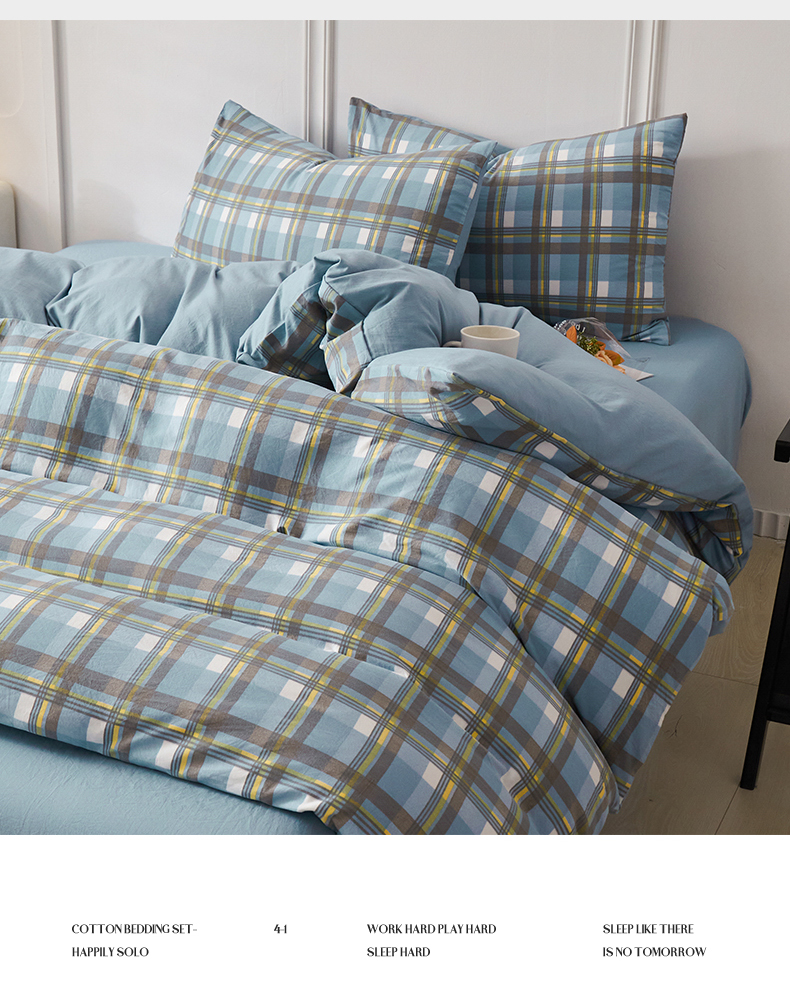 当前位置: 91家纺网 > 商品网购 > 床品套件 > 四件套 > 水洗棉四件套 > 盛秋家纺 2025新款水洗棉格子系列四件套 简约+海清