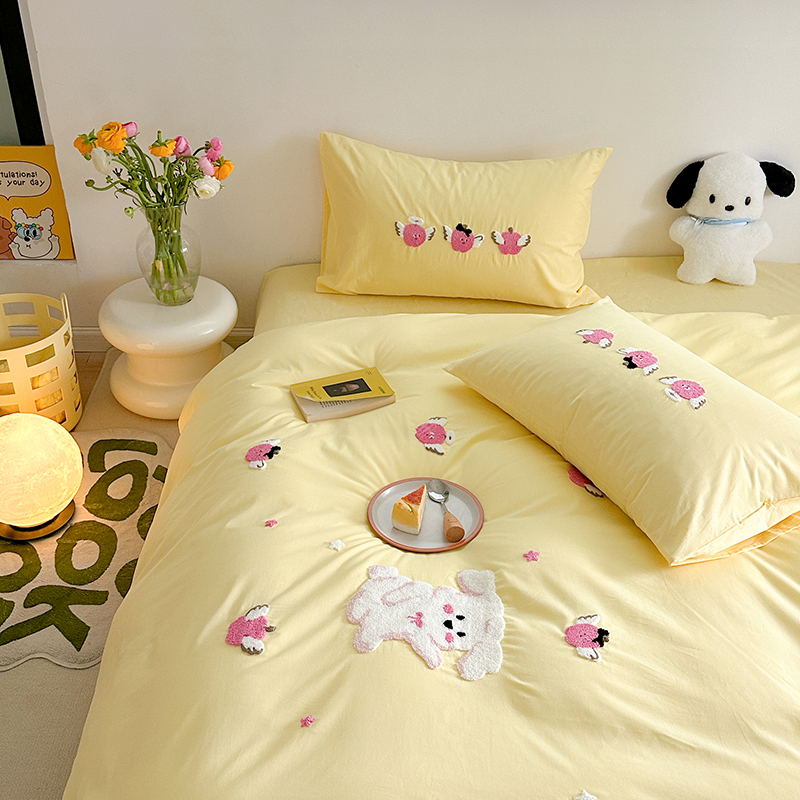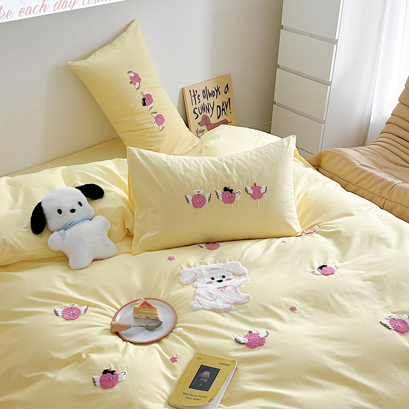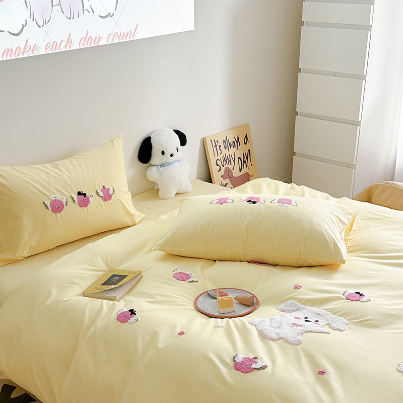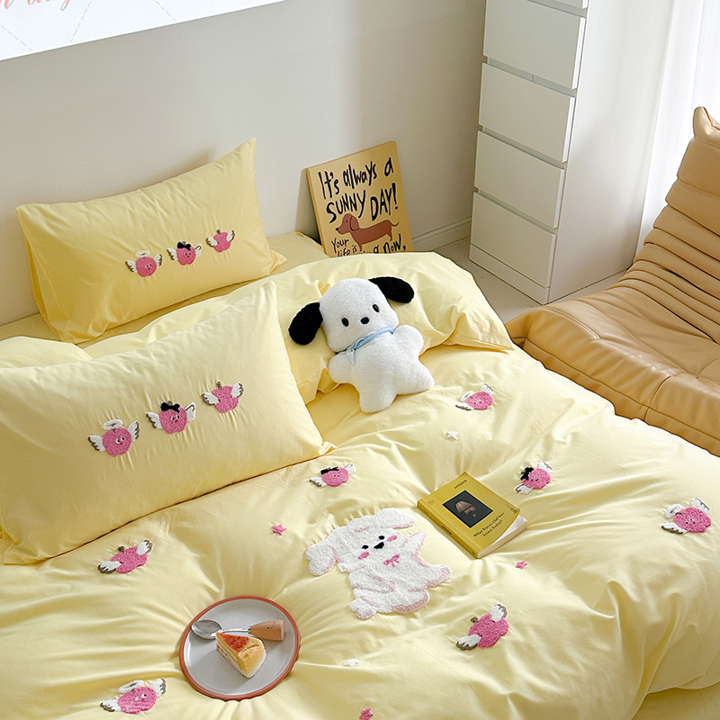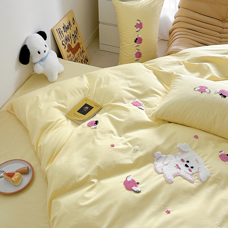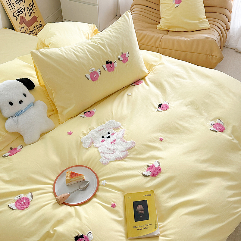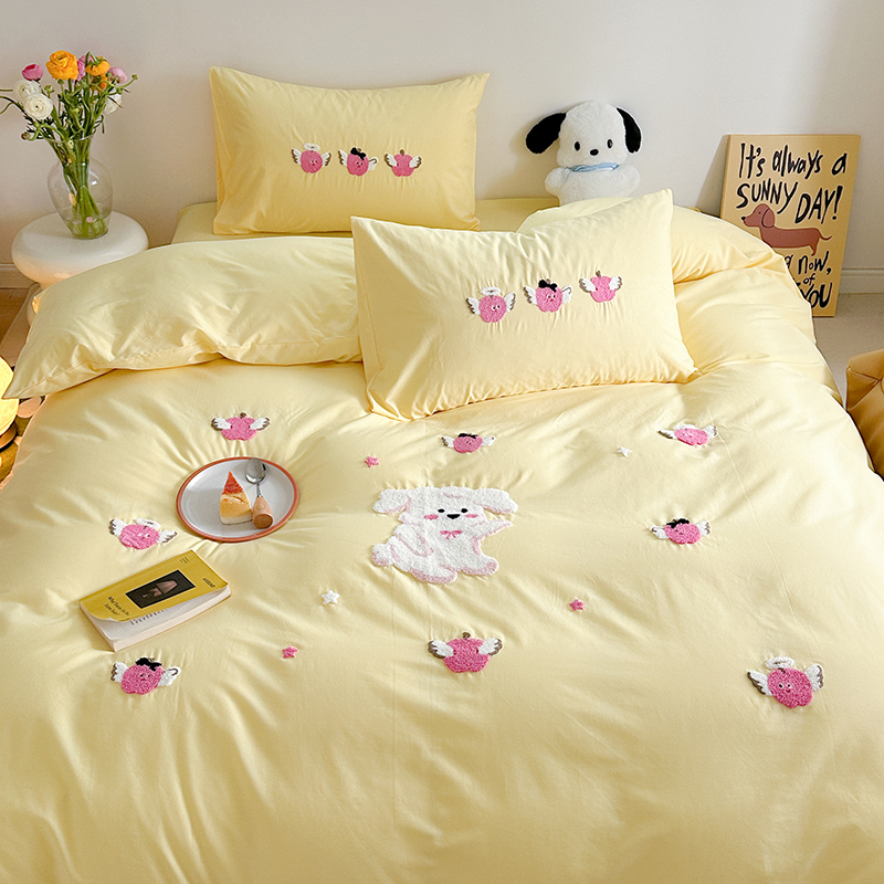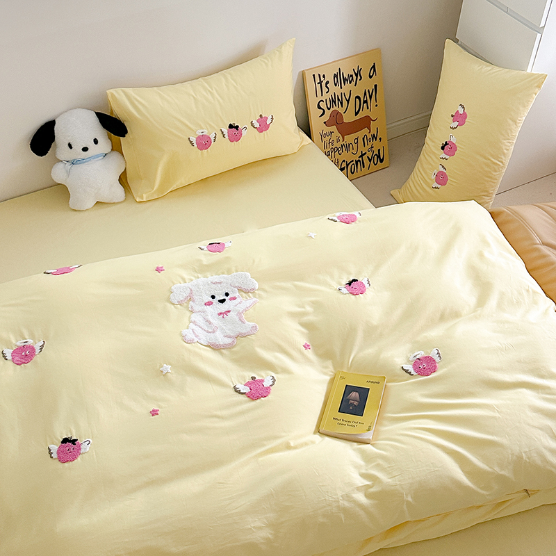 (总)柚子YOUTH 2025新款全棉纯棉工艺款13070贴布绣四件套,爱心小象,毛绒小狗,蘑菇女孩,星星法师