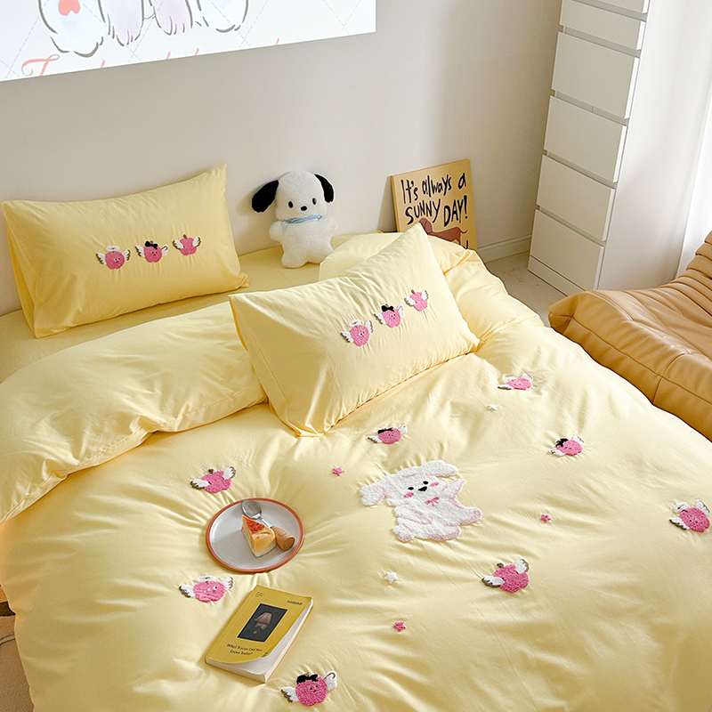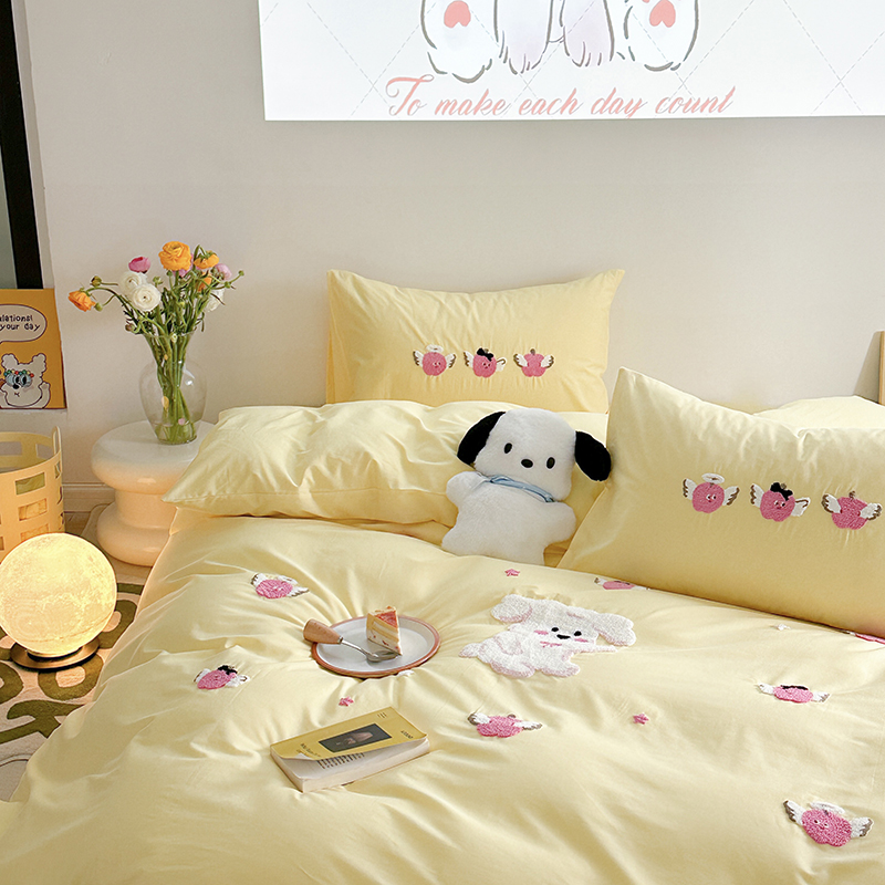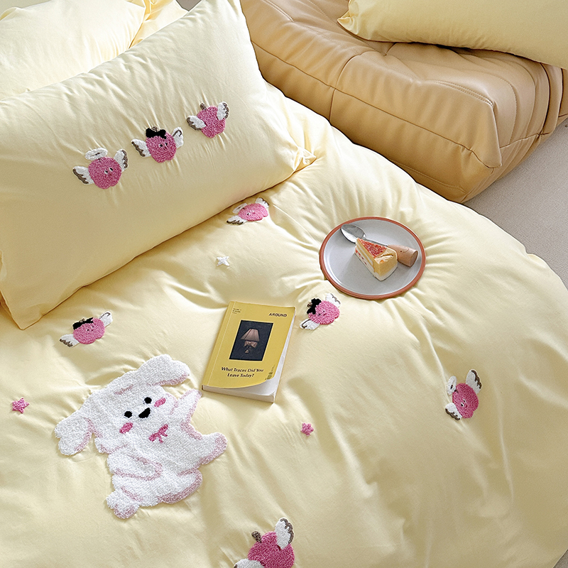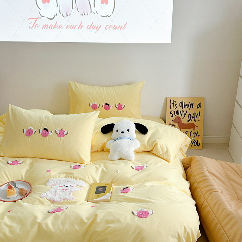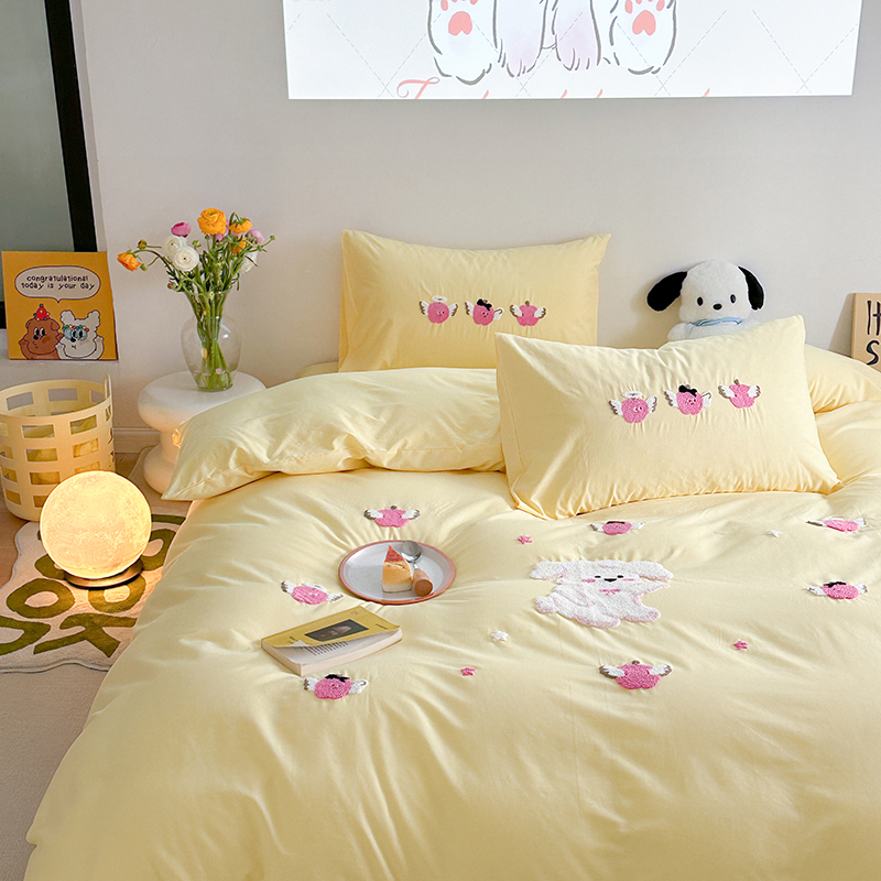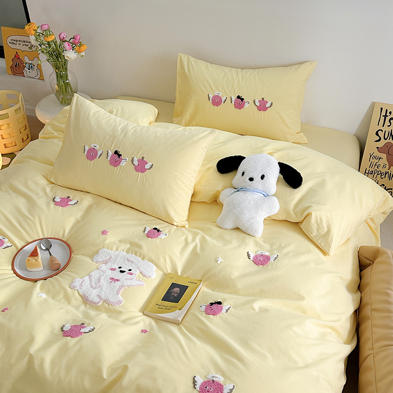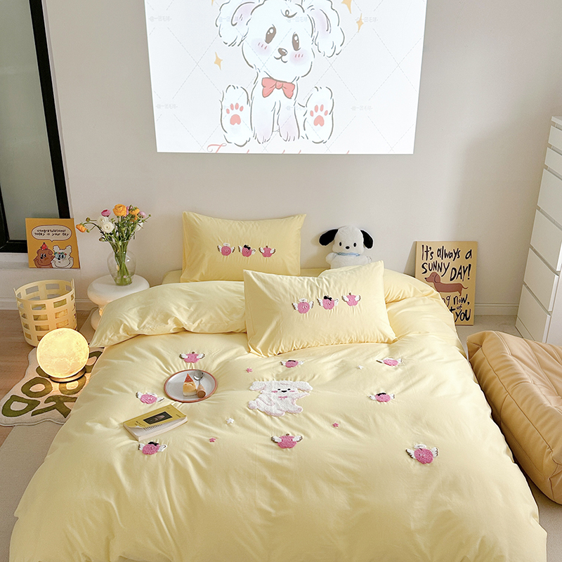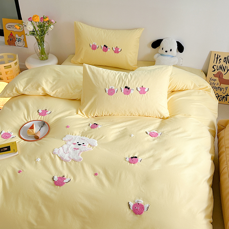 (总)柚子YOUTH 2025新款全棉纯棉工艺款13070贴布绣四件套,爱心小象,毛绒小狗,蘑菇女孩,星星法师