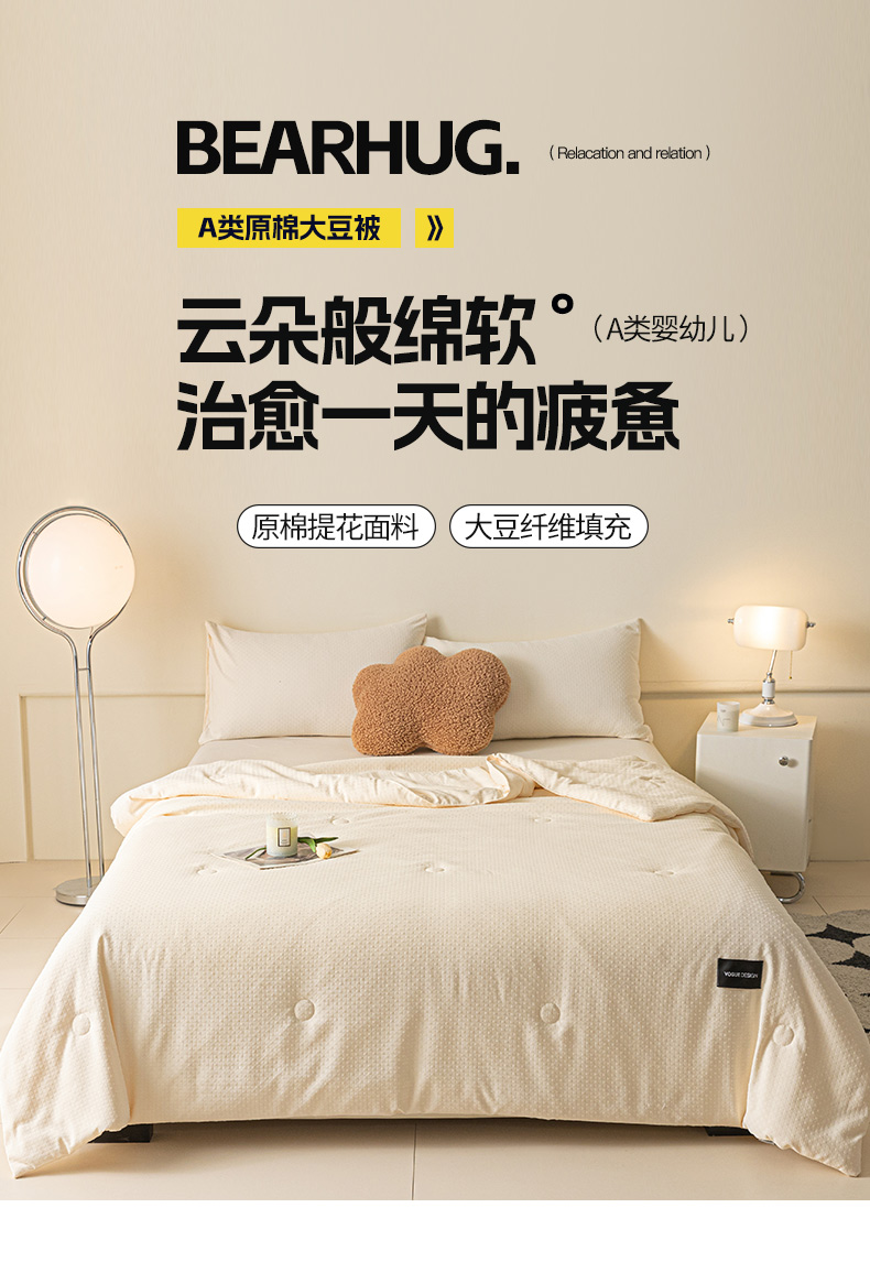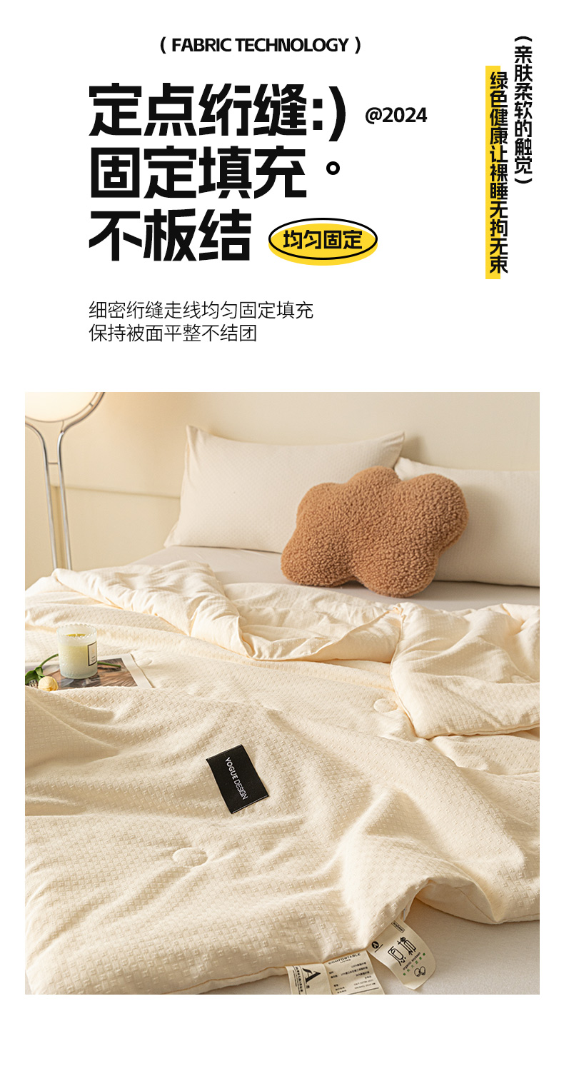 • 91家纺网 家纺一手货源 找家纺 莱登卡奴 2024新款原棉提花有机棉剪花大豆被夏被 有机棉-奶白
