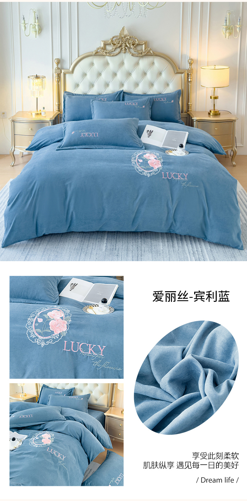 (总)逸林家纺《原希尔顿逸林》 2025新款牛奶绒绣花四件套-可可系列,可可-宾利蓝,可可-豆沙,可可-繁星蓝,可可-粉玉,可可-香芋紫,可可-雅士灰