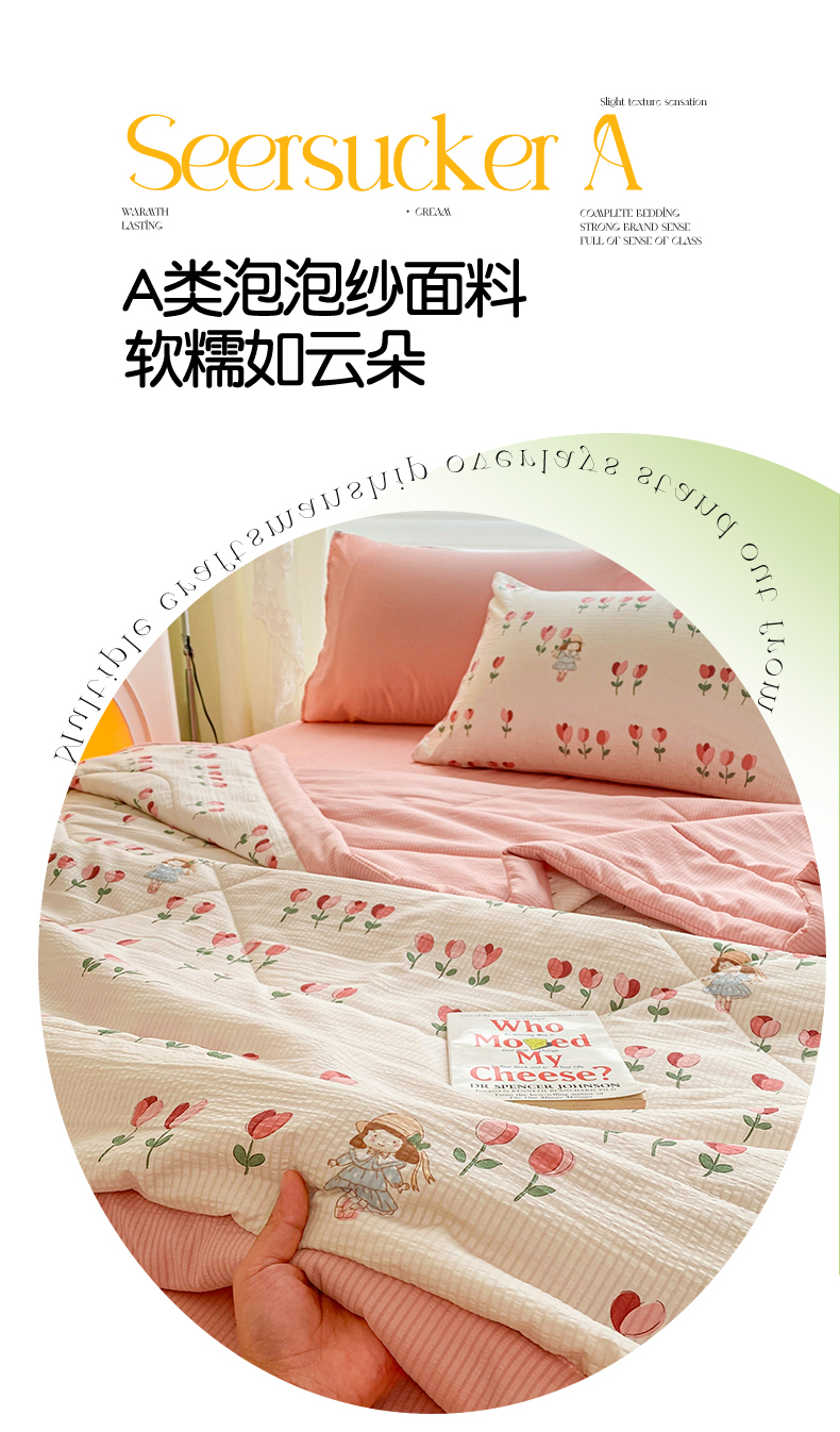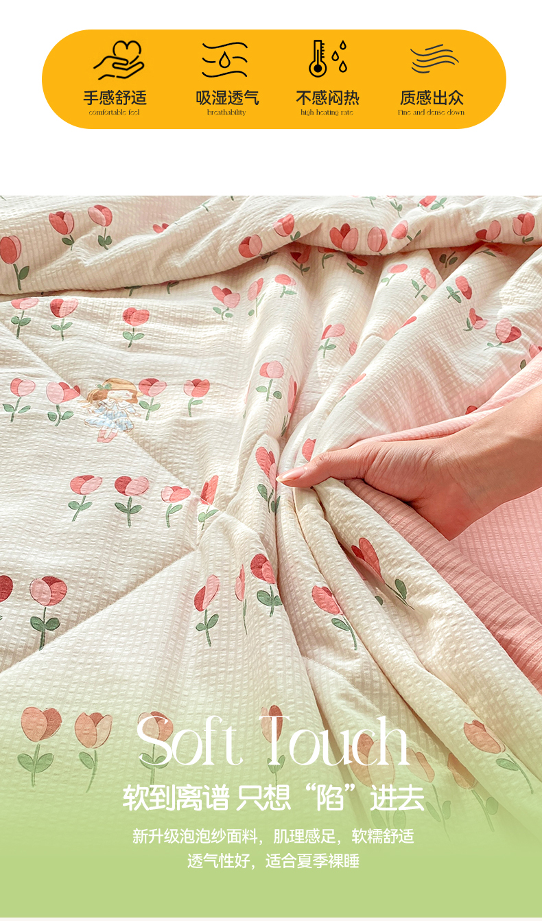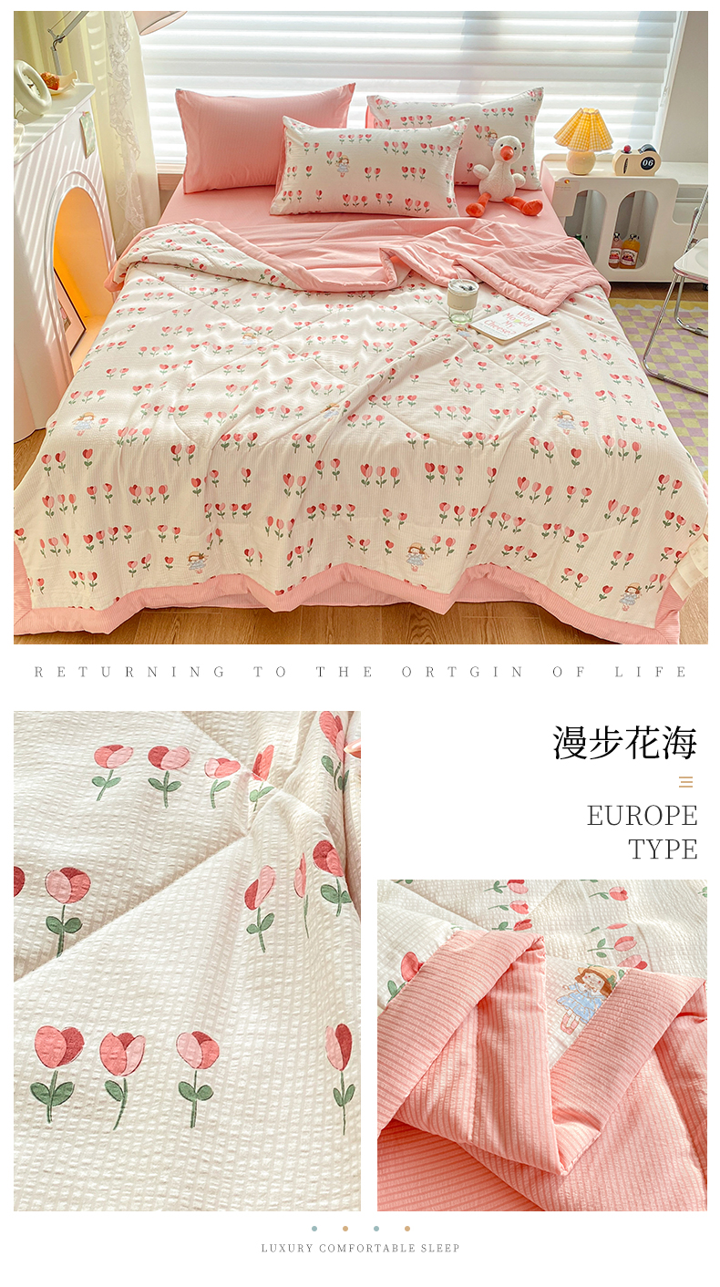 • 91家纺网 家纺一手货源 找家纺 可思家纺 2024新款A类泡泡纱夏被四件套 漫步花海