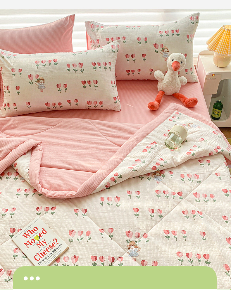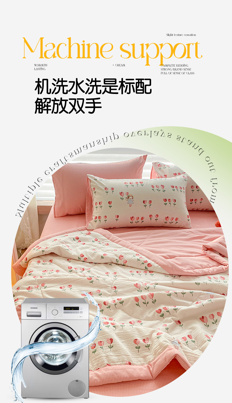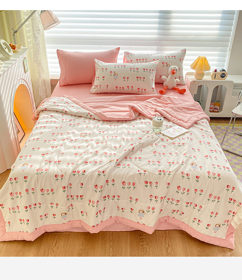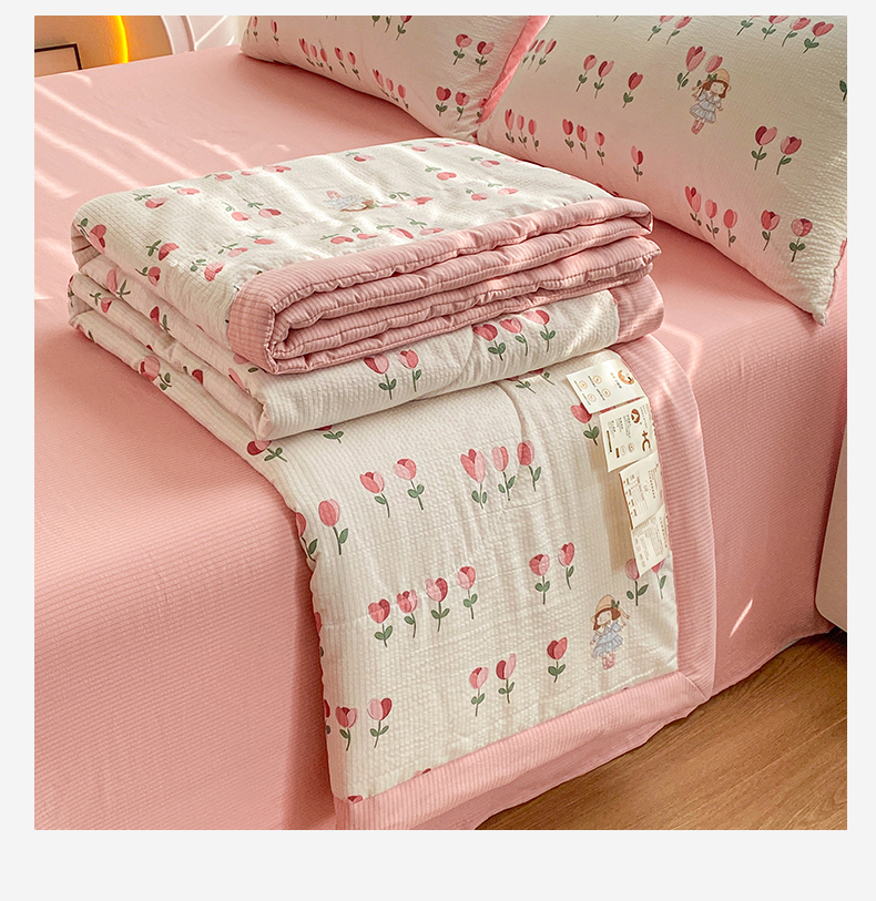 • 91家纺网 家纺一手货源 找家纺 可思家纺 2024新款A类泡泡纱夏被四件套 漫步花海