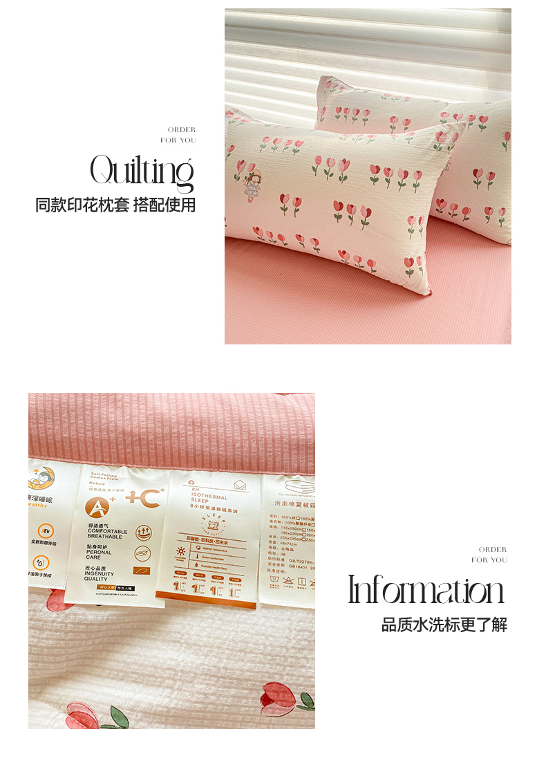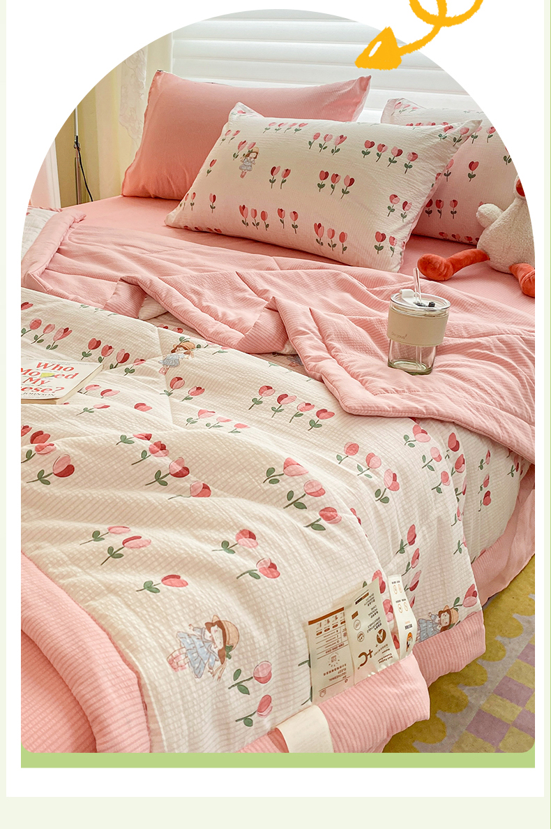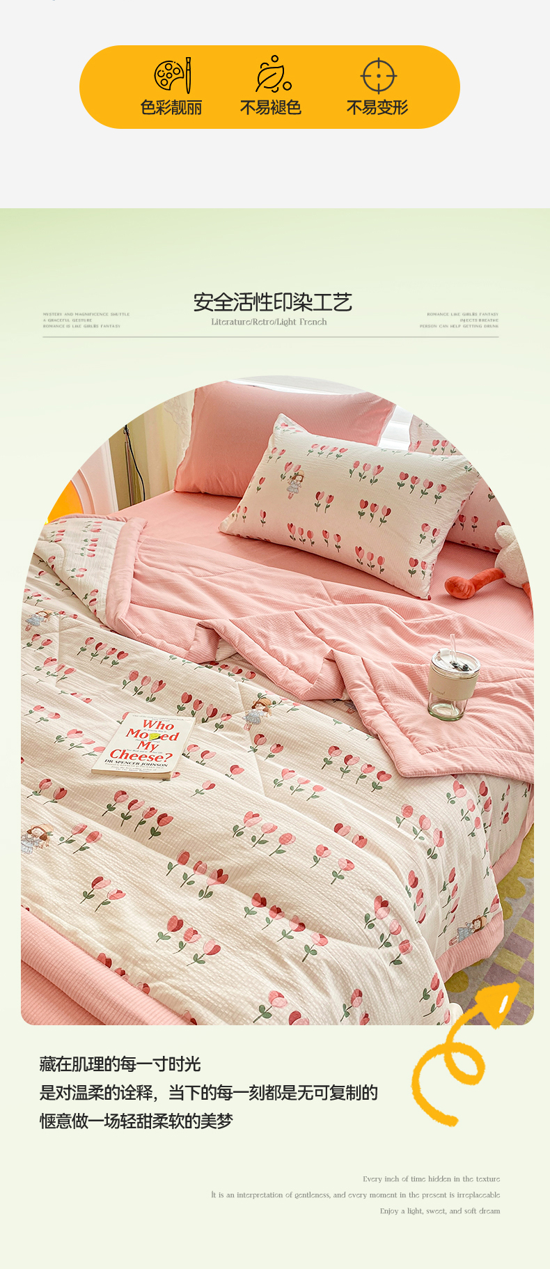 当前位置: 91家纺网 > 商品网购 > 被子 > 夏被 > 可思家纺 2024新款A类泡泡纱夏被四件套 漫步花海