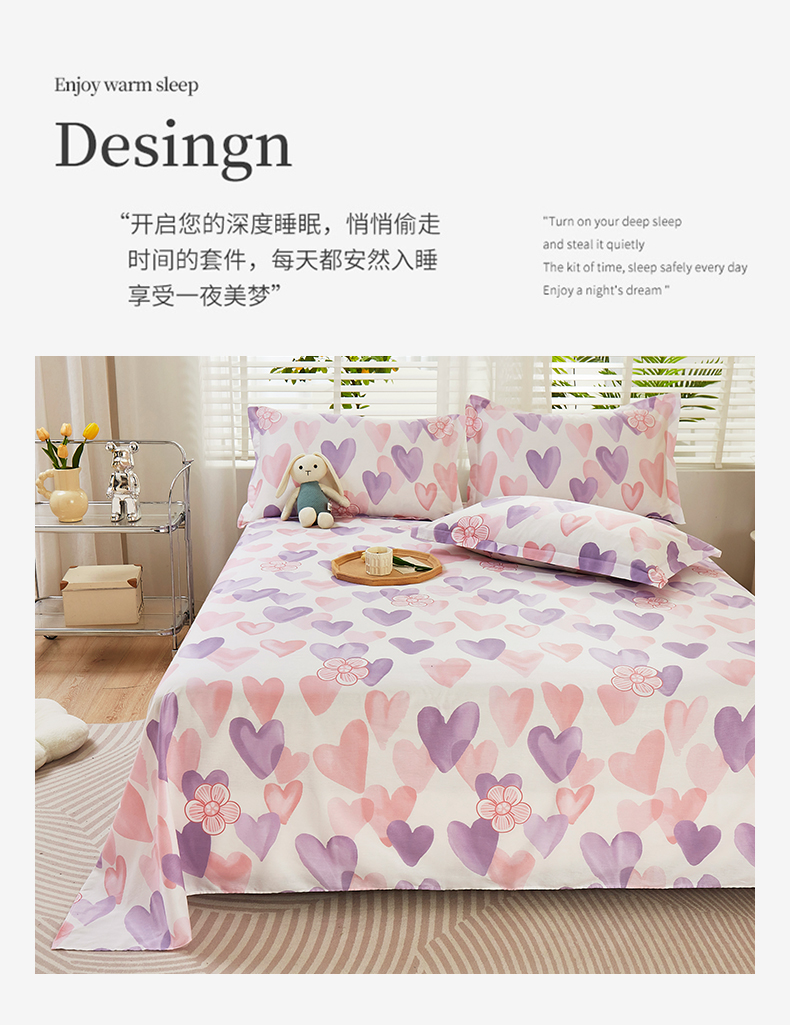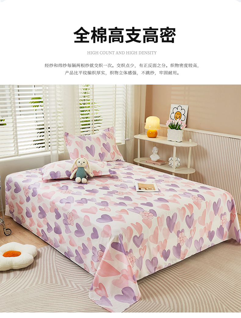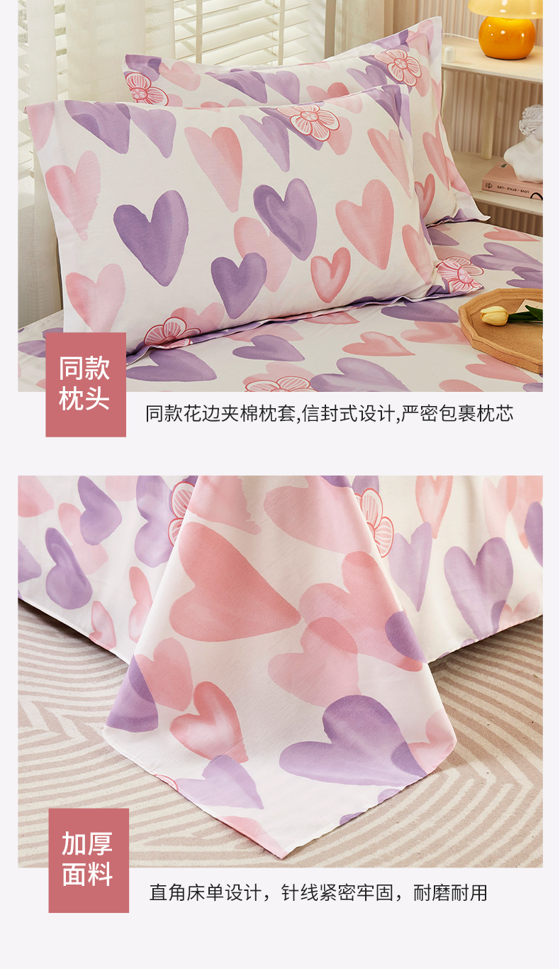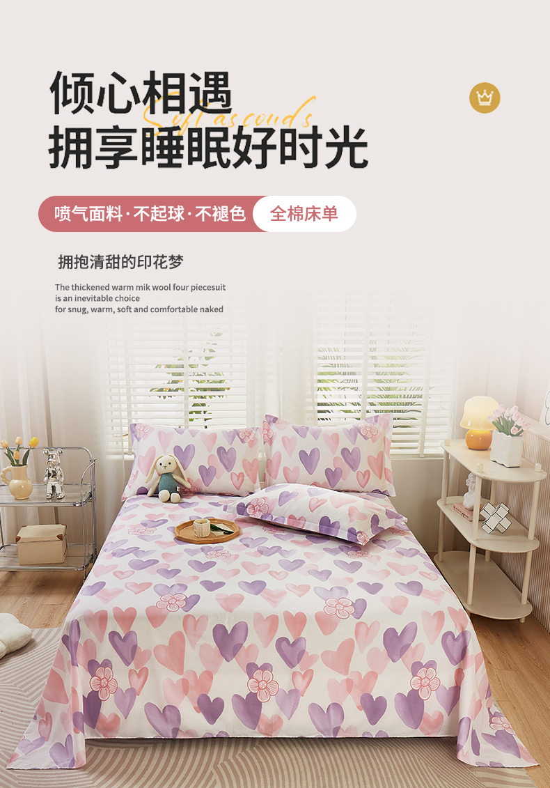 商品名称:名优家纺 2024新款13070套件系列-全棉印花单床单 小甜心-紫色
