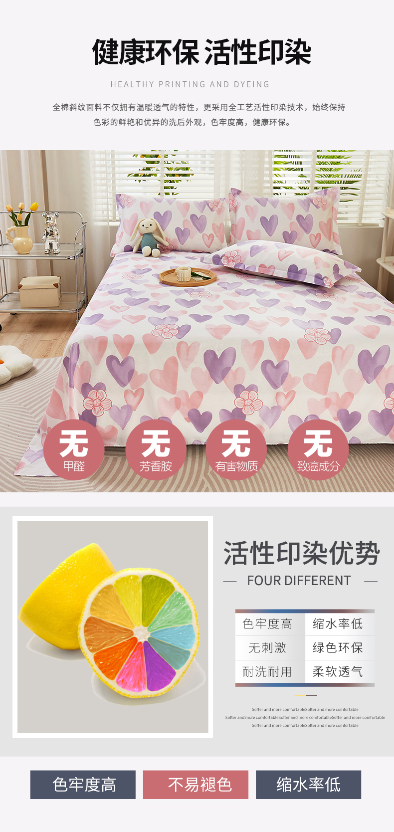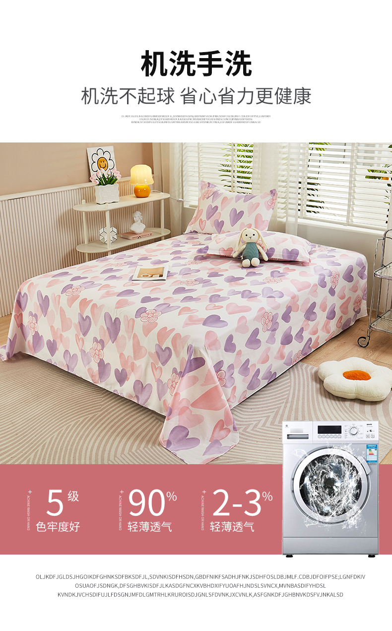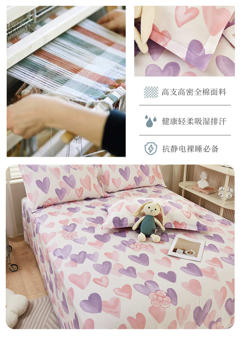 商品名称:名优家纺 2024新款13070套件系列-全棉印花单床单 小甜心-紫色