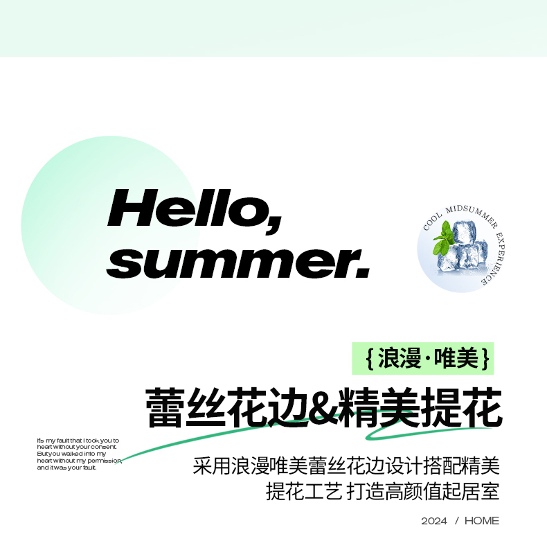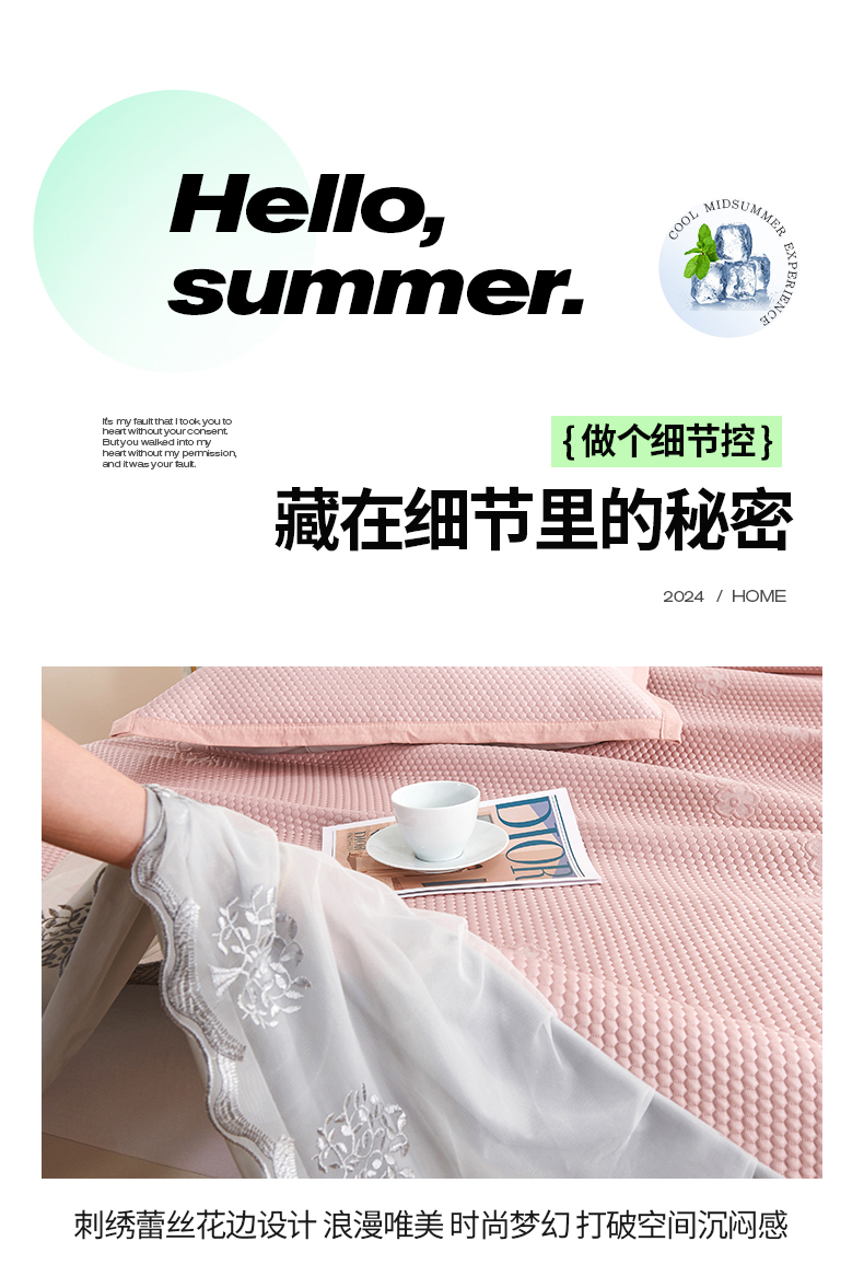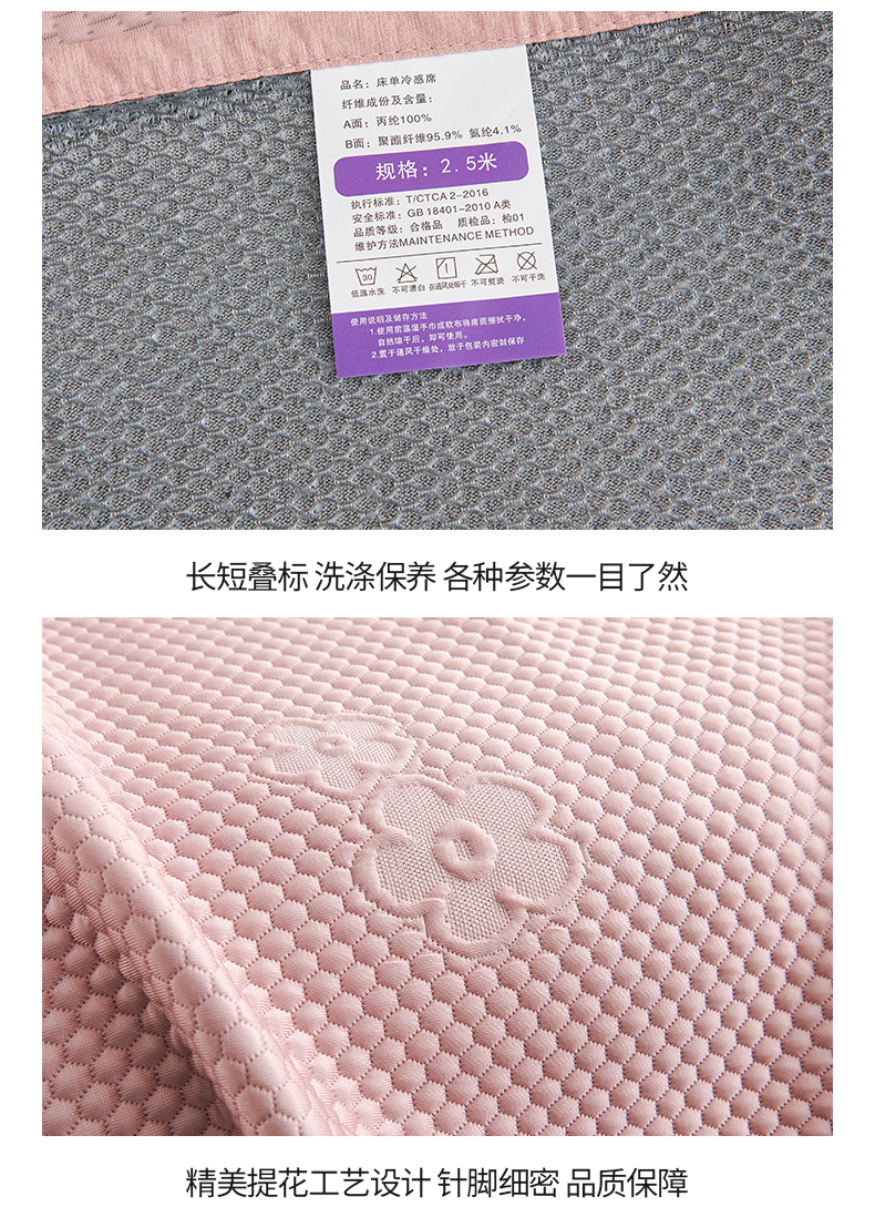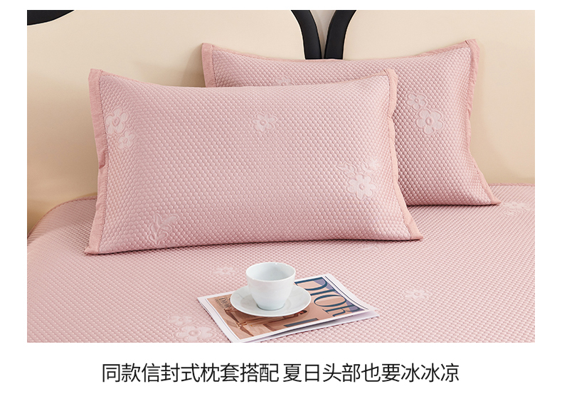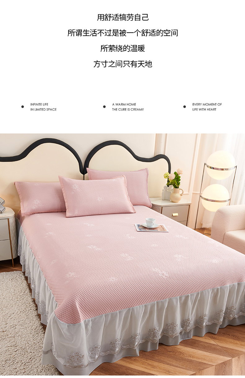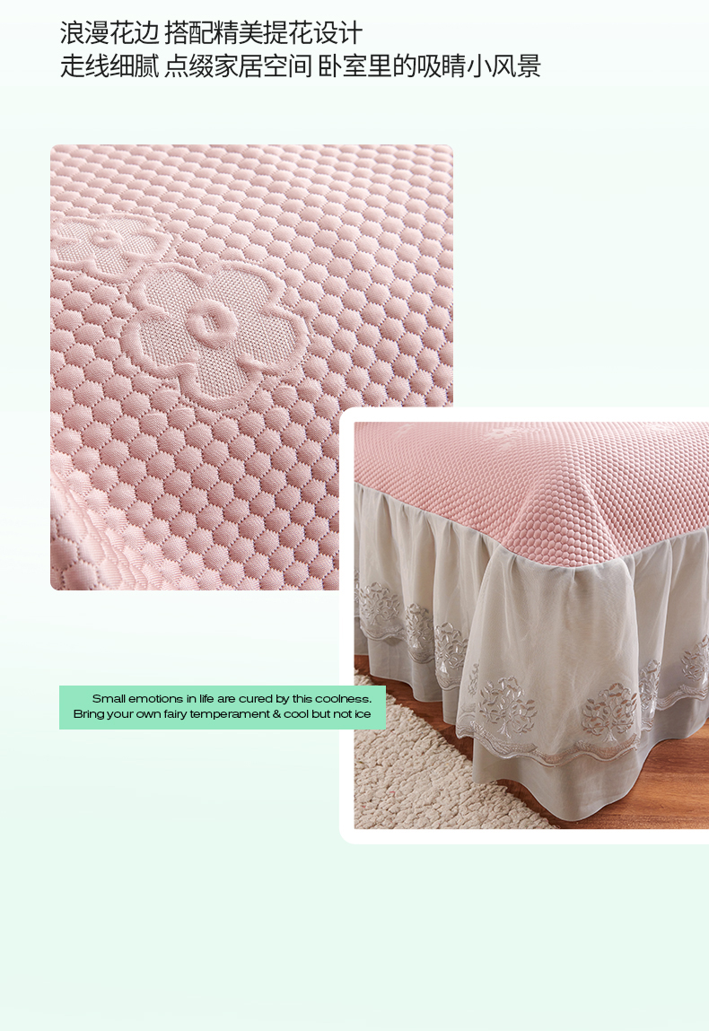 商品名称:宜派家纺 2024新款雪花冷感席三件套床单式床裙款 樱花-粉