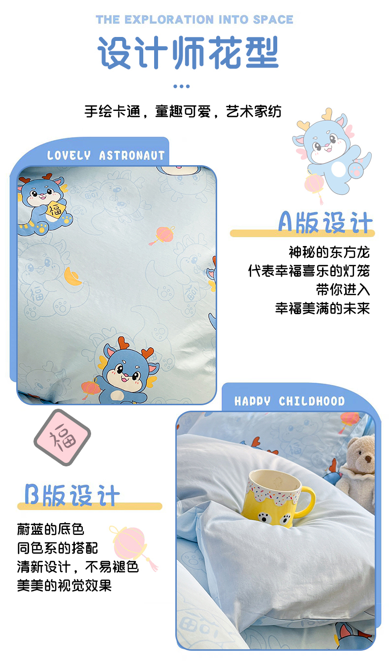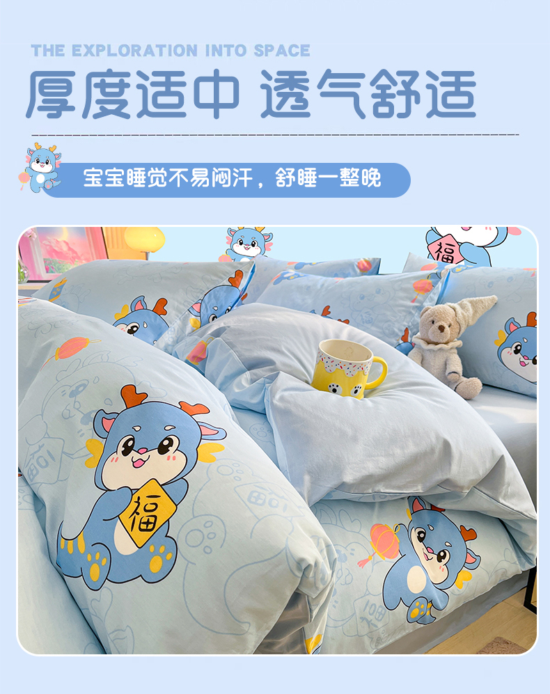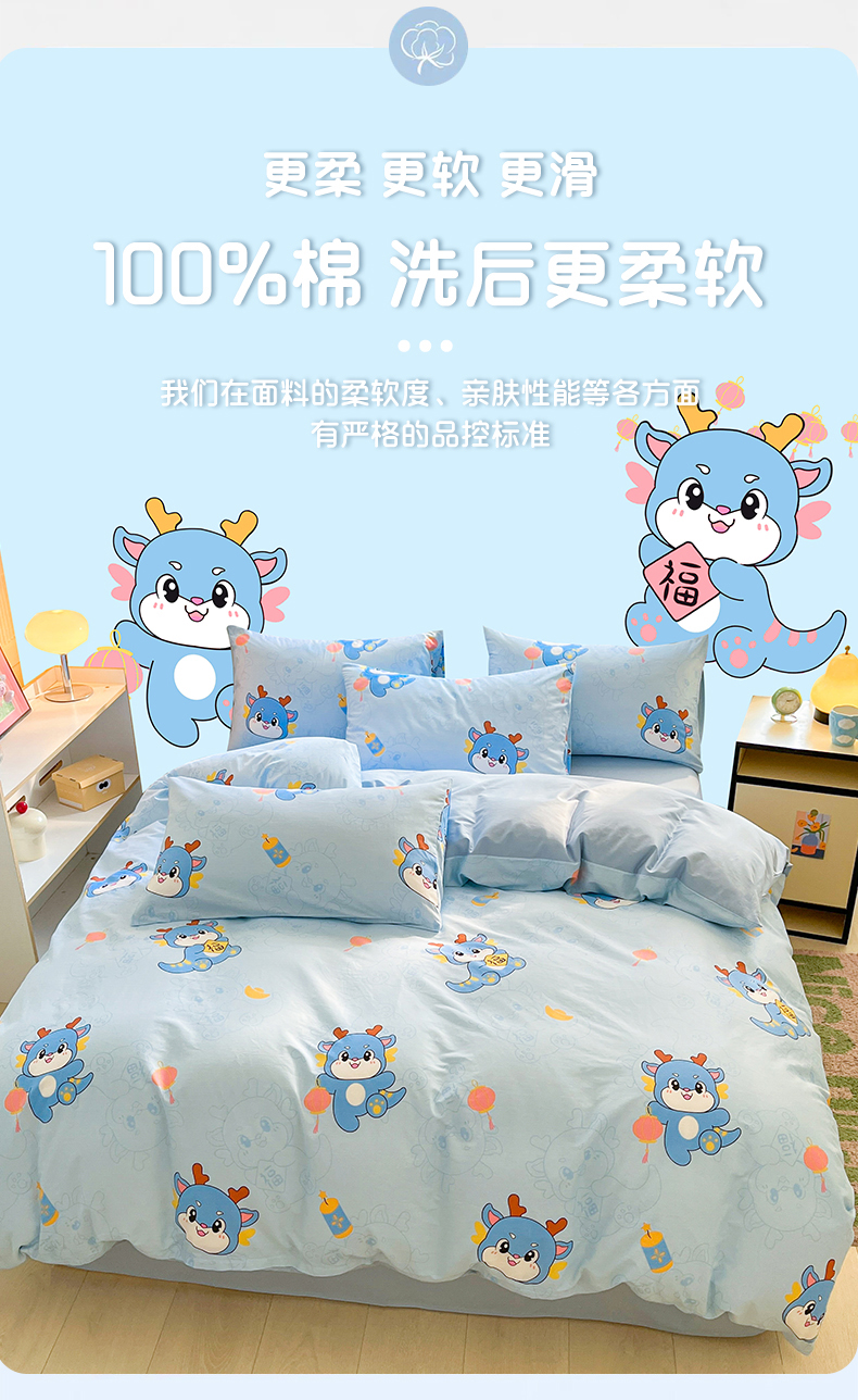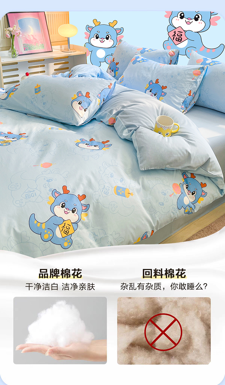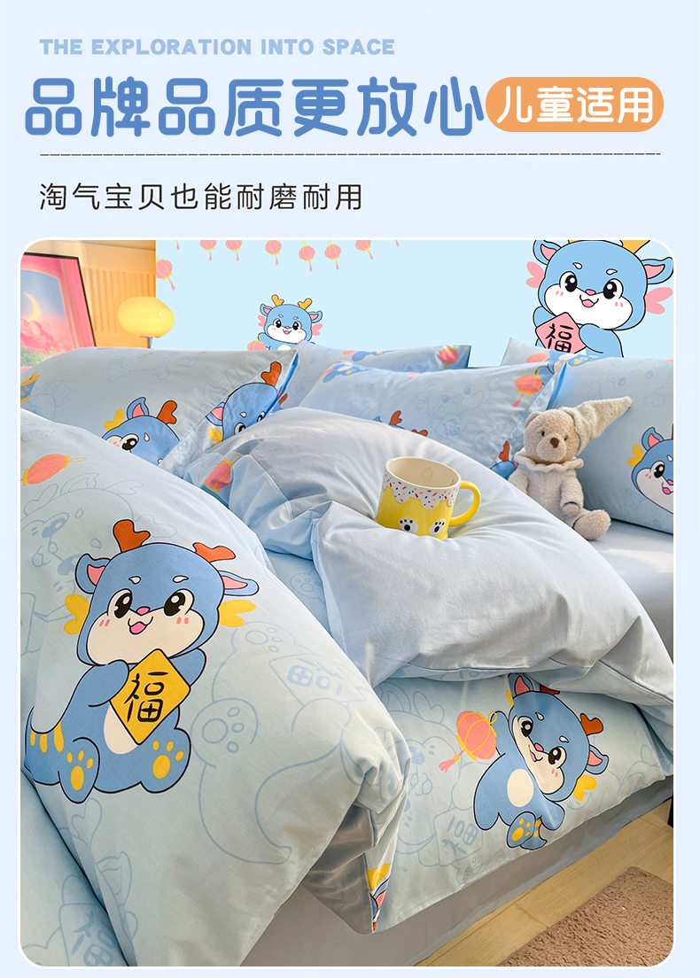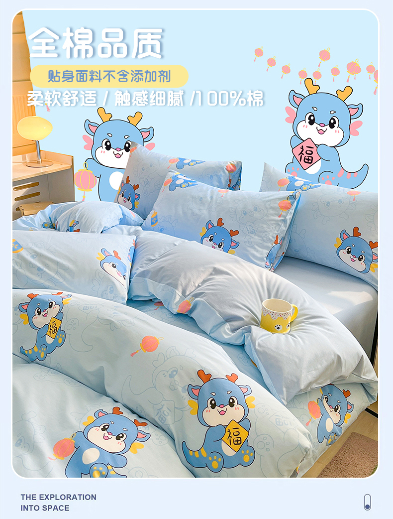 当前位置: 91家纺网 > 商品网购 > 床品套件 > 四件套 > 全棉普通四件套 > 金鑫汇家纺 2024新款全棉纯棉卡通印花四件套单品系列-四件套 瑞龙送福
