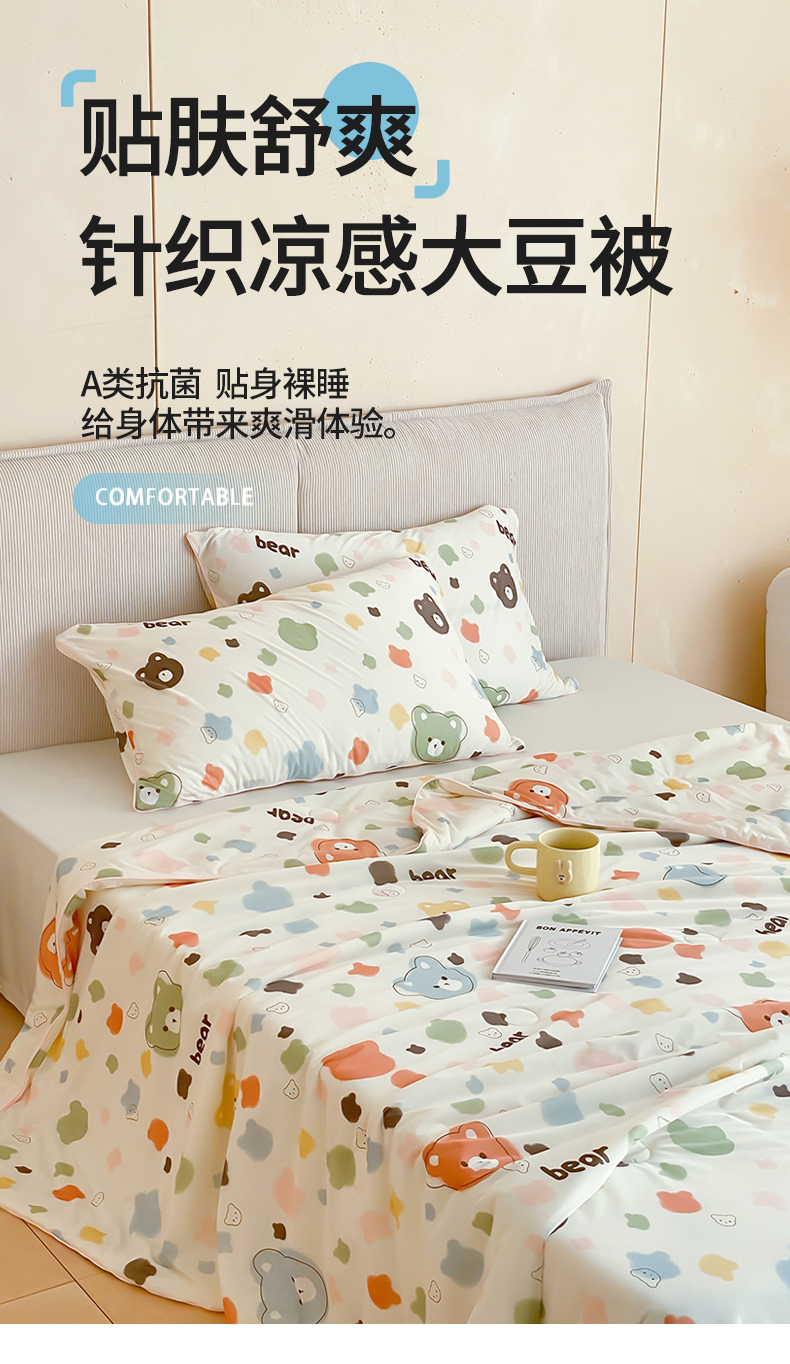 商品名称:头等舱 2025新款针织棉凉感氨纶A类印华大豆抗菌夏被 维尼戴维