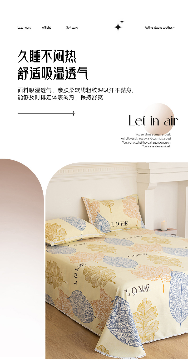 金泰莱 2025新款花边款老粗布凉席老粗布床单软凉席全棉床单纯棉床单 享受季节