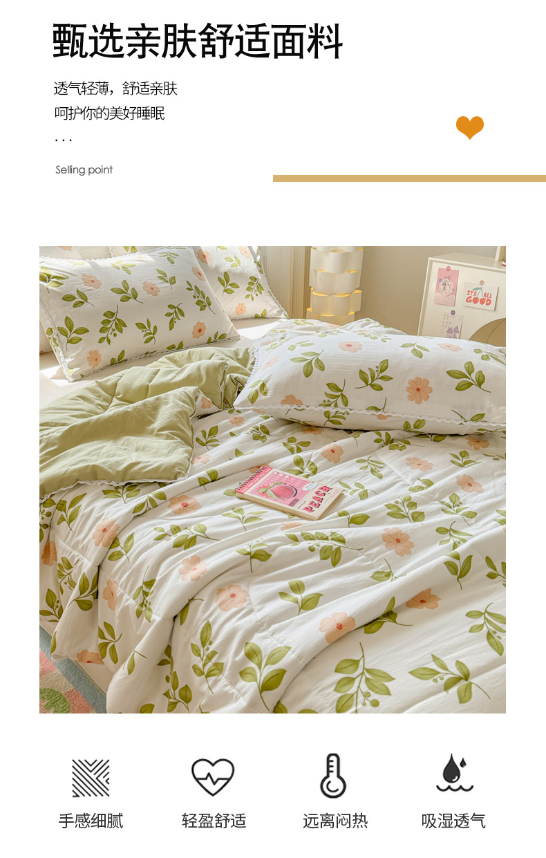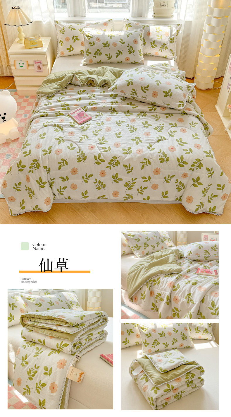 商品名称:慕尚家纺2025新款双层纱水洗夏被子被芯 仙草