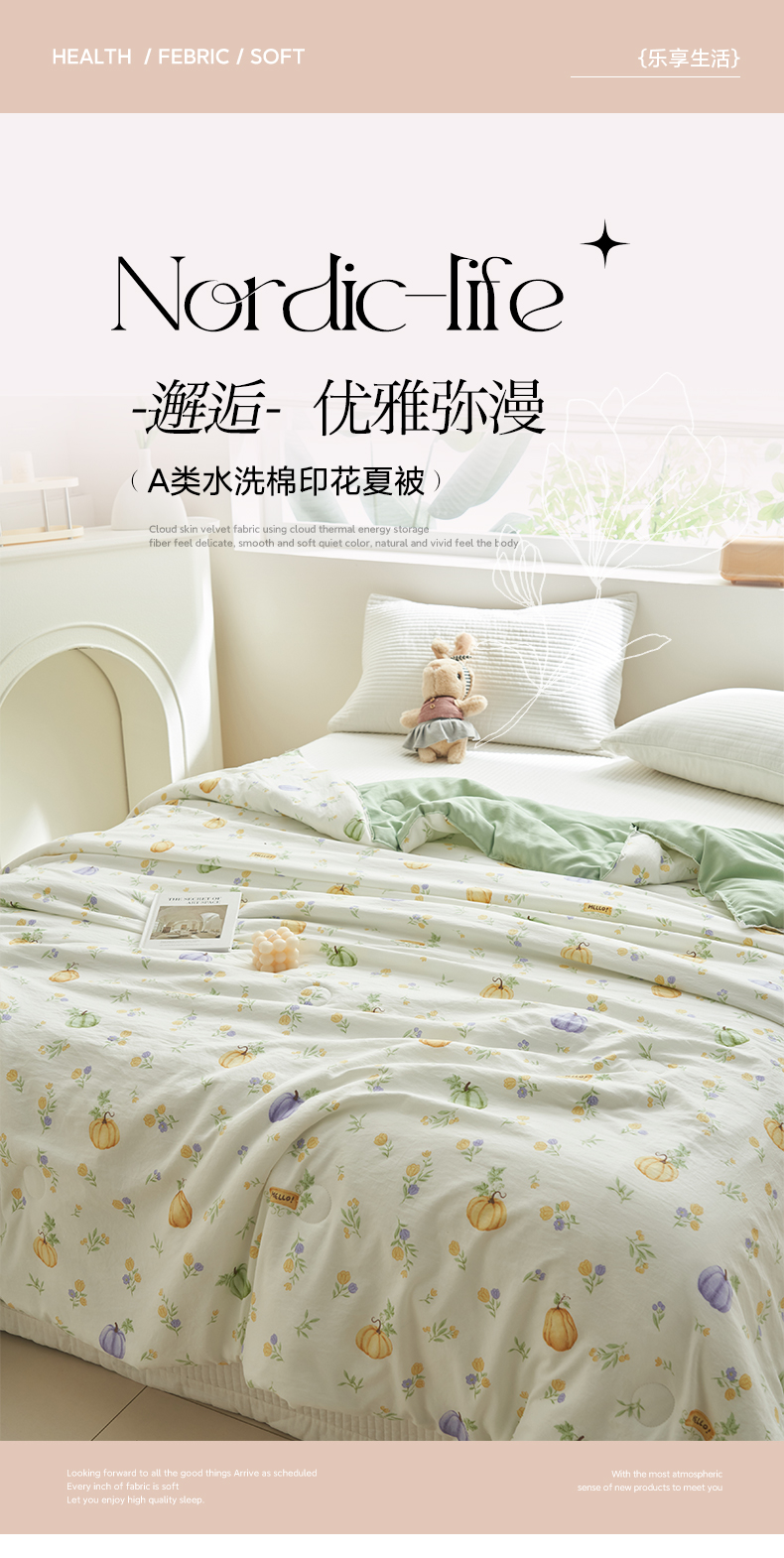 畅销被业 2025新款水洗棉印花夏被夏凉被空调被 多彩小南瓜