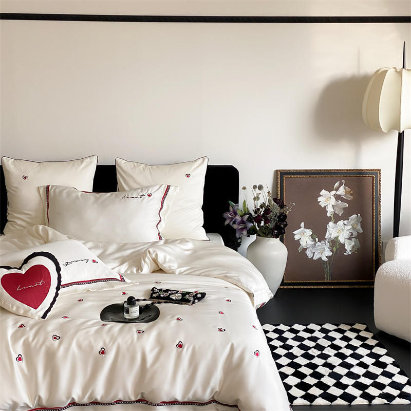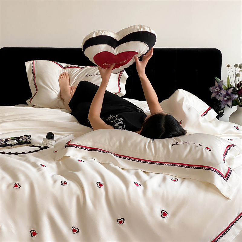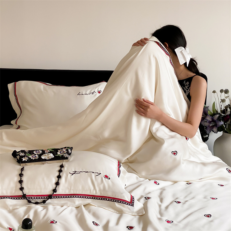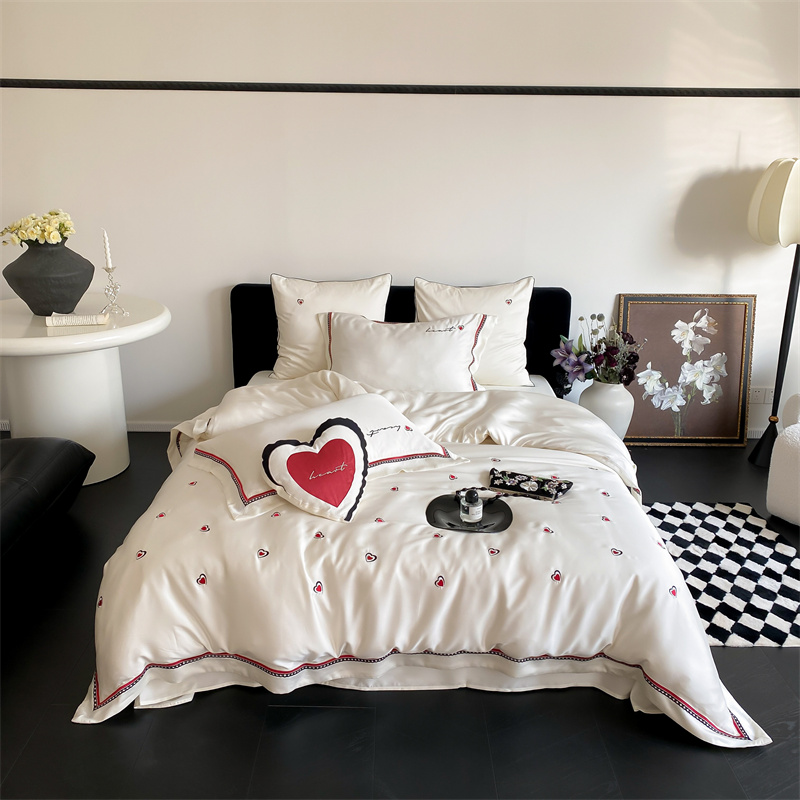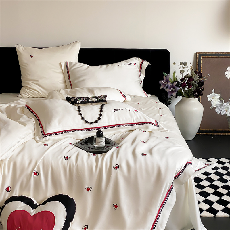 馨蕊 2024新款80支奥地利兰精天丝四件套——天丝小爱心 天丝小爱心-月光白