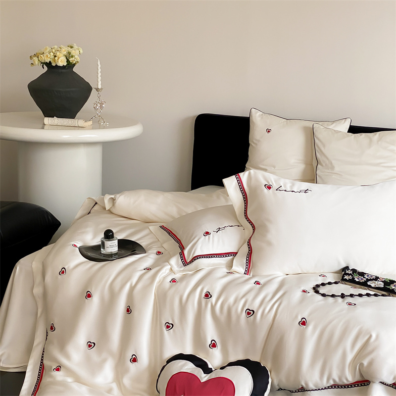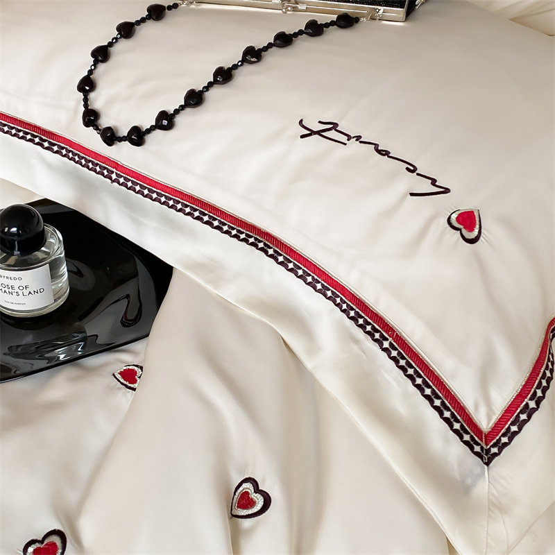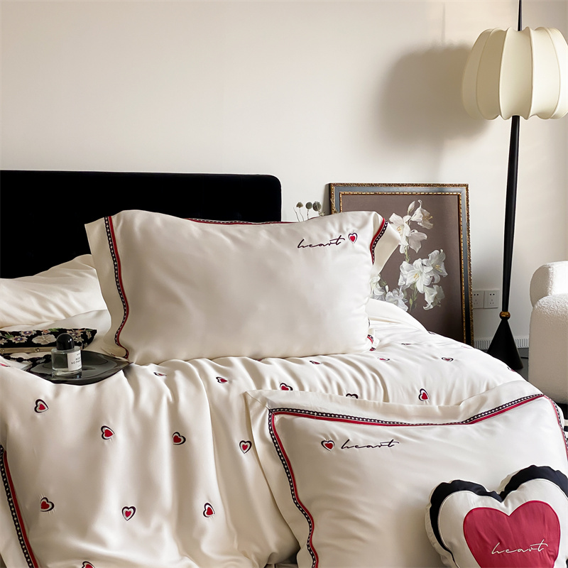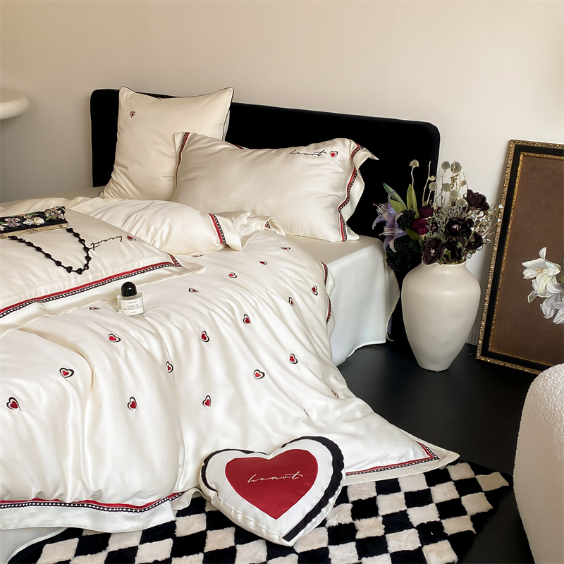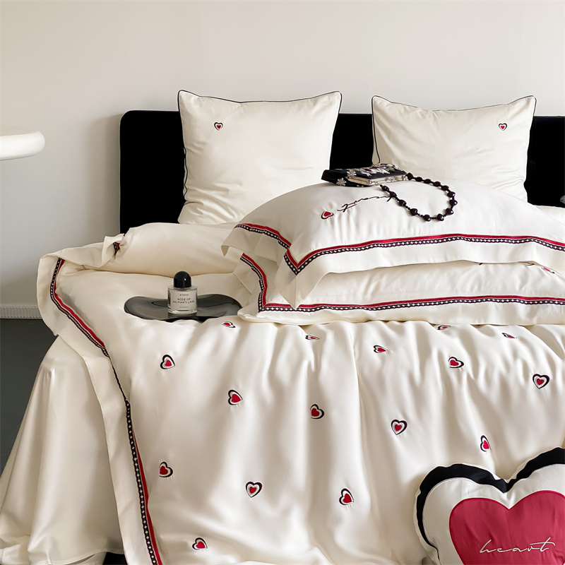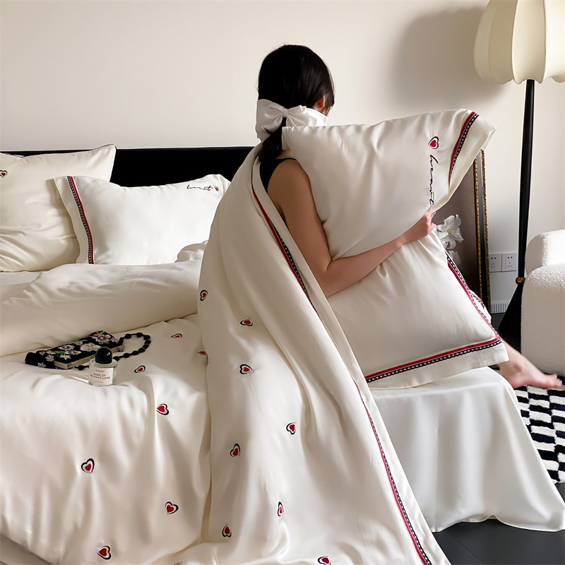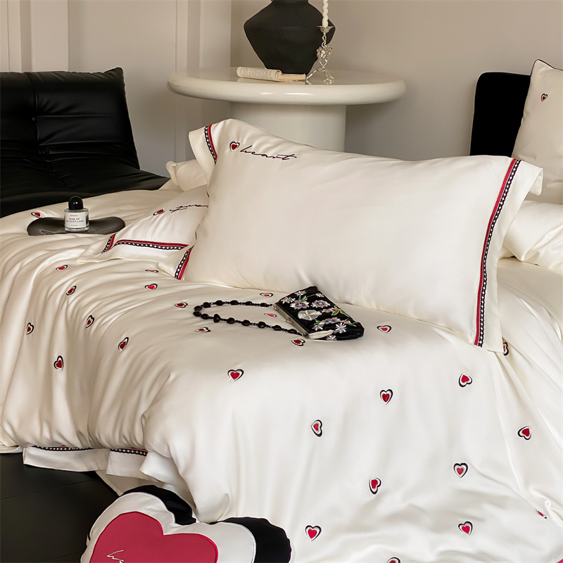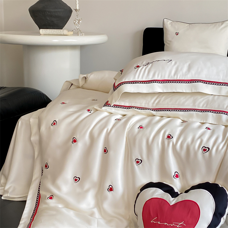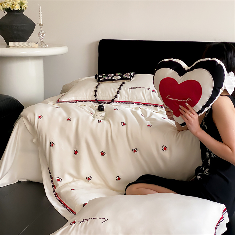 商品名称:馨蕊 2024新款80支奥地利兰精天丝四件套——天丝小爱心 天丝小爱心-月光白