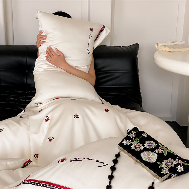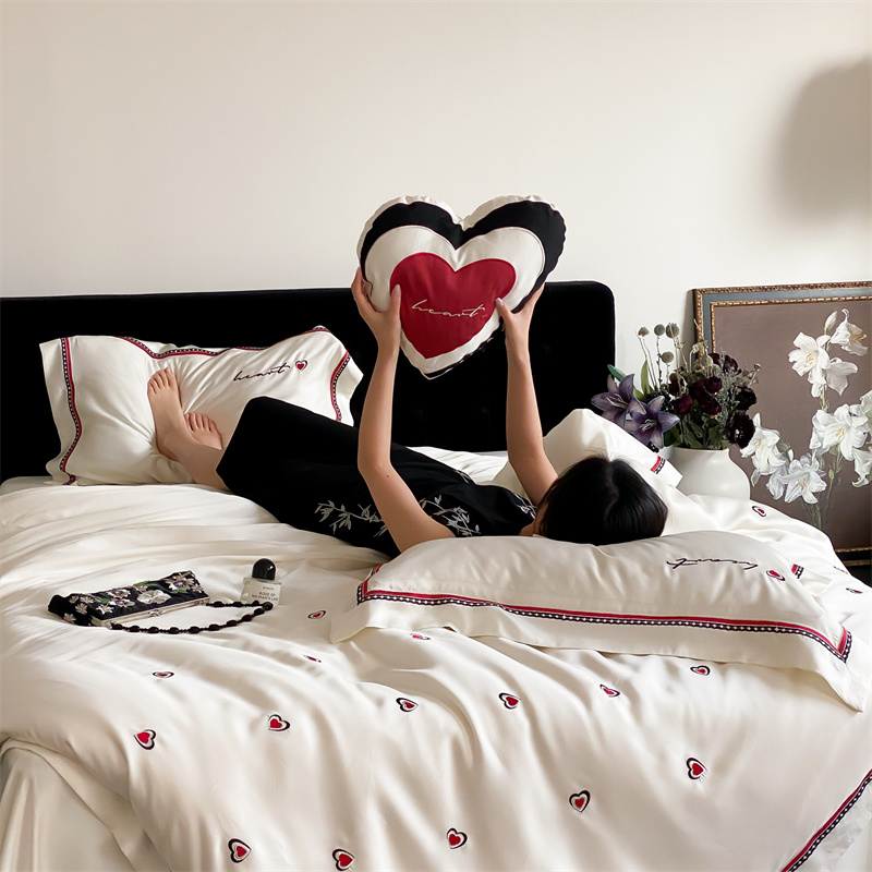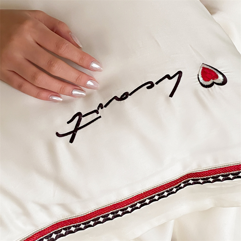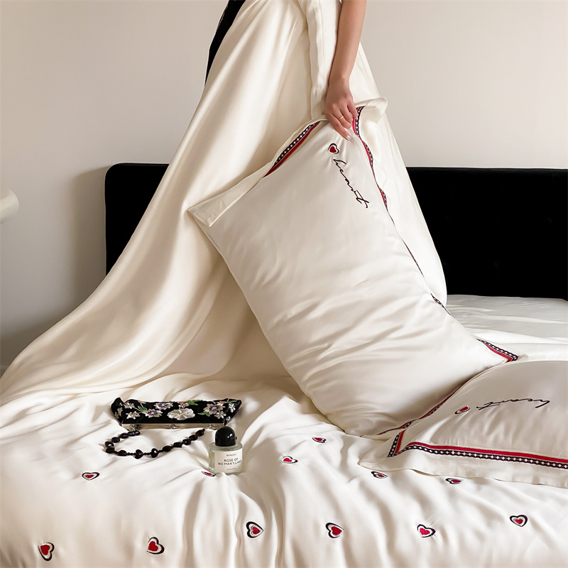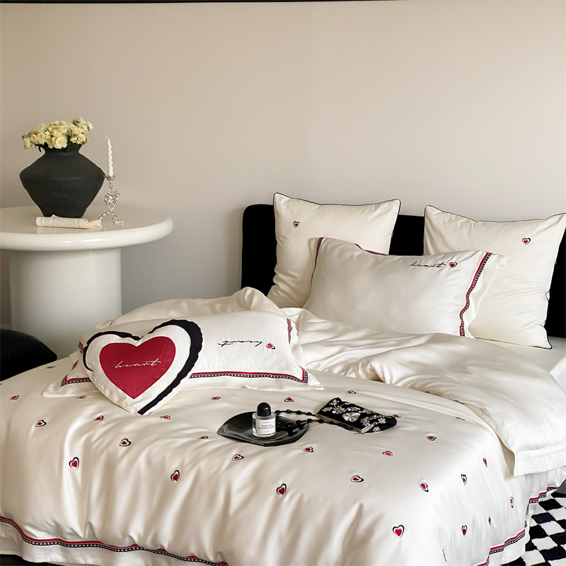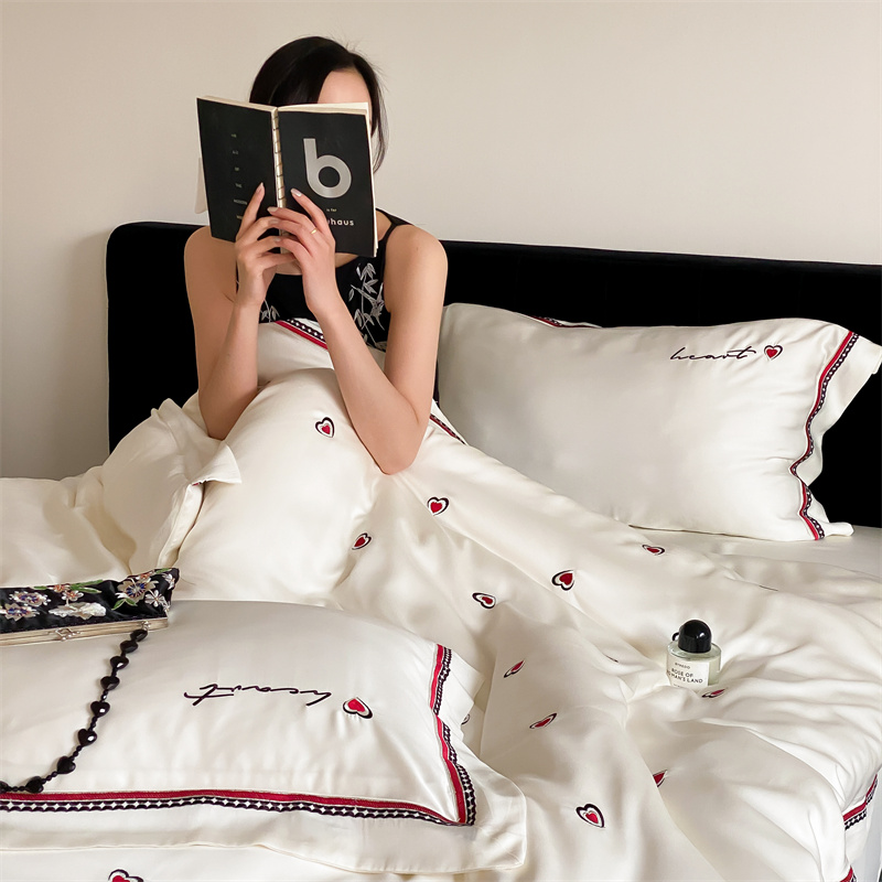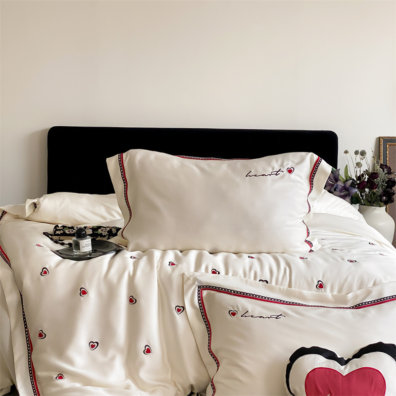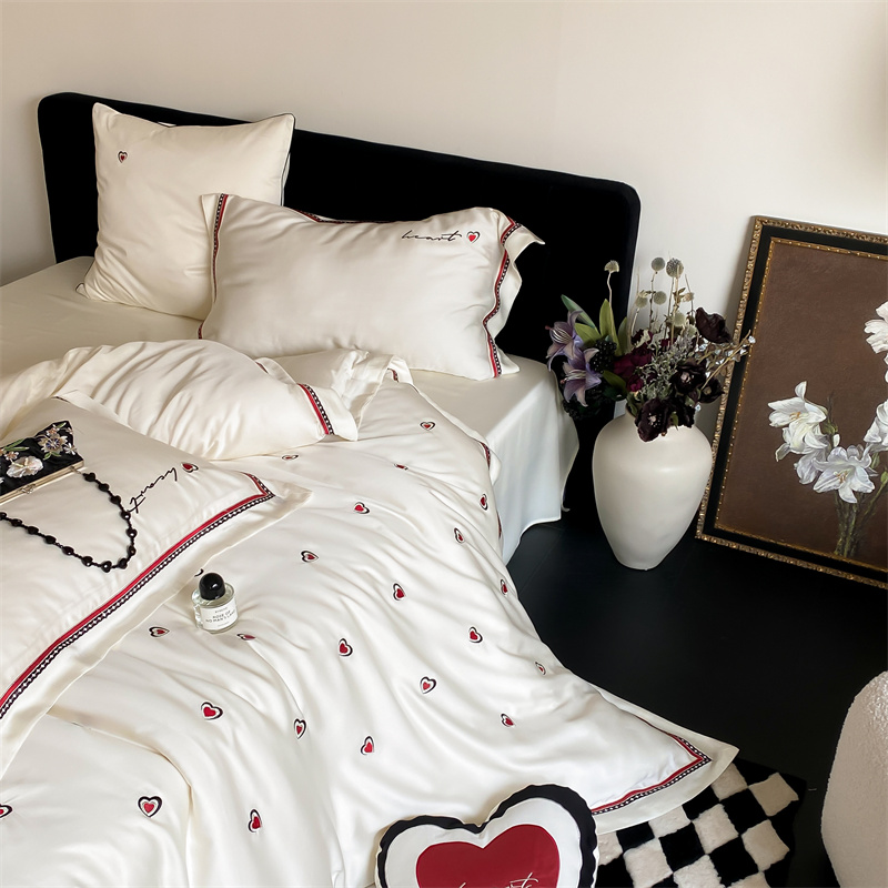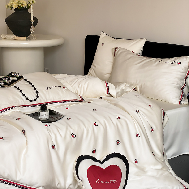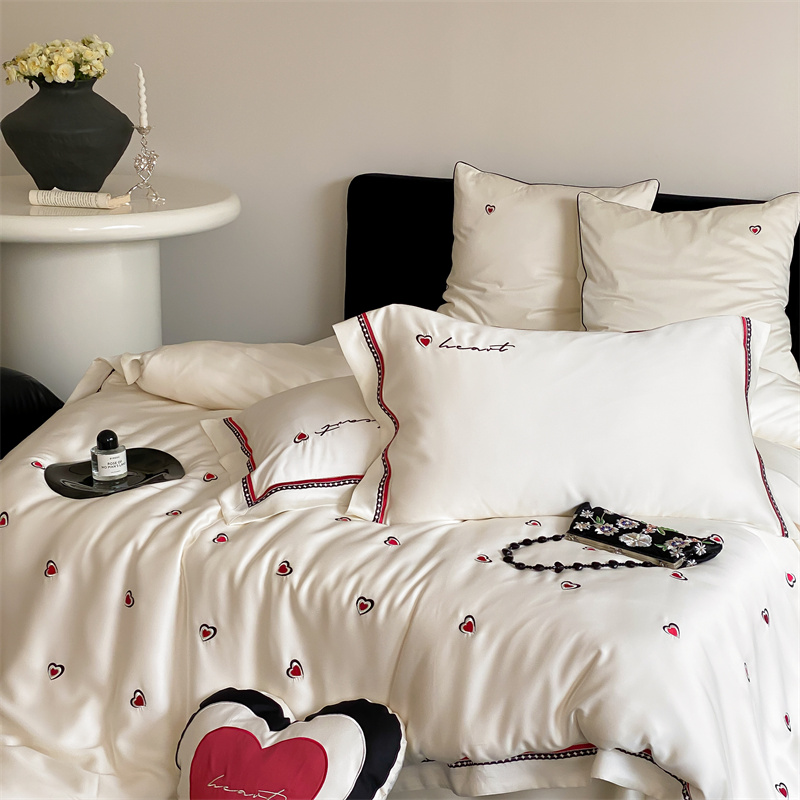 商品名称:馨蕊 2024新款80支奥地利兰精天丝四件套——天丝小爱心 天丝小爱心-月光白