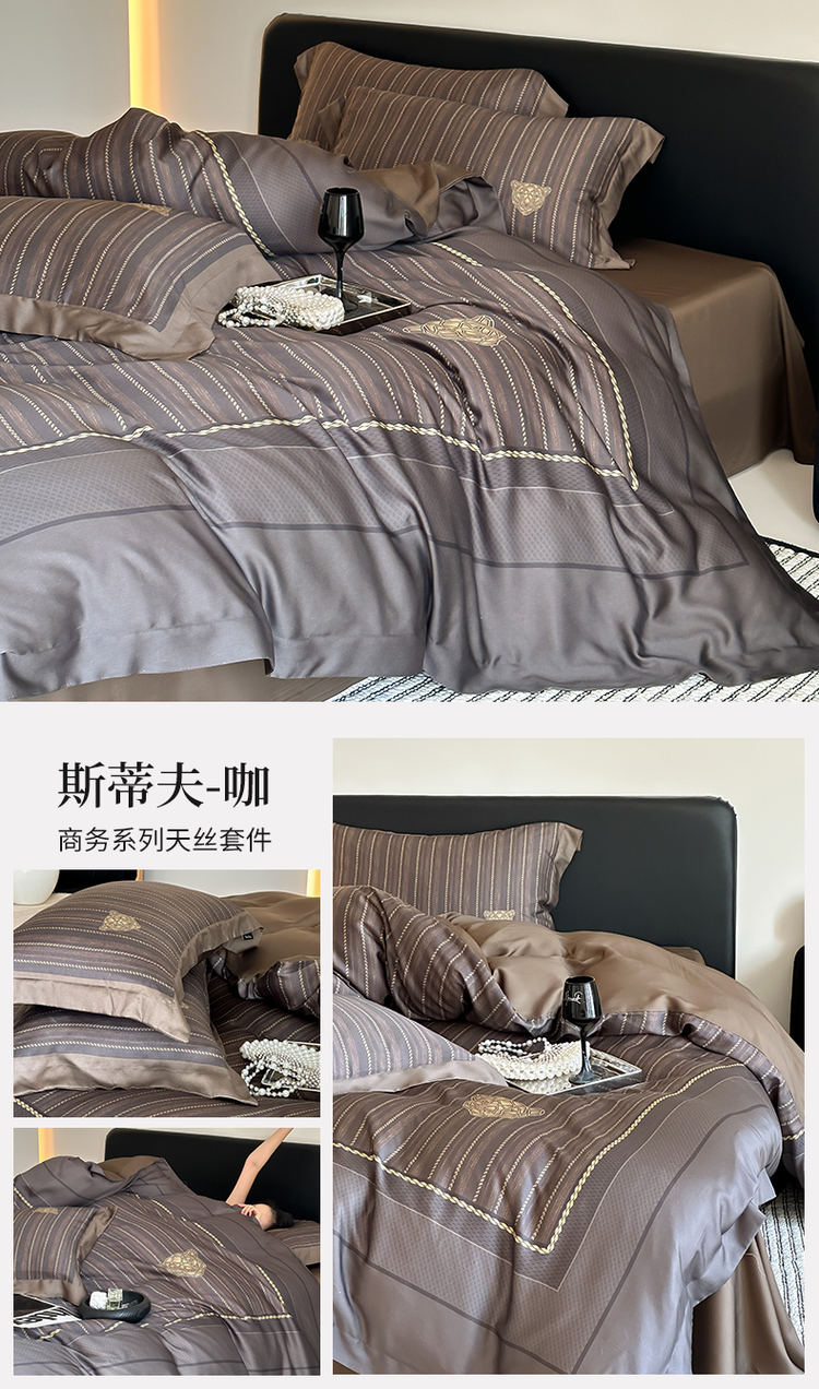 优悦生活馆 2024新款天丝宽边拼角四件套-商务系列 斯蒂夫-咖