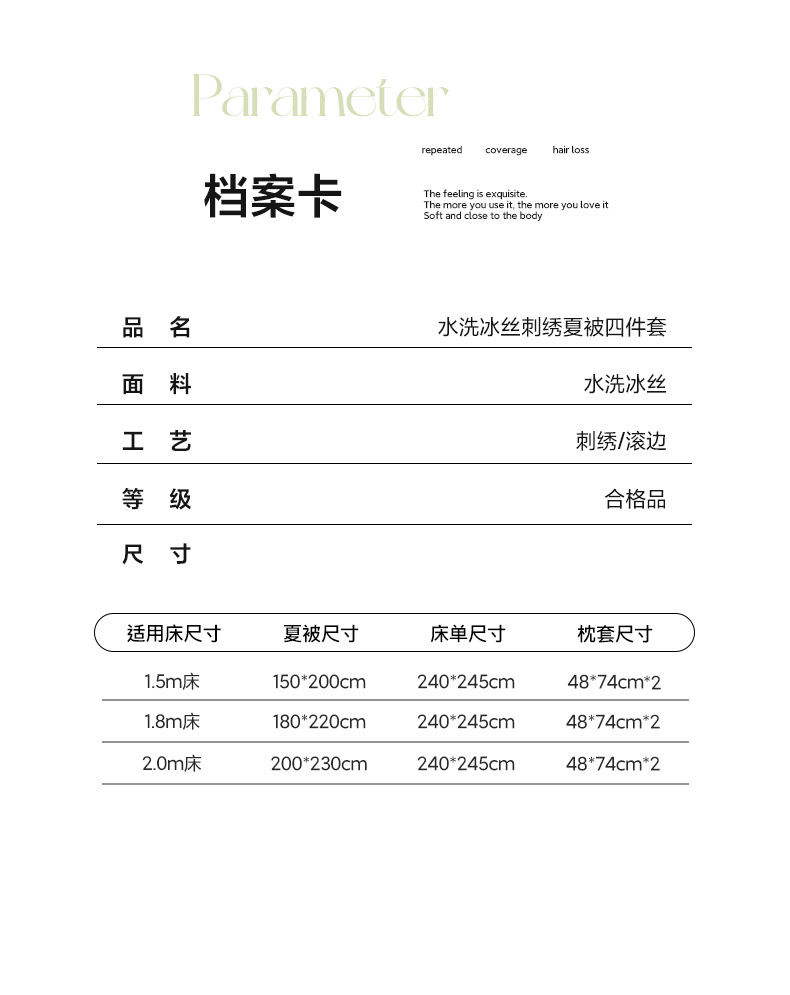 1.8x2.2m夏被四件套 | ¥70.00 |