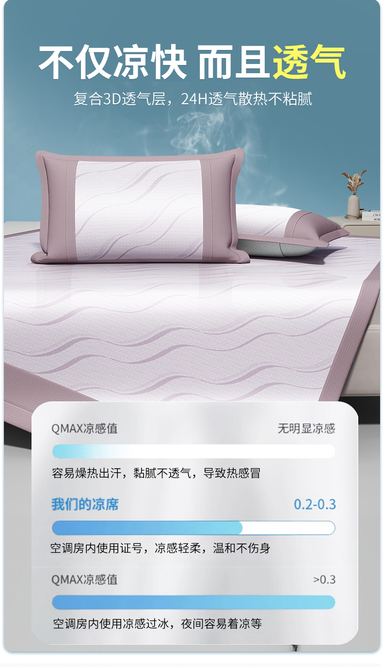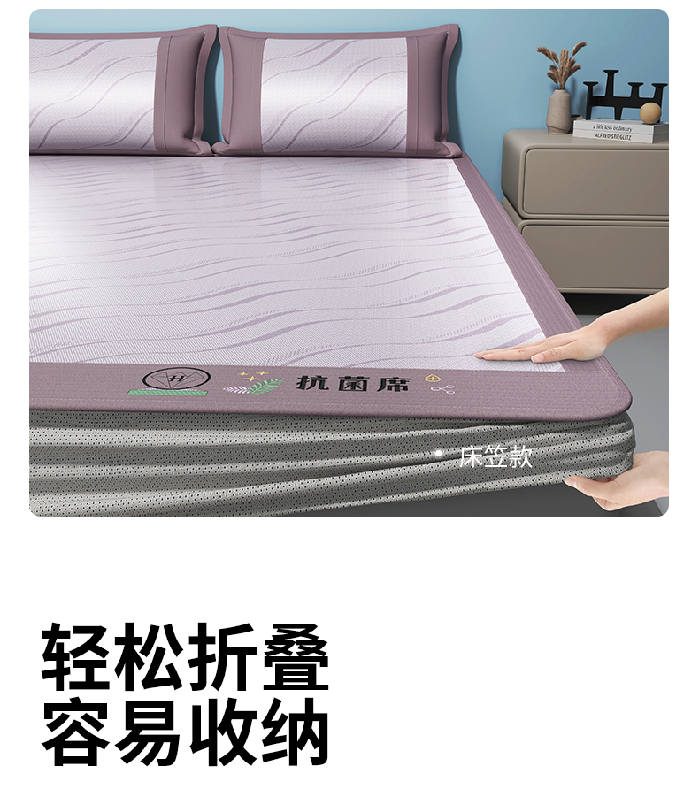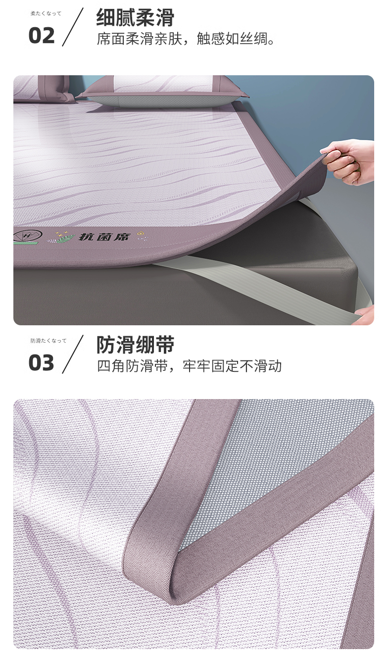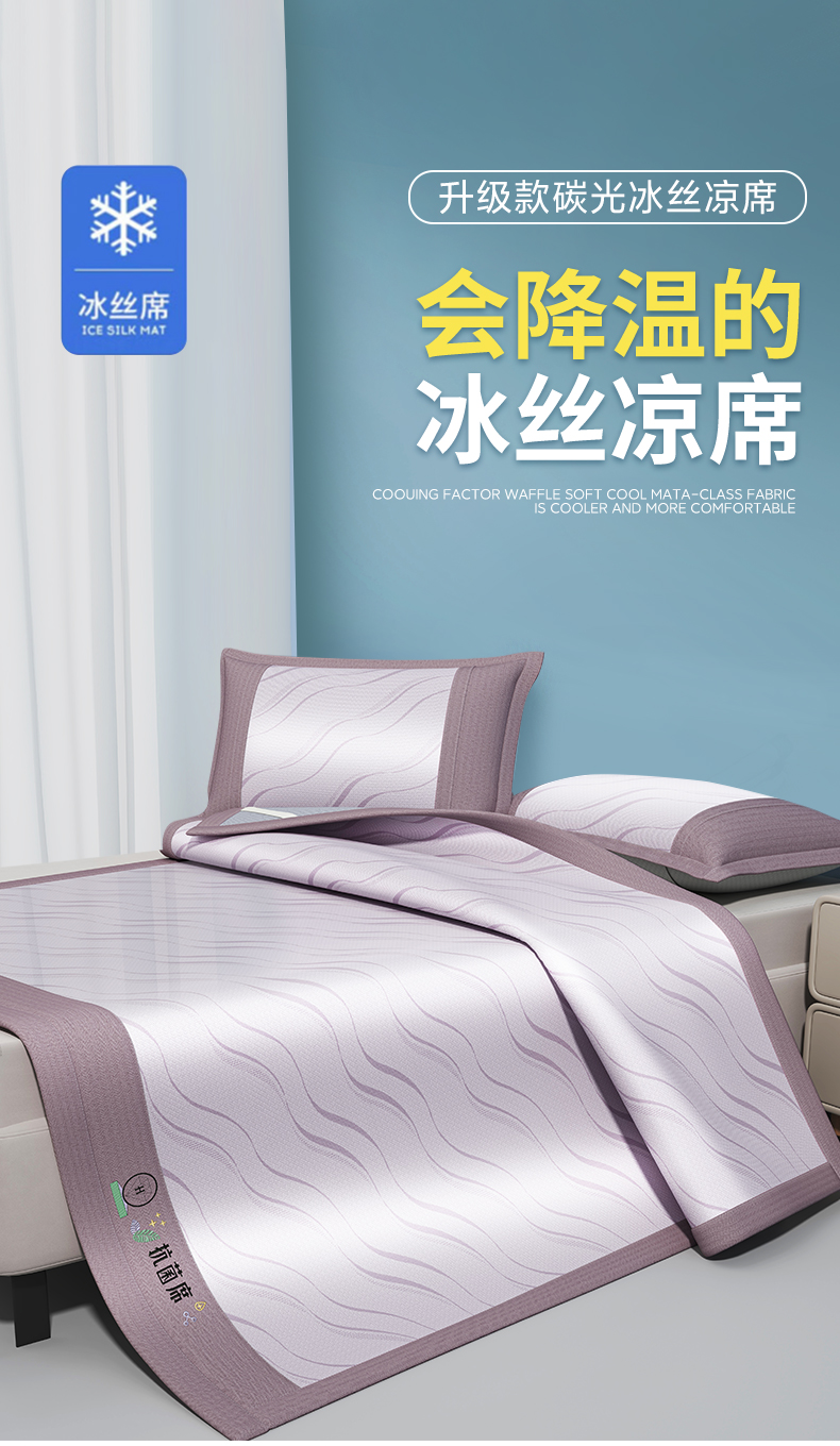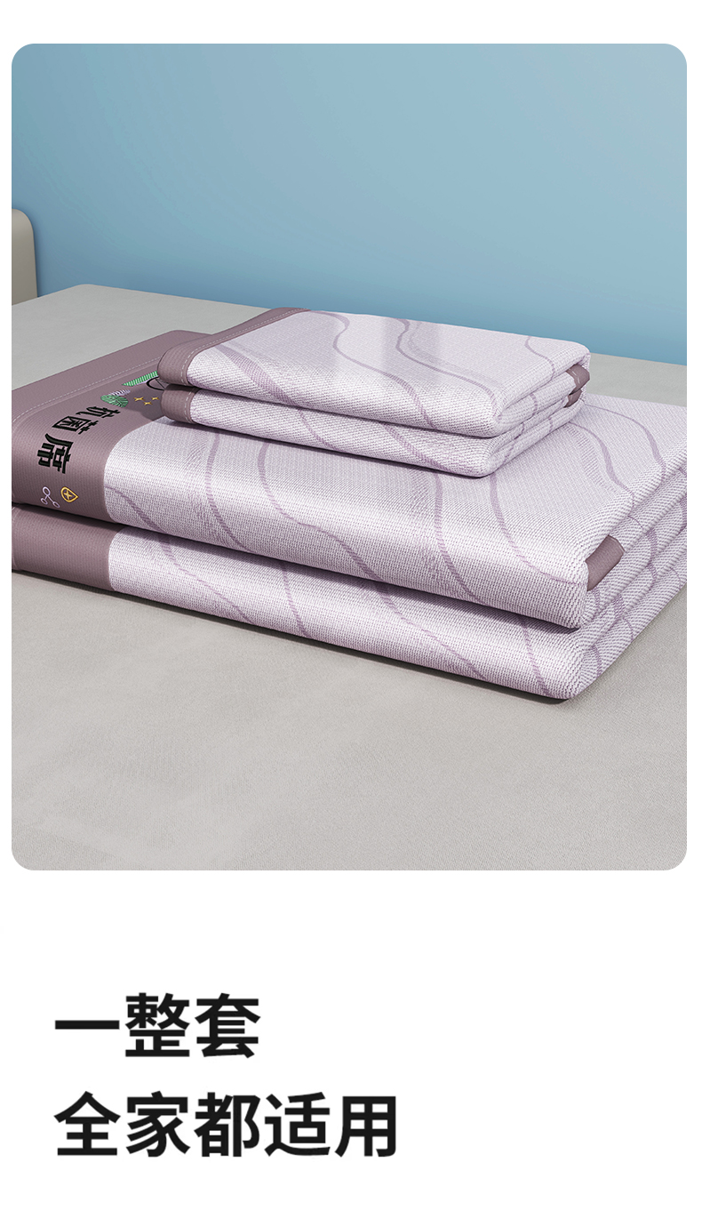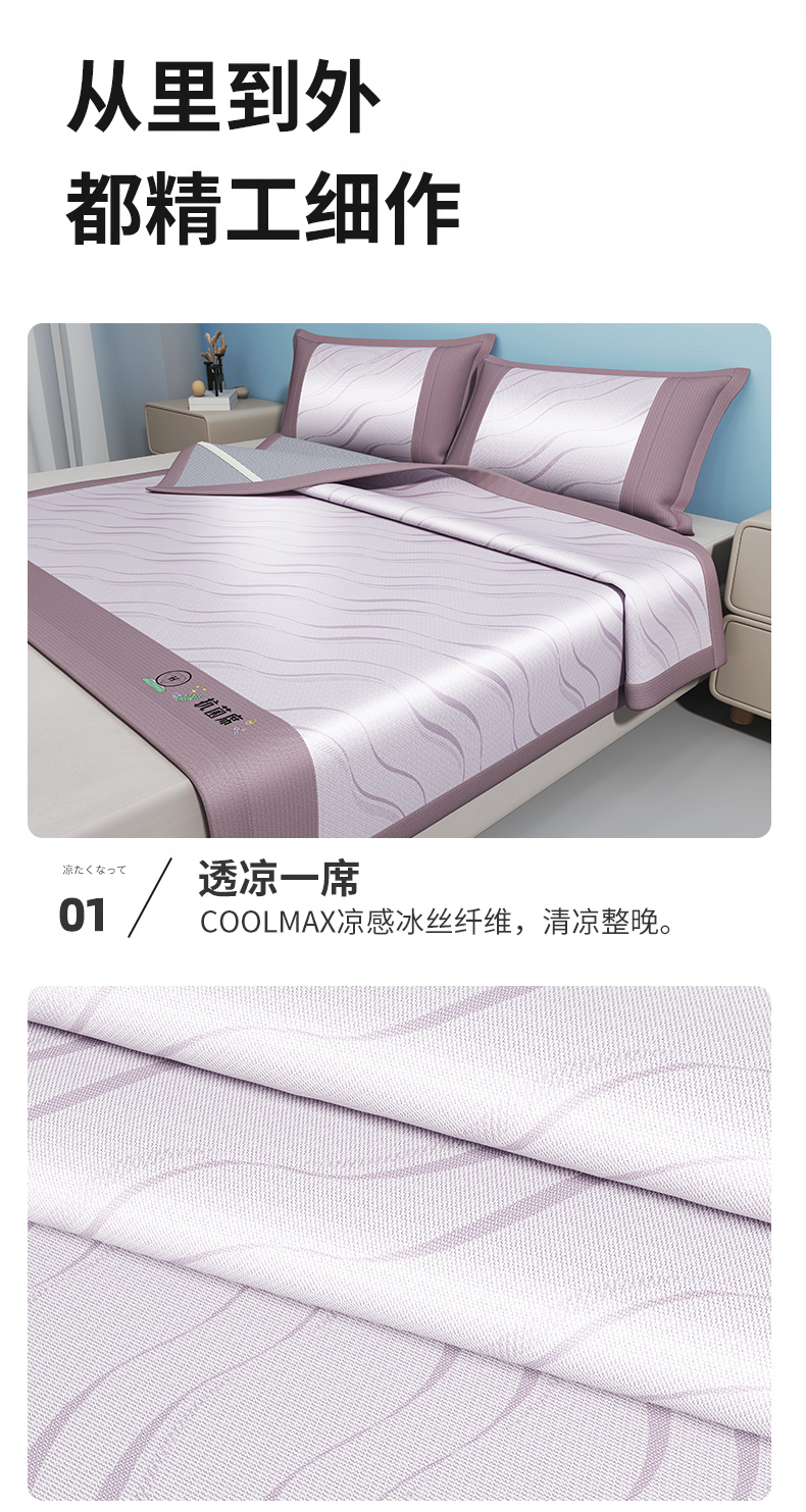 • 91家纺网 家纺一手货源 找家纺 yyds网供 2024新款艾草抗菌冰丝席软席碳光席三件套  艾草抗菌冰丝-紫