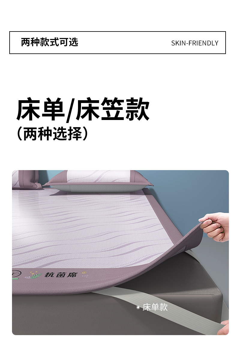 yyds网供 2024新款艾草抗菌冰丝席软席碳光席三件套 艾草抗菌冰丝-紫