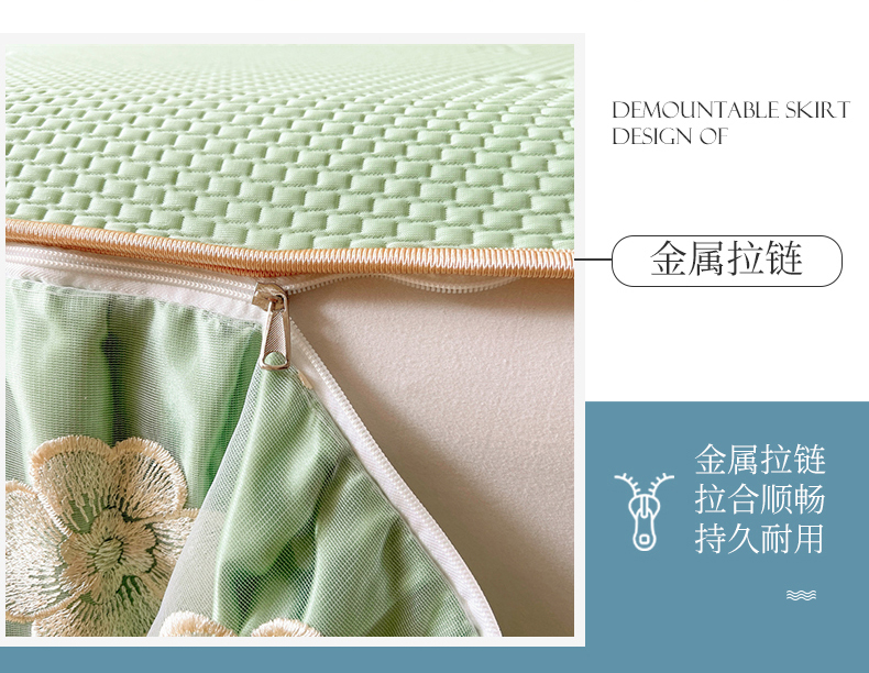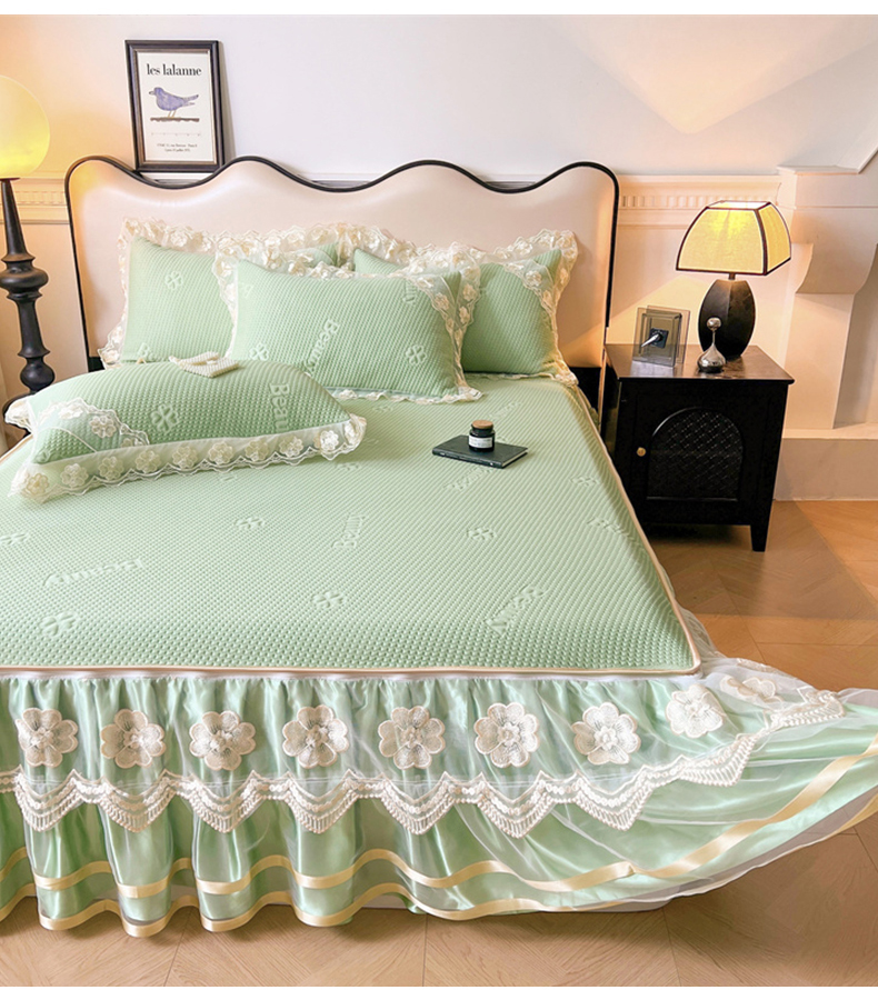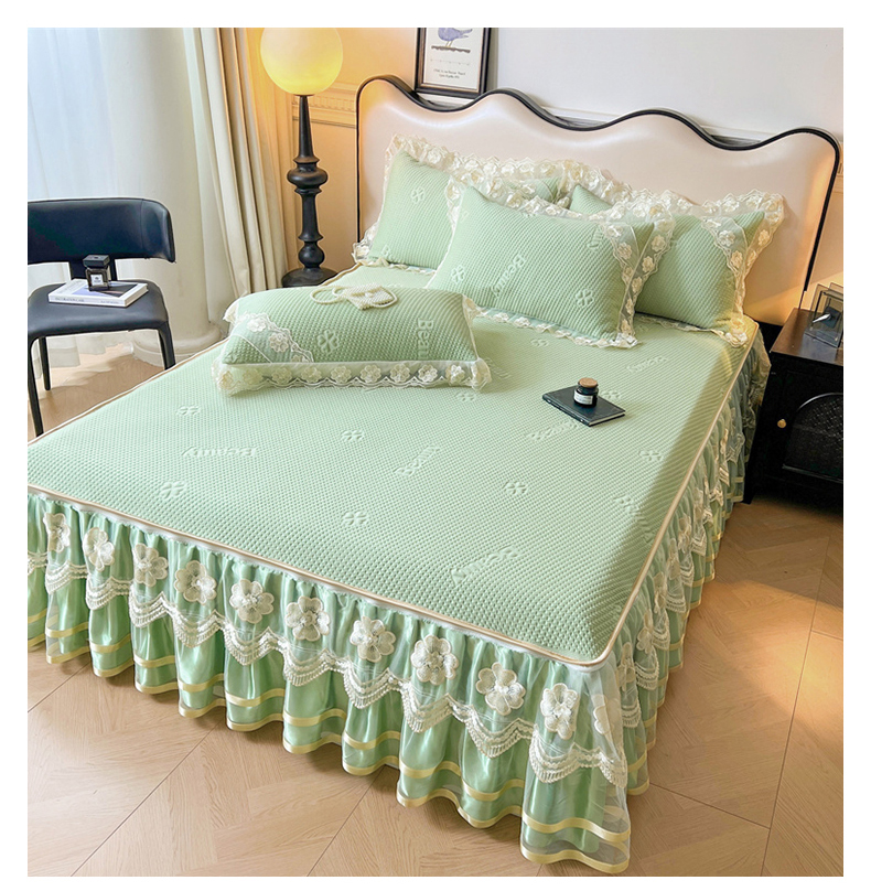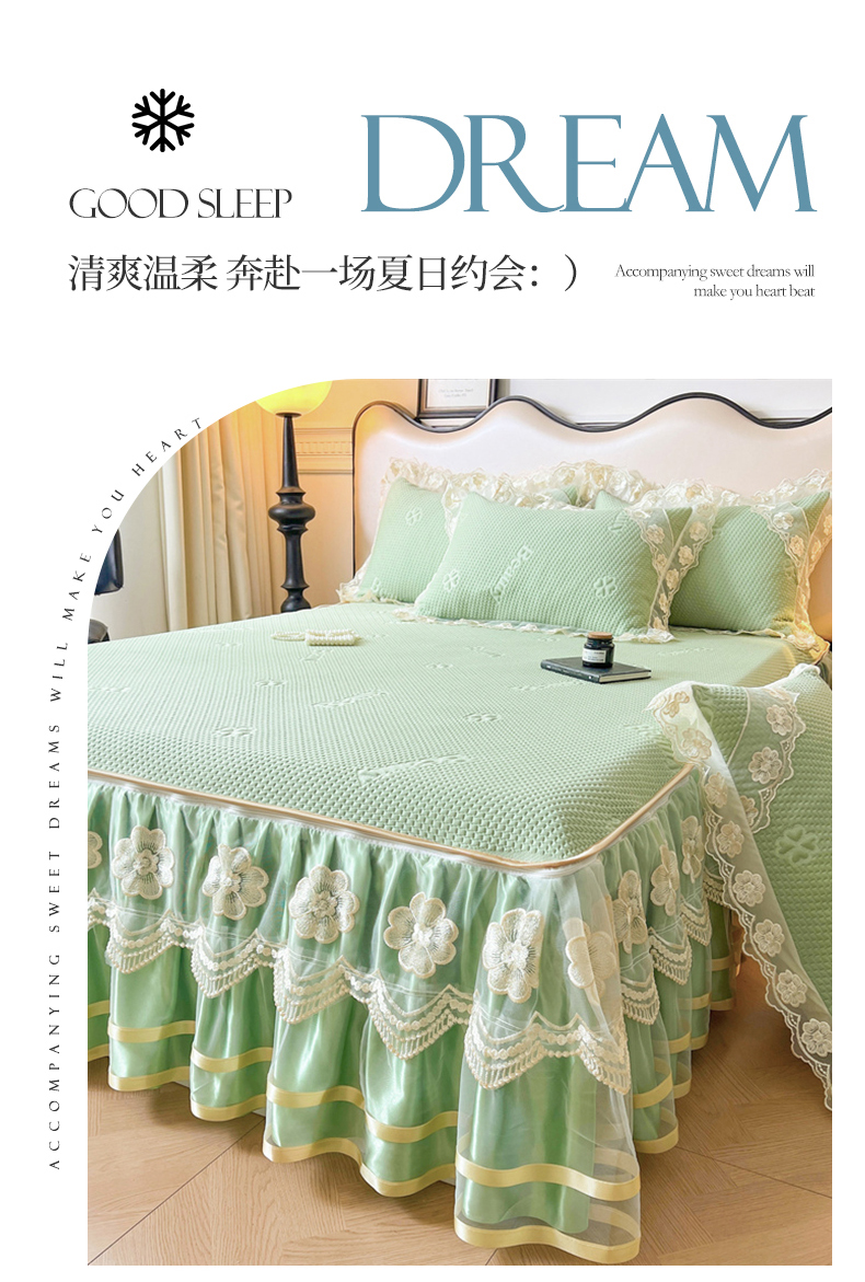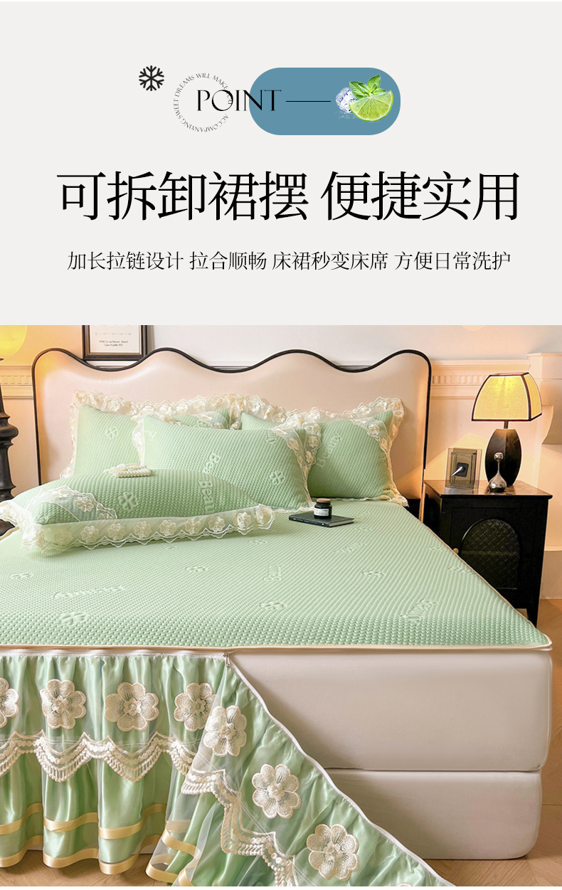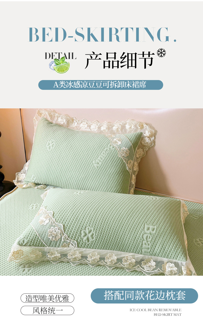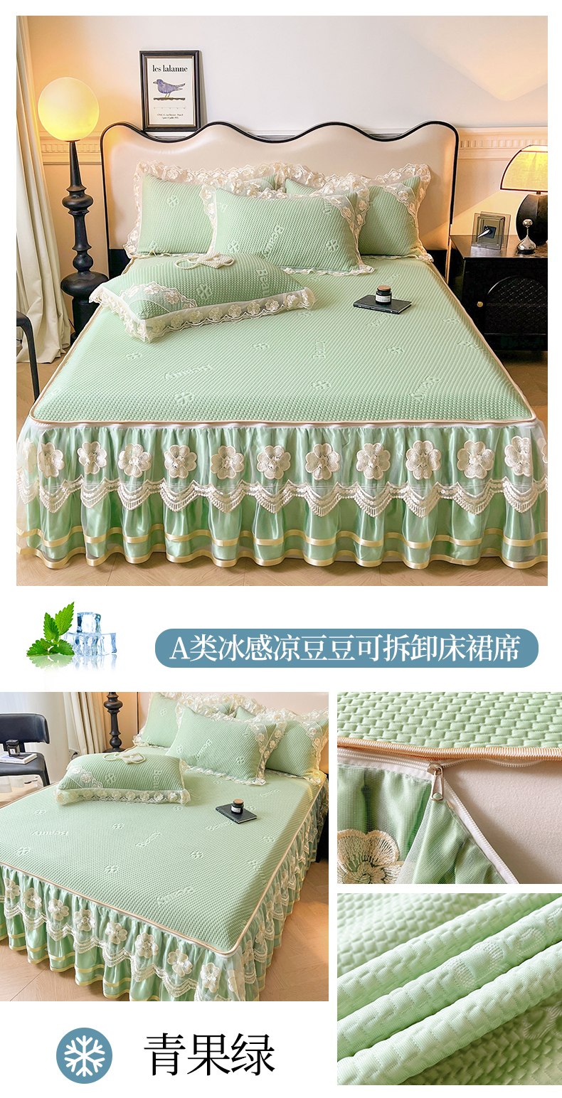 虹星家纺 2024新款A类冰感凉豆豆可拆卸床裙席三件套 青果绿