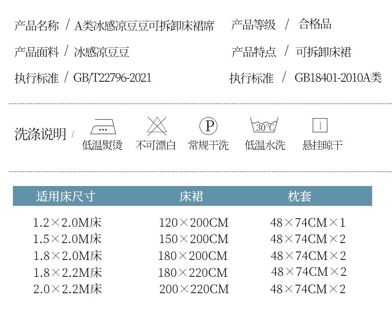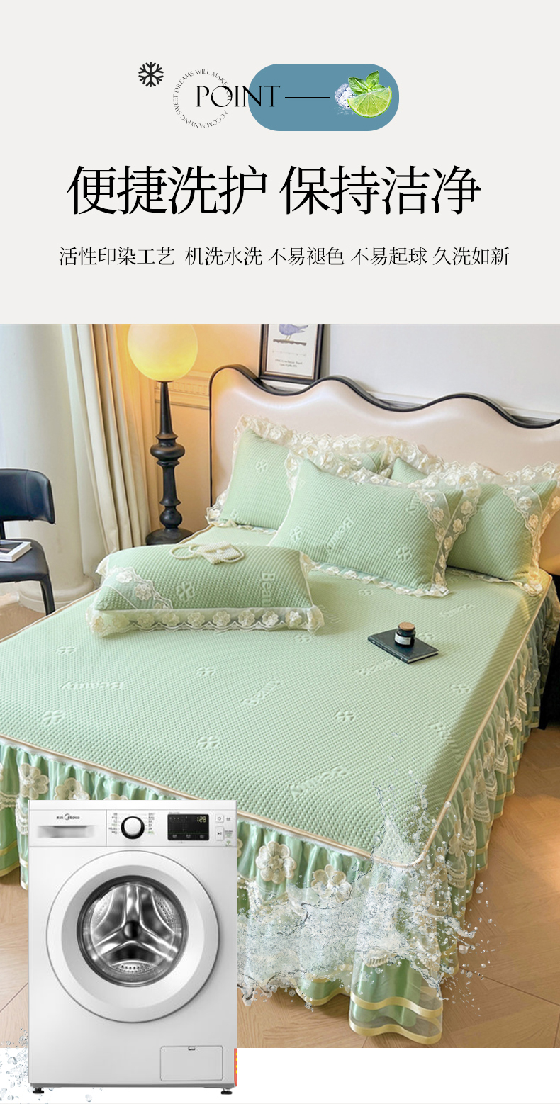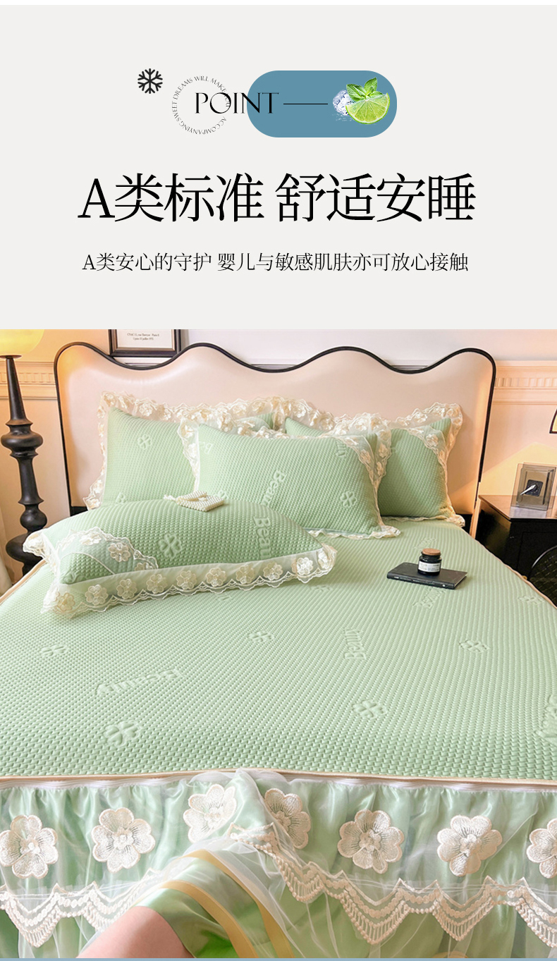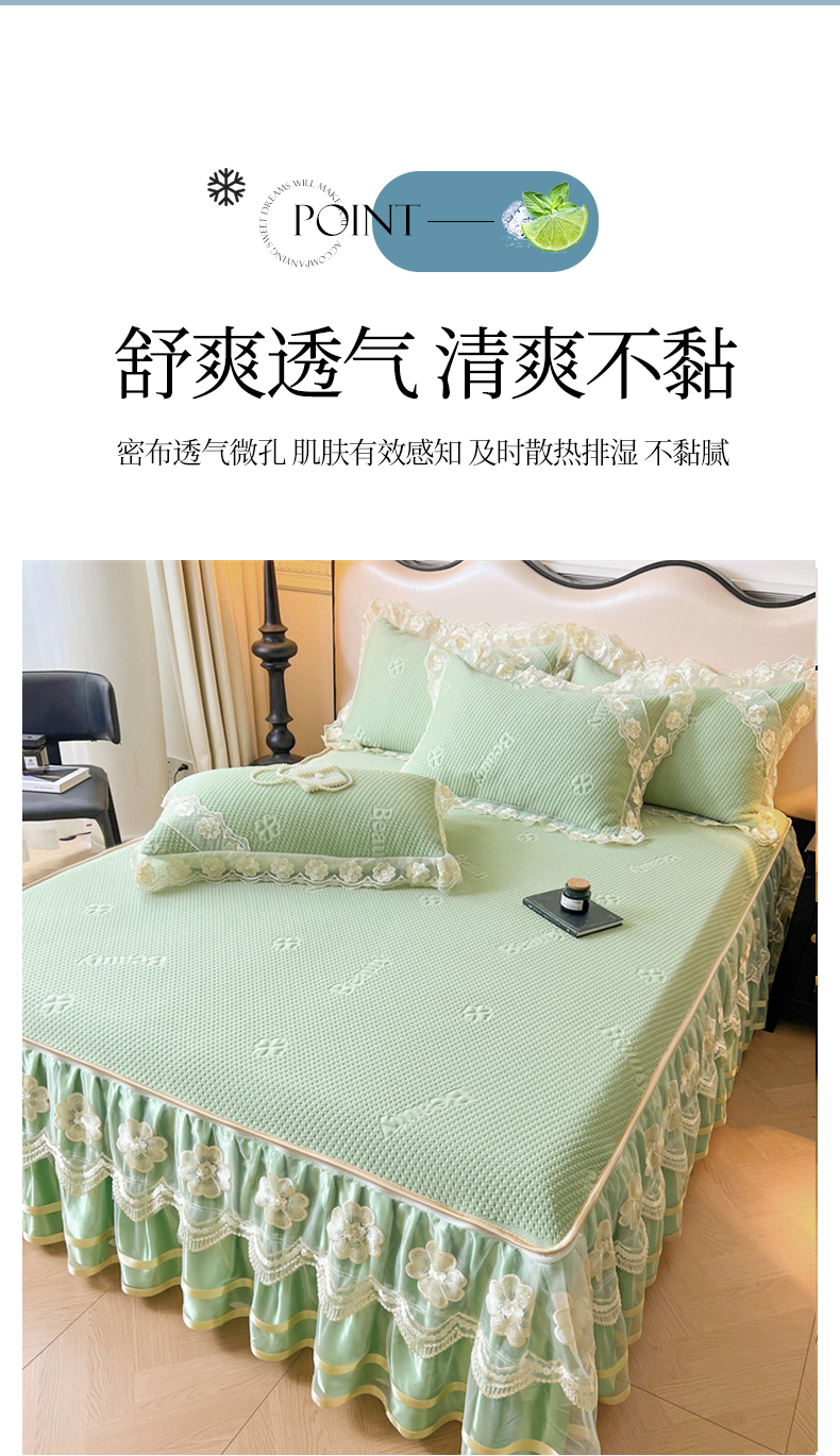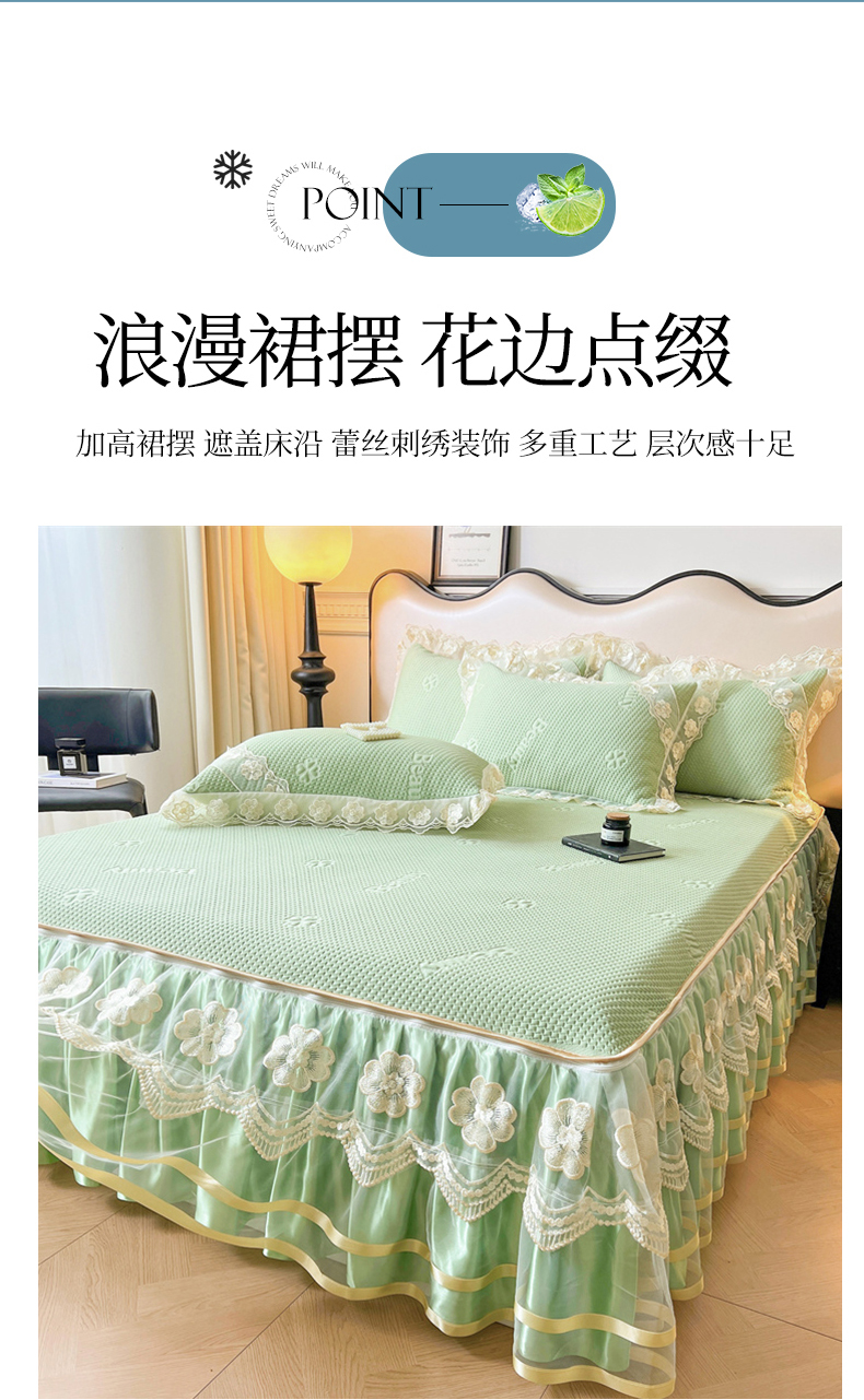 (总)虹星家纺 2025新款A类冰感凉豆豆床裙席三件套-素夏,素夏-抹茶绿,素夏-蜜桃粉,素夏-青果绿,素夏-天空蓝,素夏-月光灰