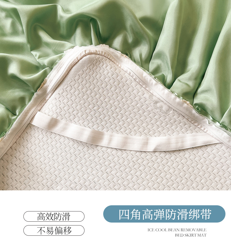 商品名称:虹星家纺 2024新款A类冰感凉豆豆可拆卸床裙席三件套 青果绿