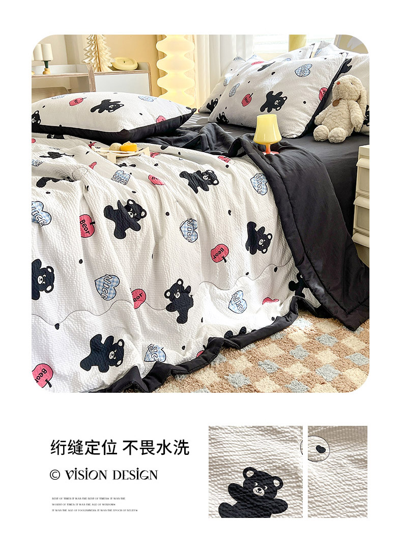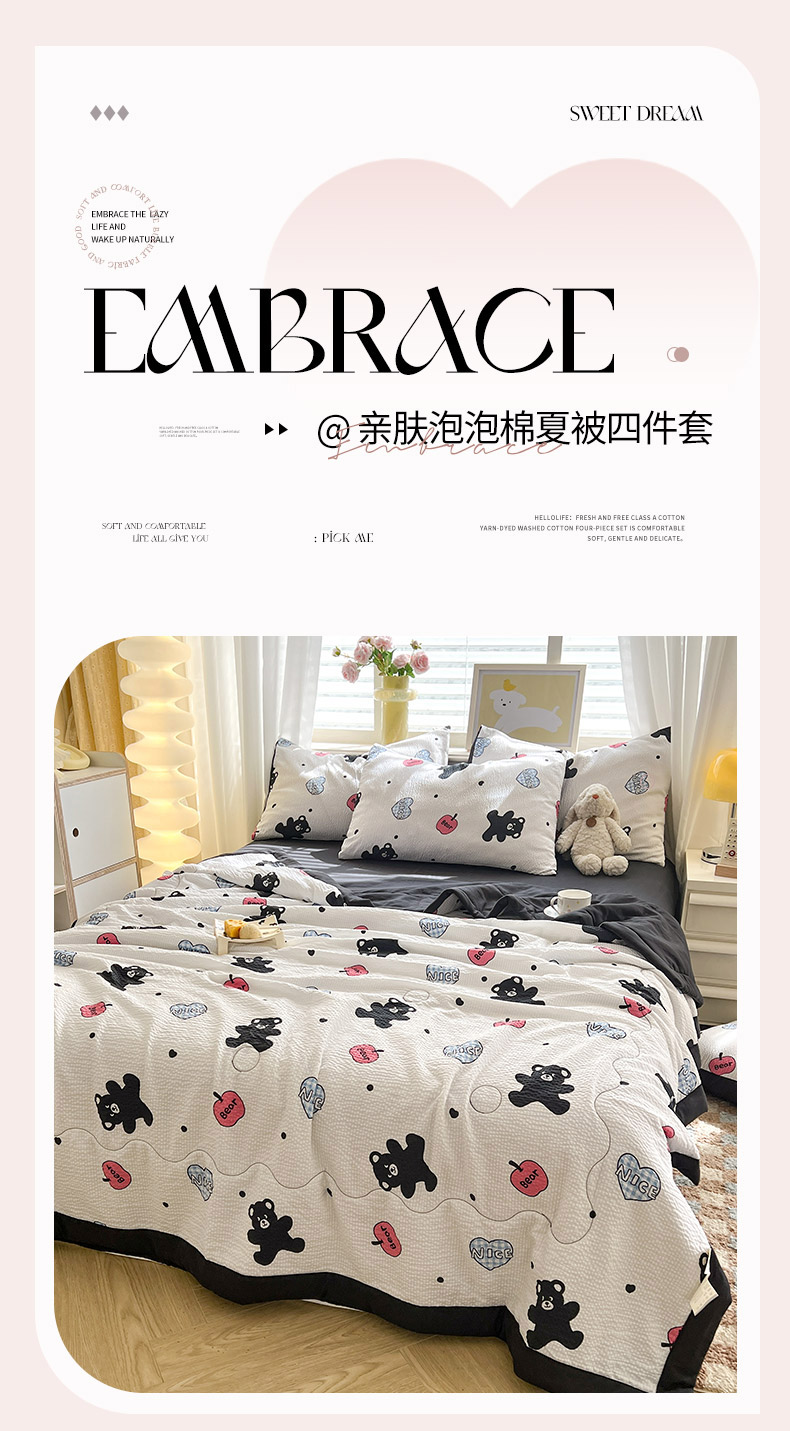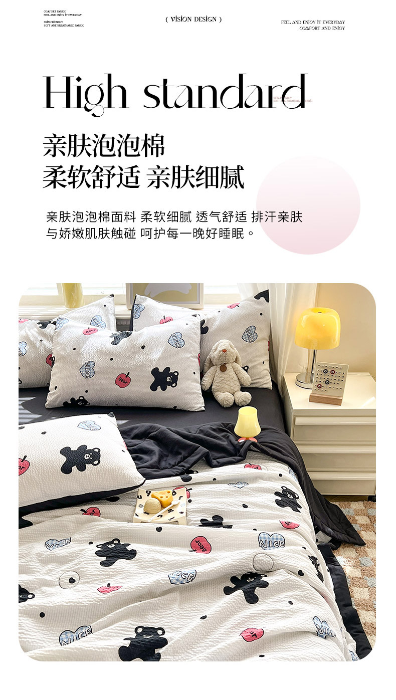 妖妖家纺 2024新款有氧水洗泡泡棉印花四套泡芙棉夏被四件套 俏皮熊