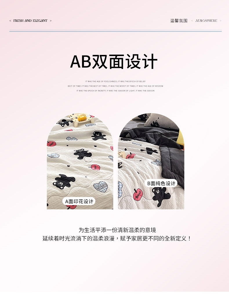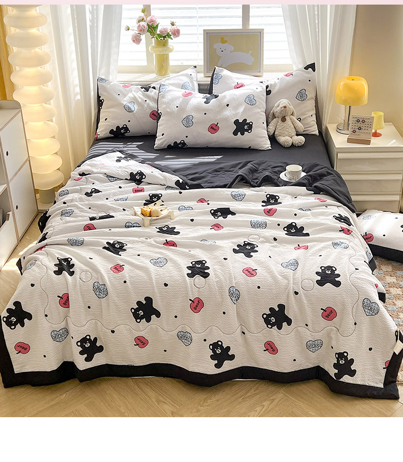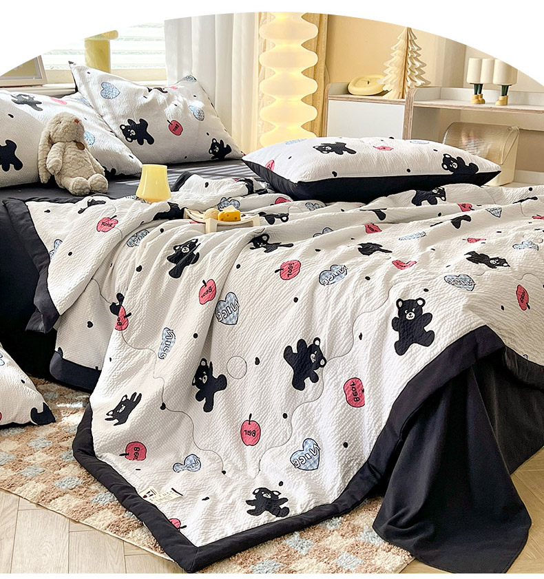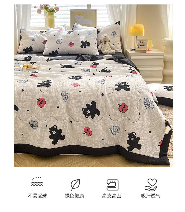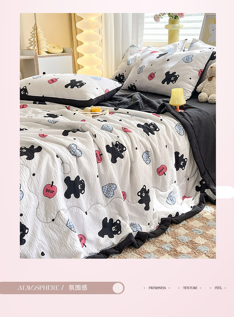 妖妖家纺 2024新款有氧水洗泡泡棉印花四套泡芙棉夏被四件套 俏皮熊