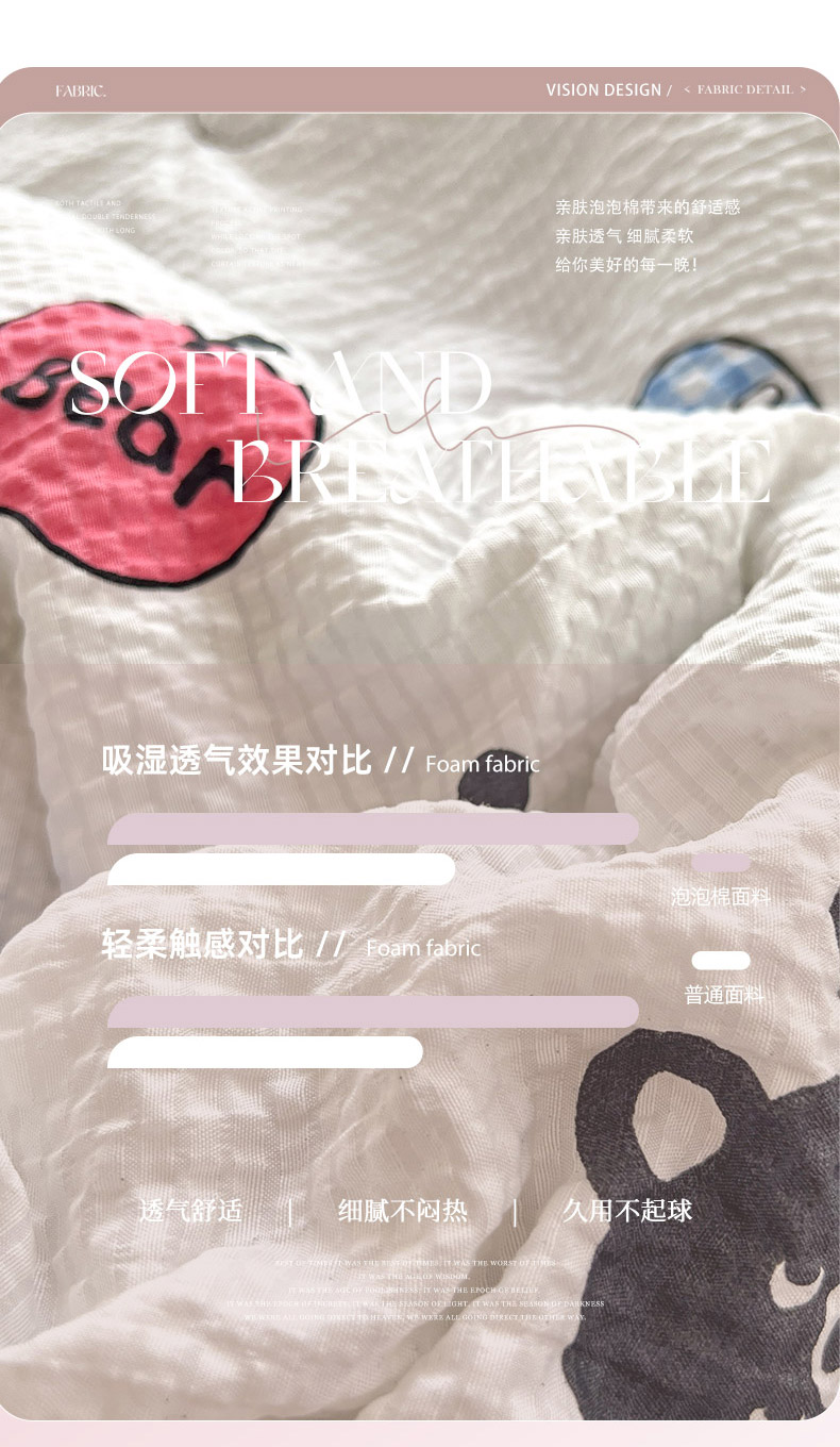 商品名称:妖妖家纺 2024新款有氧水洗泡泡棉印花四套泡芙棉夏被四件套 俏皮熊