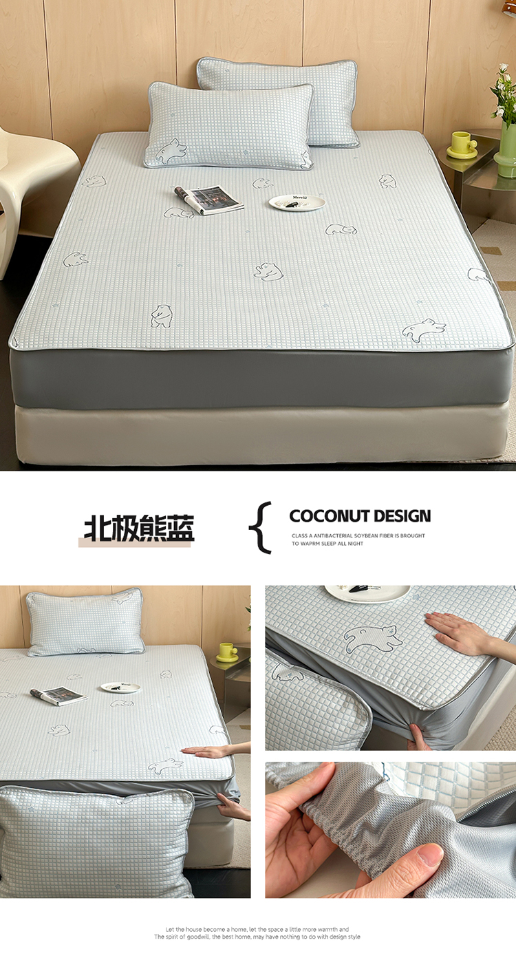 顾里家纺 新款冰豆豆立体提花软席床笠款 北极熊蓝