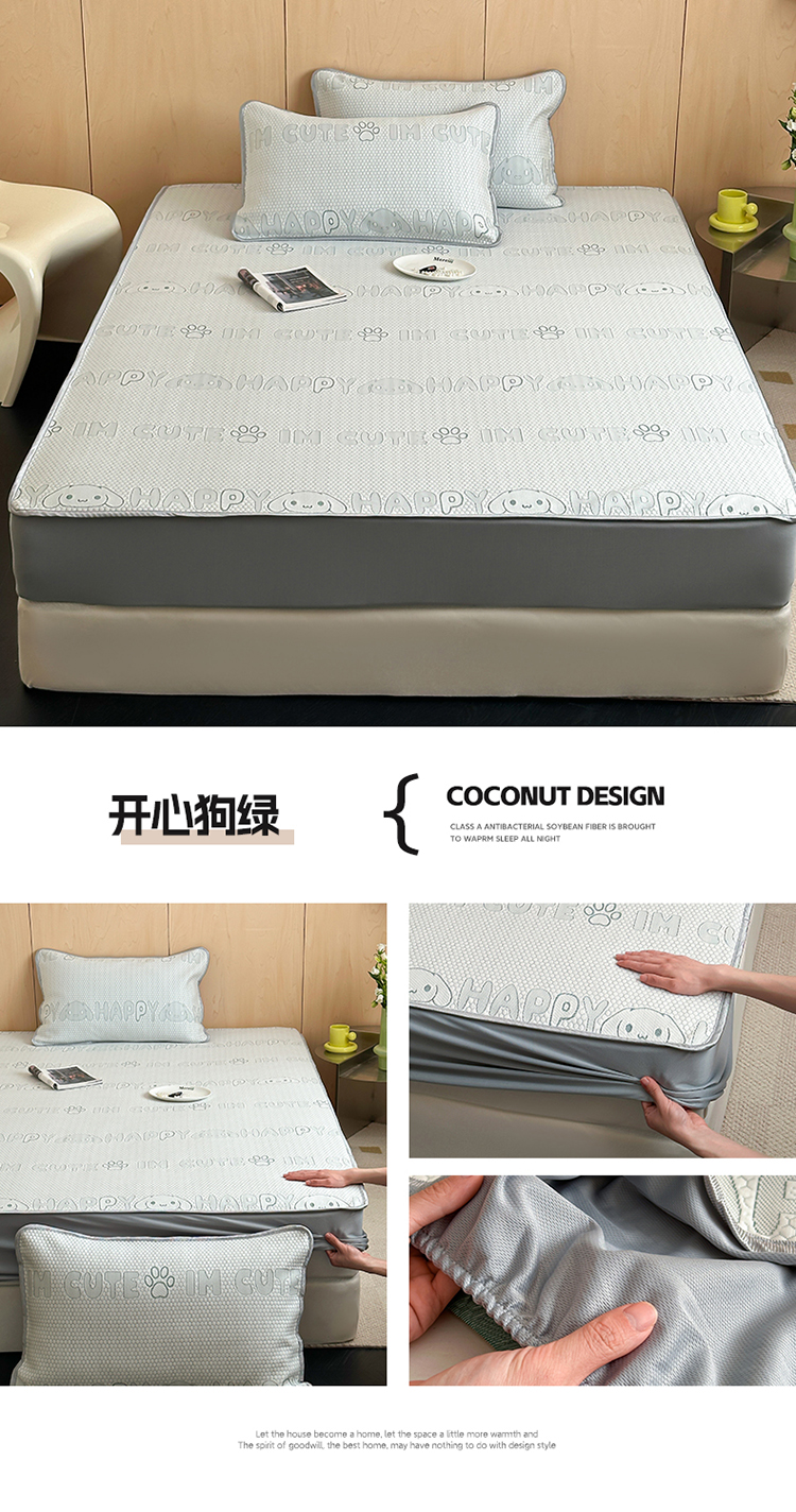 顾里家纺 新款冰豆豆立体提花软席床笠款 开心狗绿