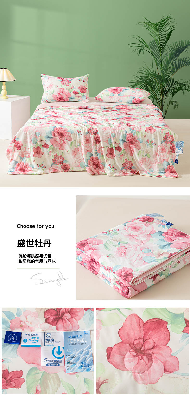 商品名称:佳居缘 发2024新款A类印花冰氨凉感夏被 盛世牡丹