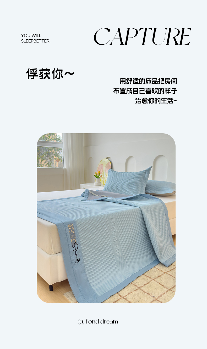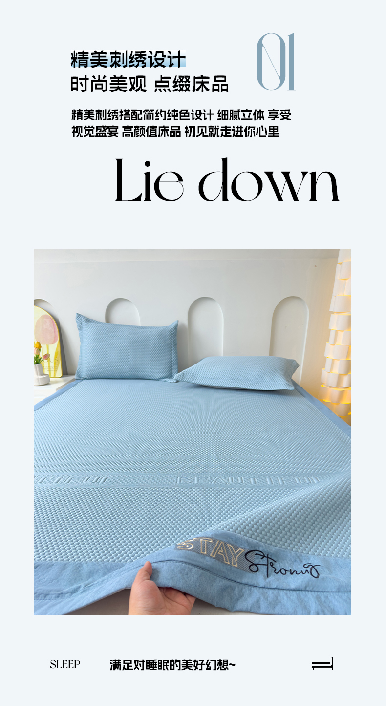 当前位置: 91家纺网 > 商品网购 > 床上用品 > 凉席 > 其他凉席 > 伊而梦 2024新款A类3D凉感冰豆豆字母刺绣凉席 字母刺绣-蓝