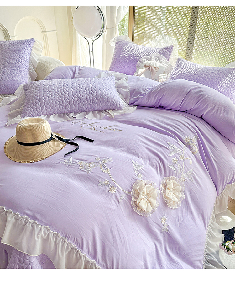 漫布云2025韩版法式公主风水洗棉立体花绣花床盖款四件套蕾丝床盖款三件套